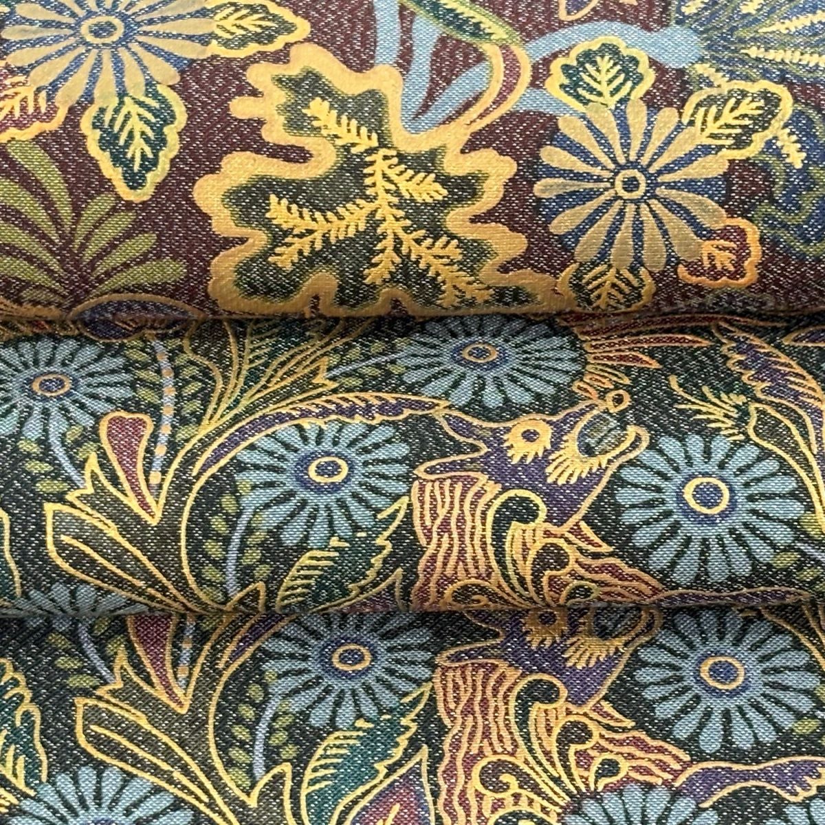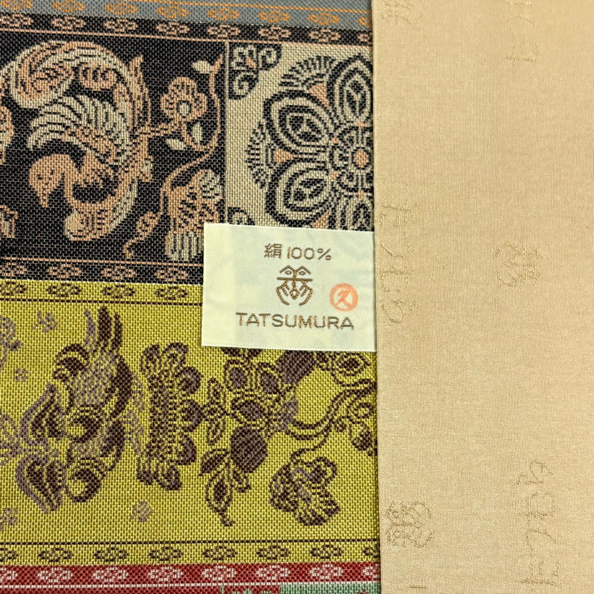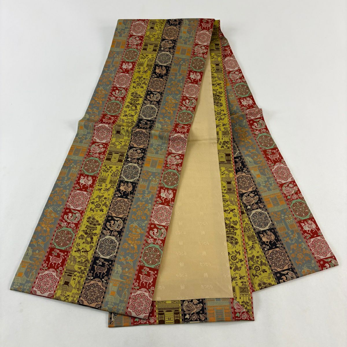 【美品】 名古屋帯 逸品 龍村美術織物 華文 動物 箔 金銀糸 ベージュ 正絹