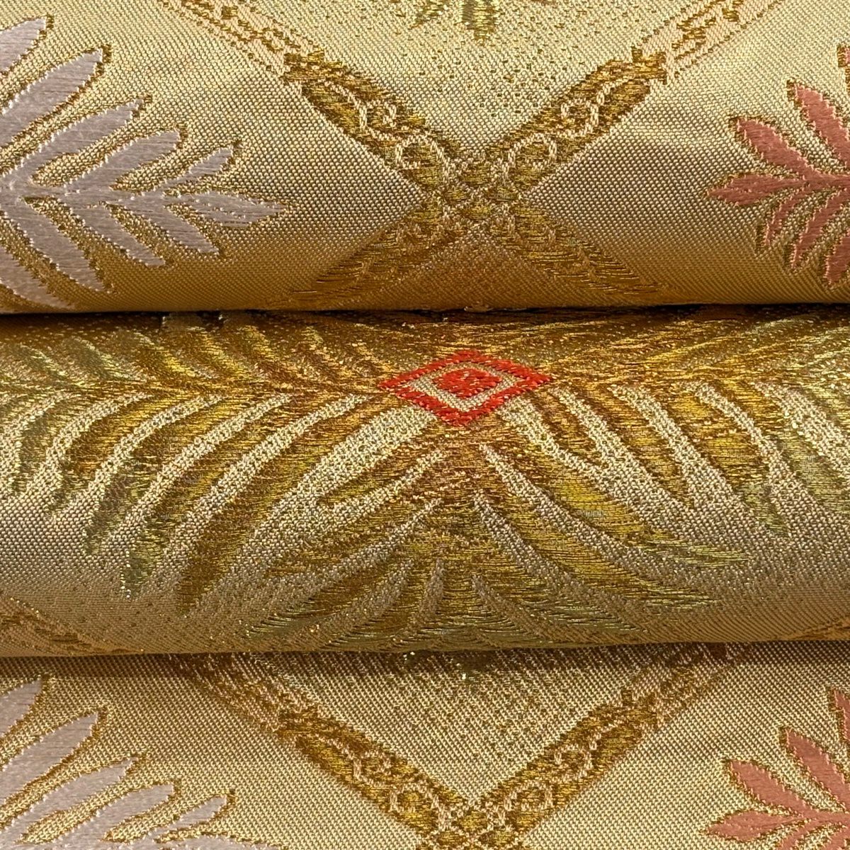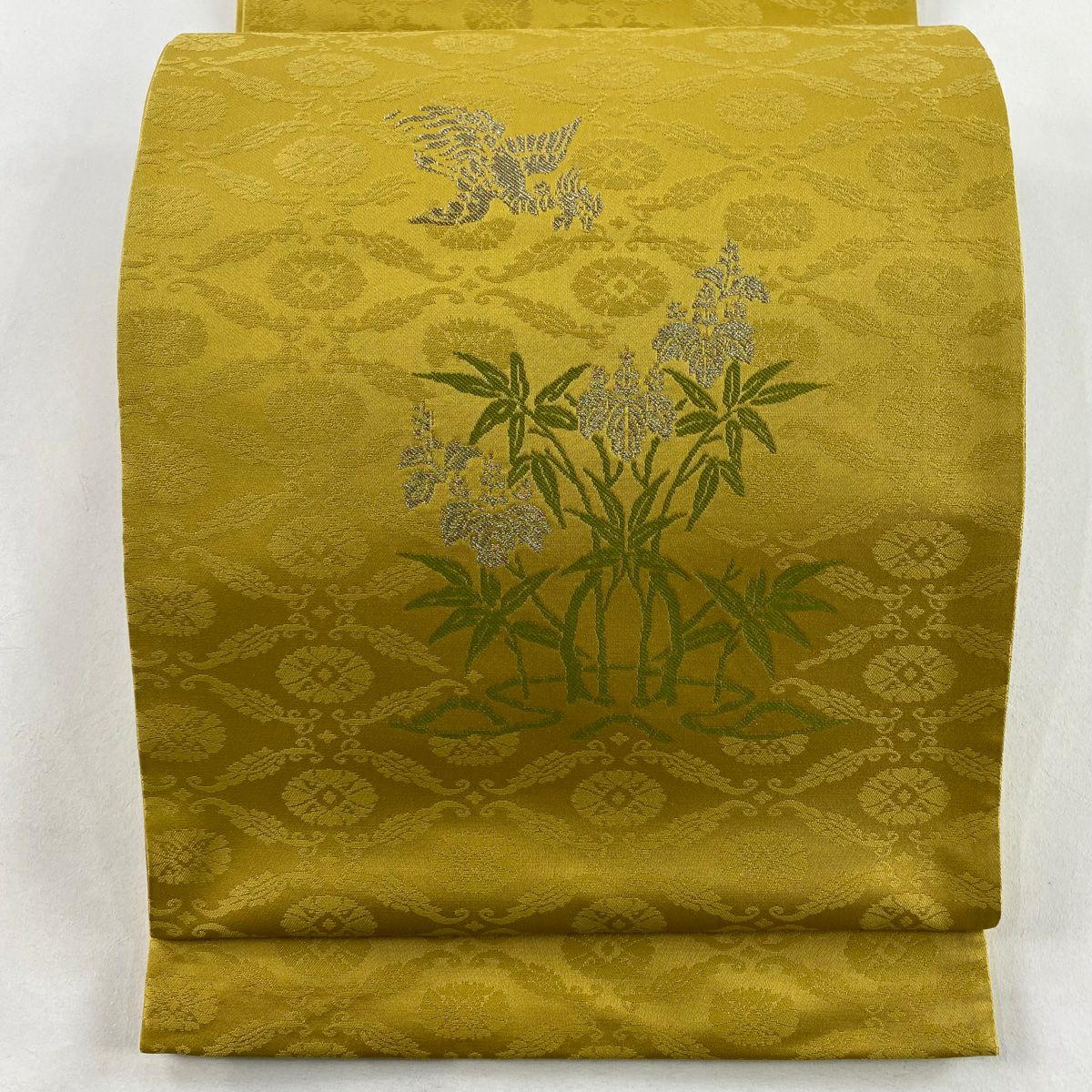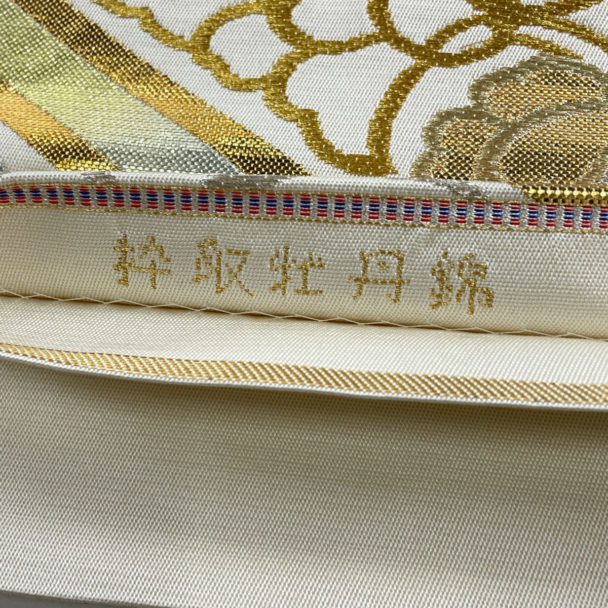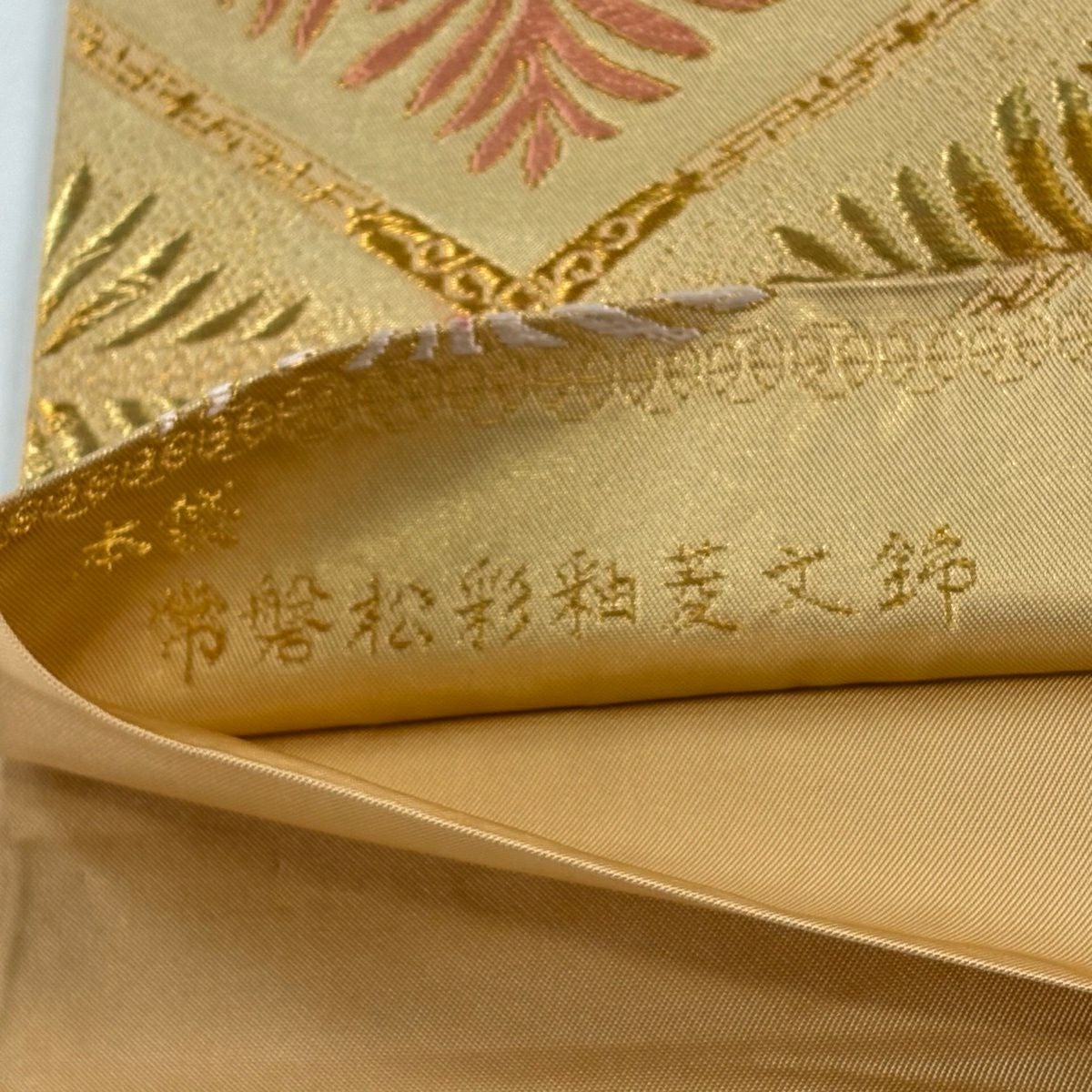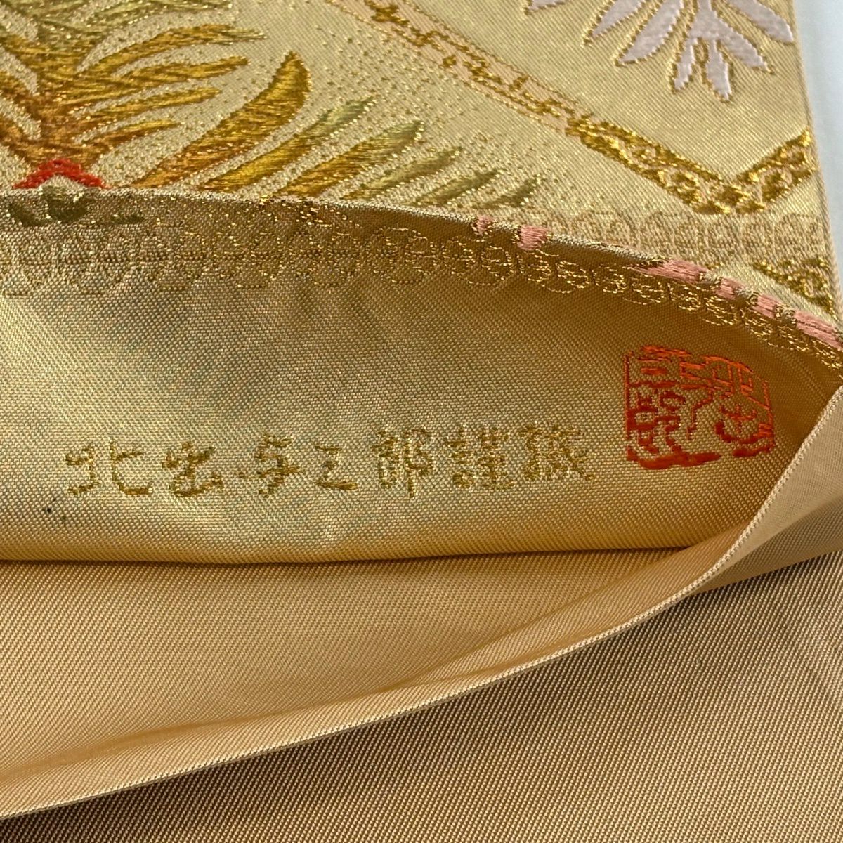 【美品】 袋帯 逸品 北出与三郎 落款あり 本袋 松菱 金糸 唐織 金色 六通 正絹