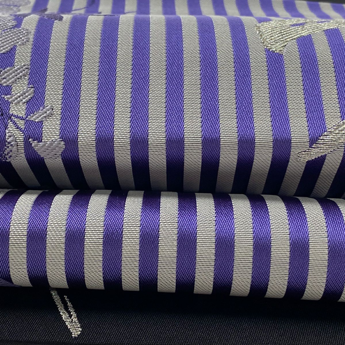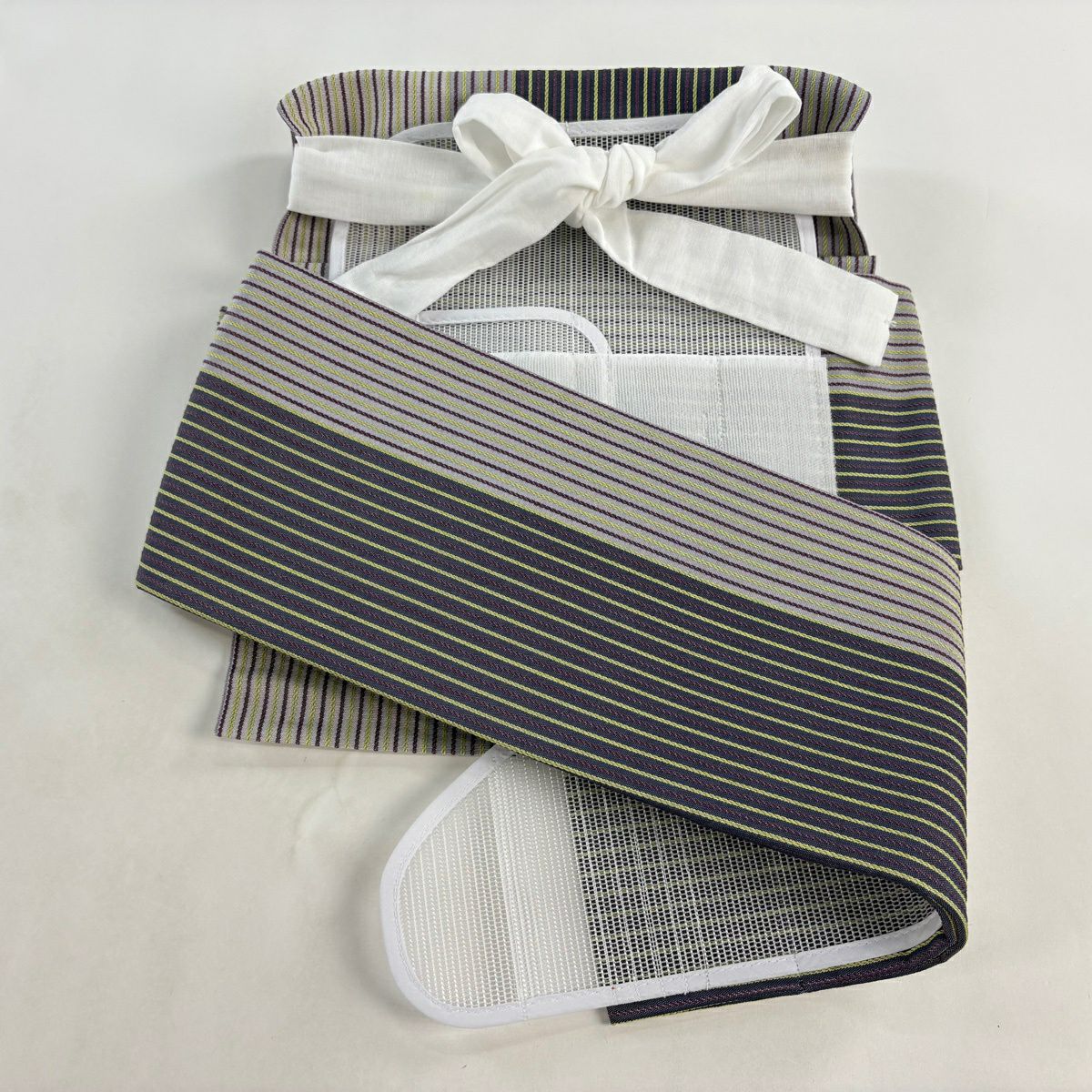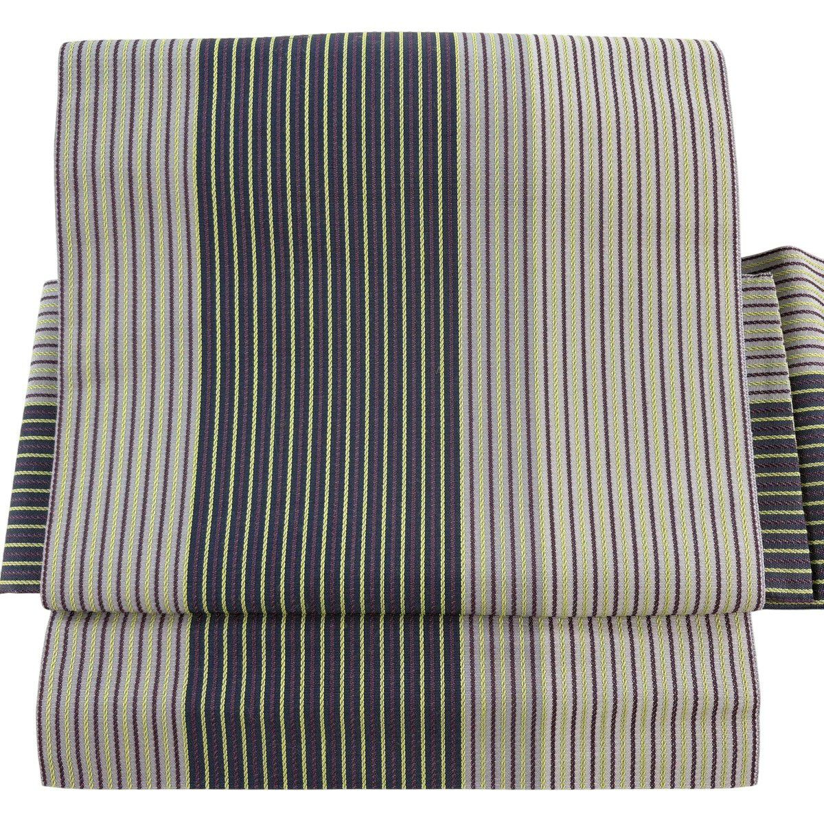 【美品】付け帯 逸品 証紙あり 作り帯 本場筑前博多織 やまと 縞模様 灰紫 正絹