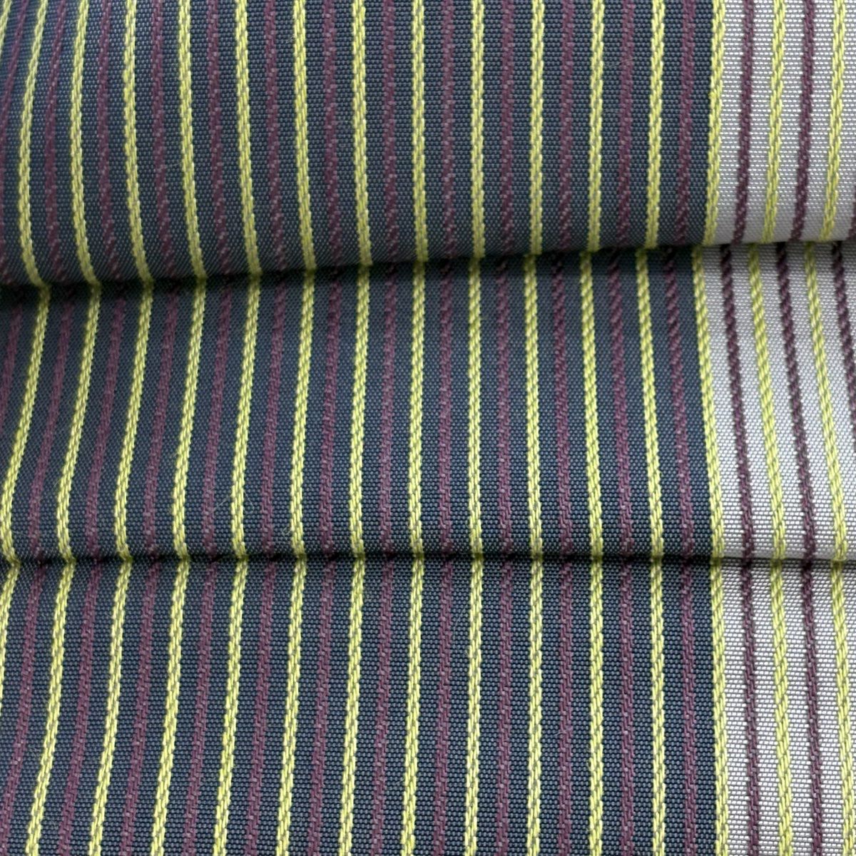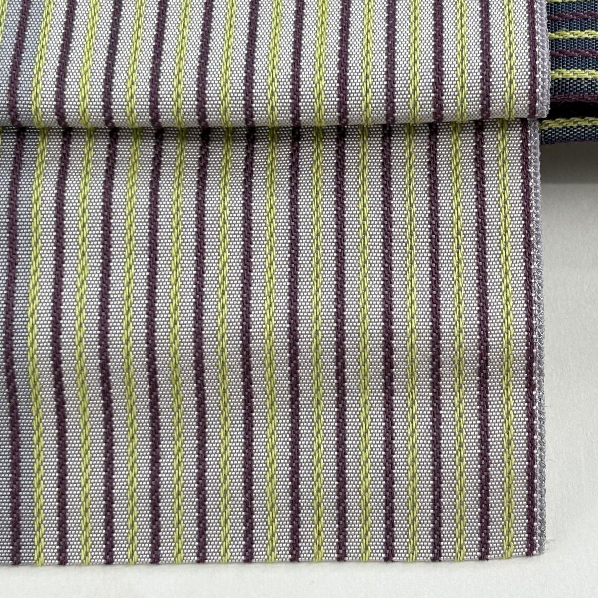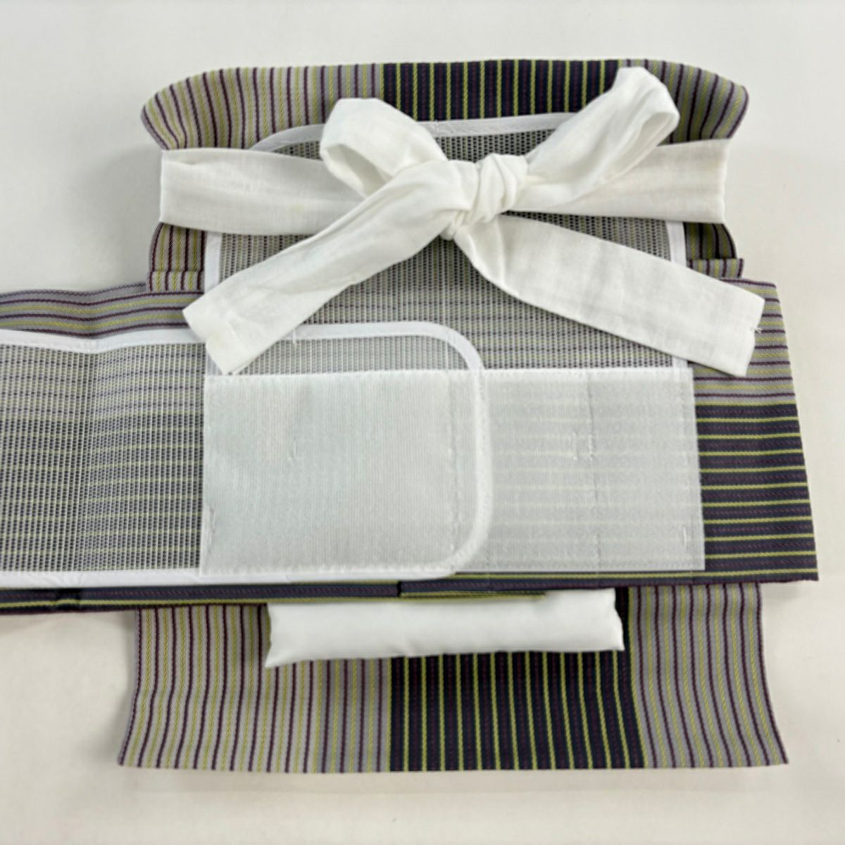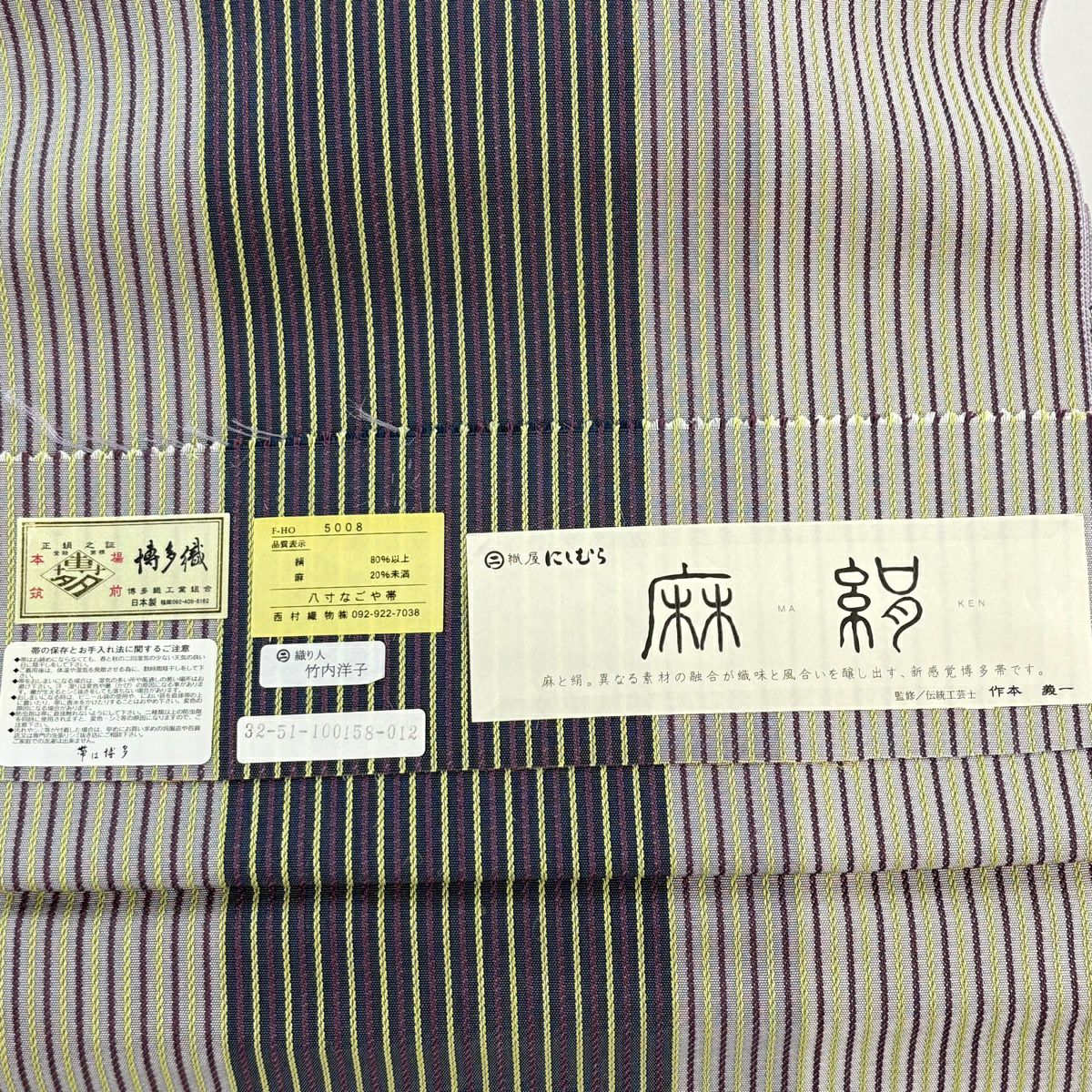【美品】付け帯 逸品 証紙あり 作り帯 本場筑前博多織 やまと 縞模様 灰紫 正絹