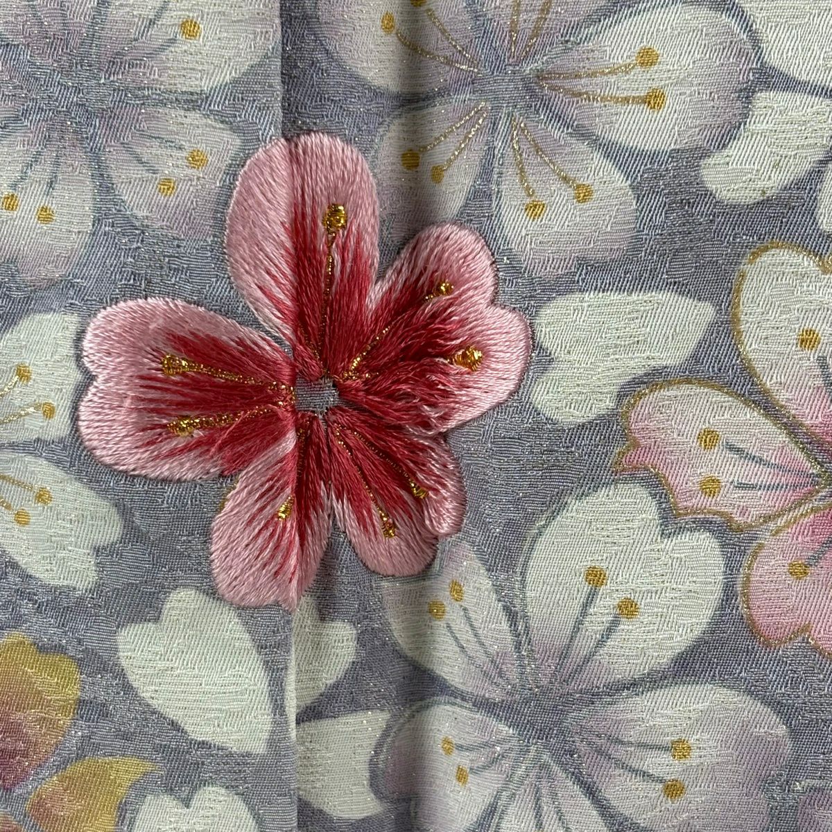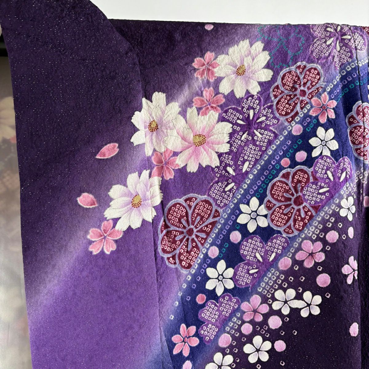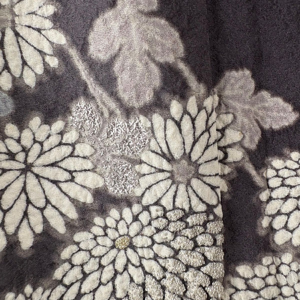 訪問着 身丈163cm 裄丈69cm L 袷 菊 桜 絞り 金銀糸 灰紫 正絹 逸品