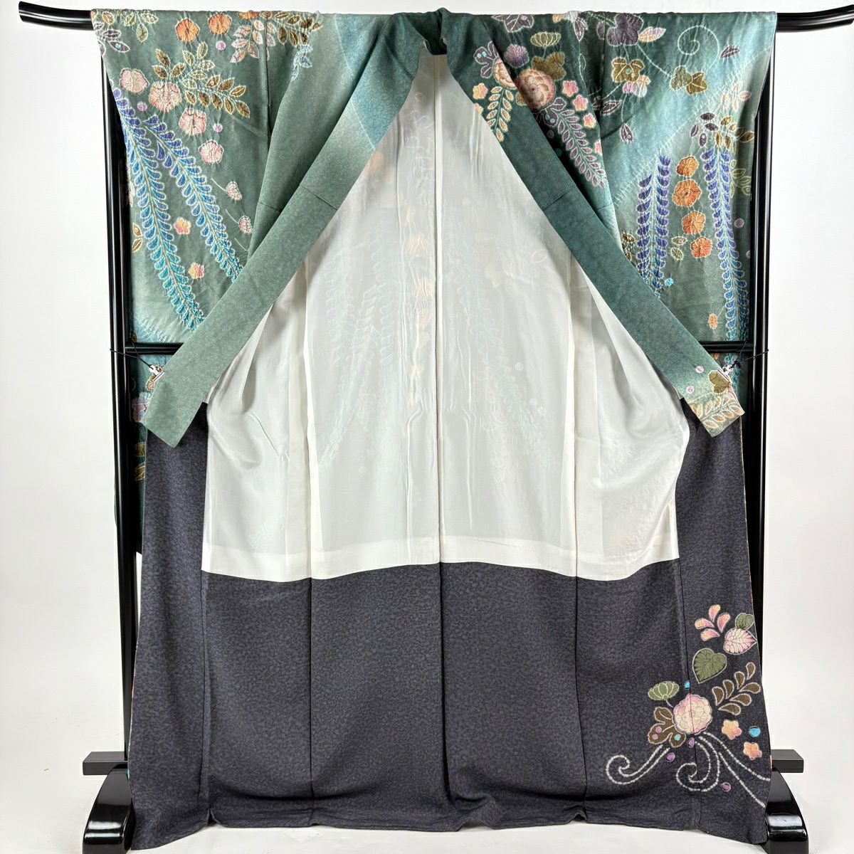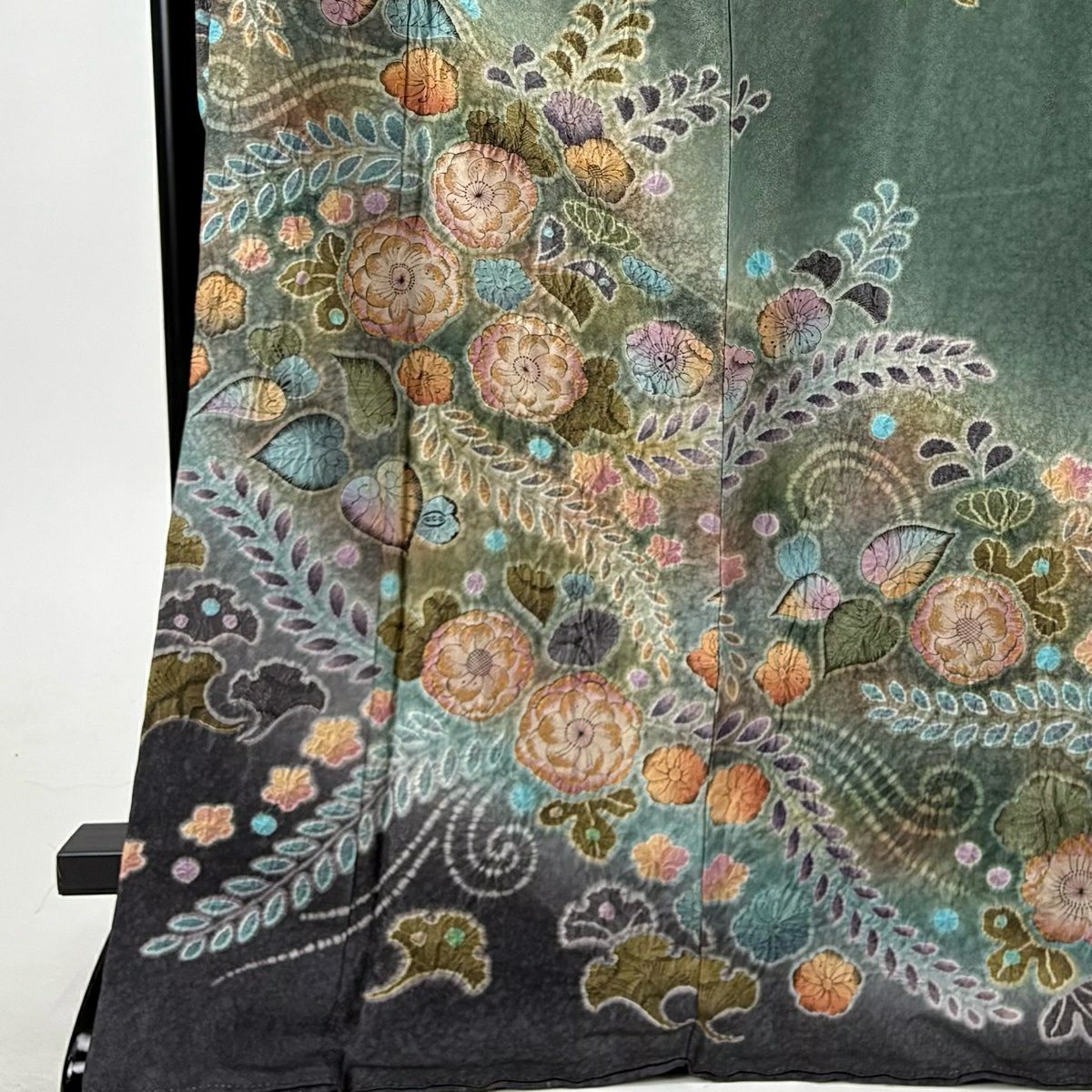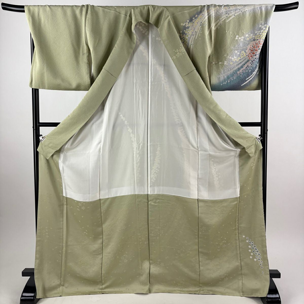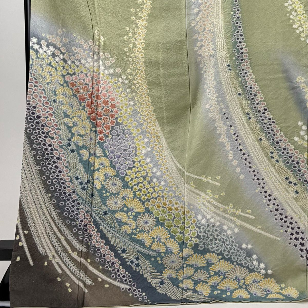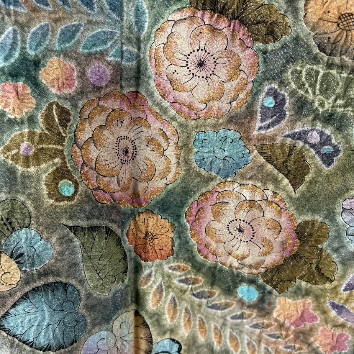 振袖 身丈177cm 裄丈68cm L 袷 辻が花柄 銀通し 金彩 灰緑 正絹 逸品