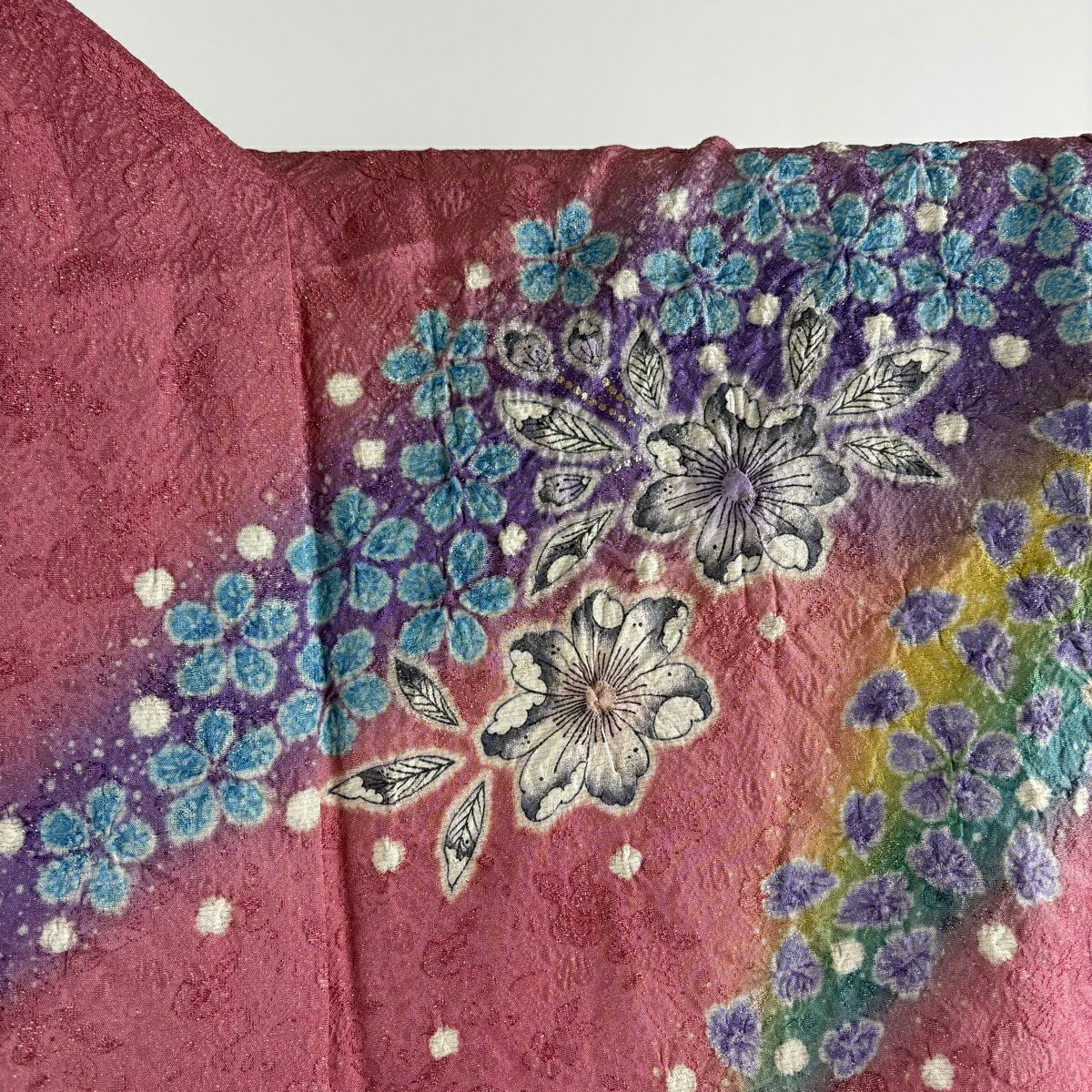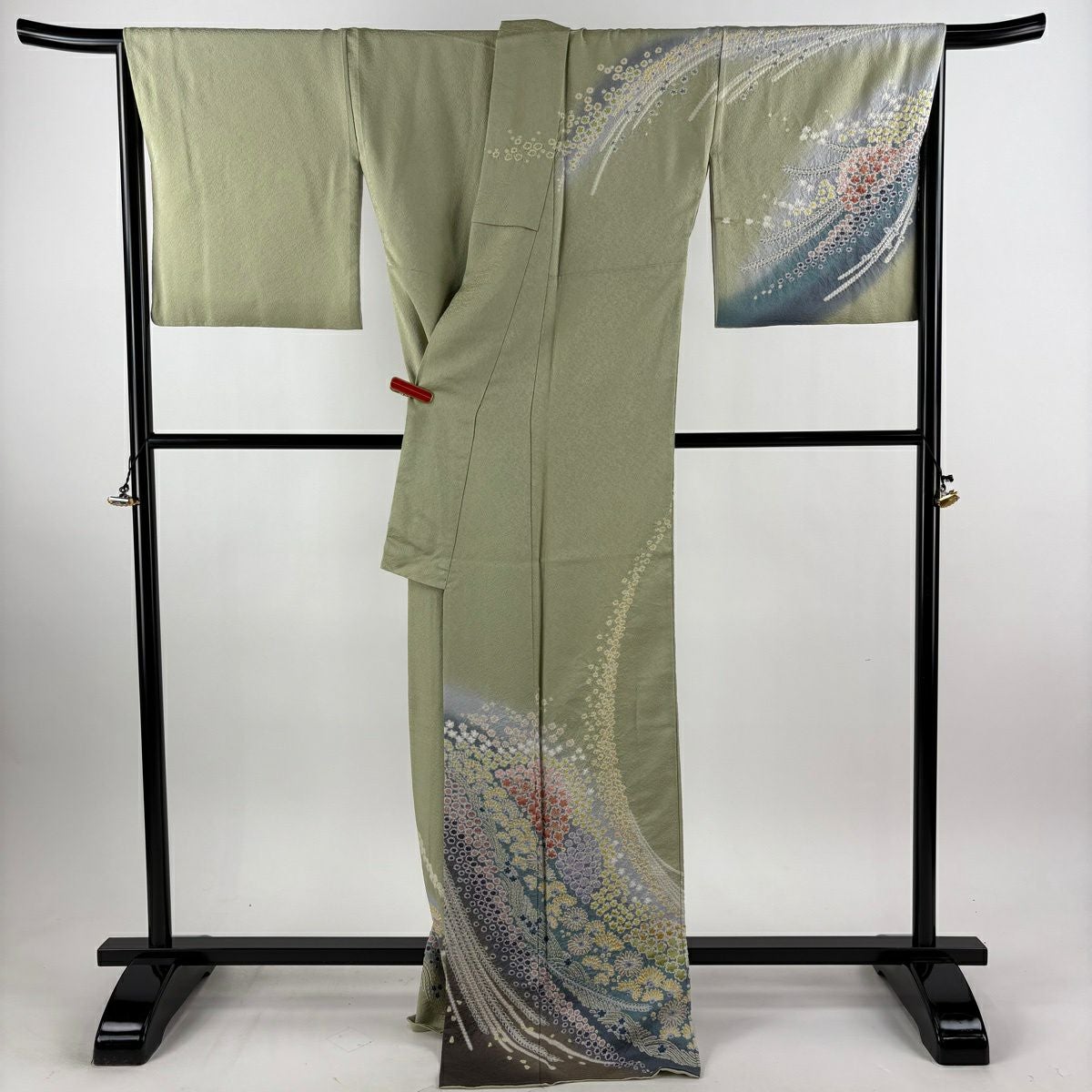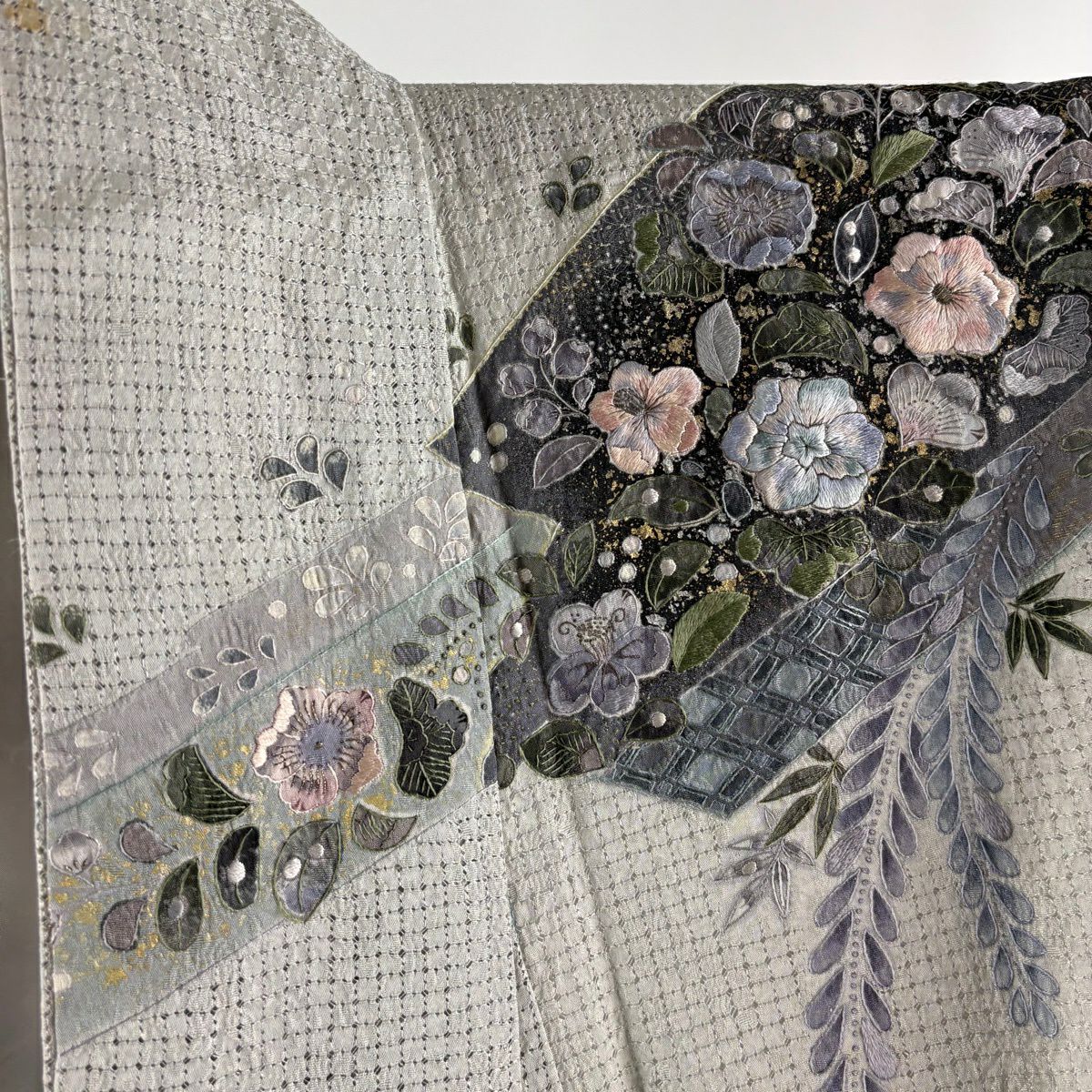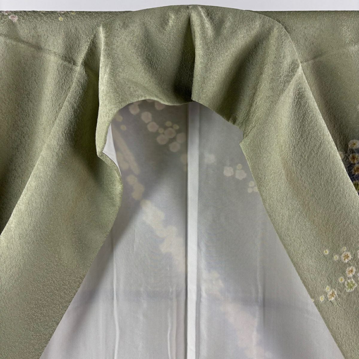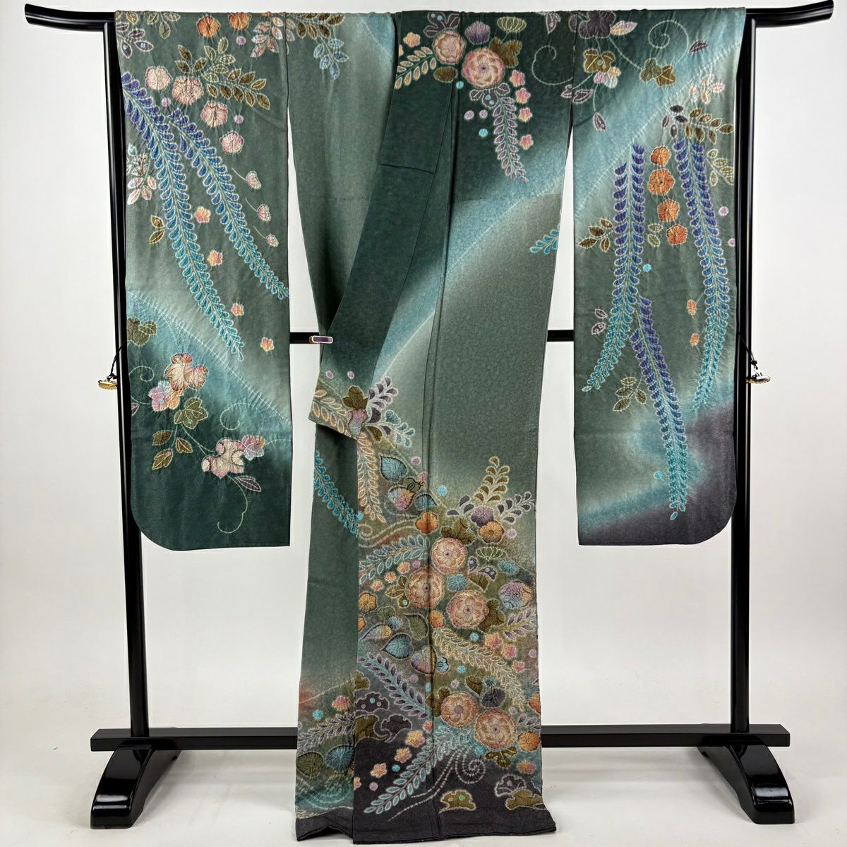 振袖 身丈177cm 裄丈68cm L 袷 辻が花柄 銀通し 金彩 灰緑 正絹 逸品