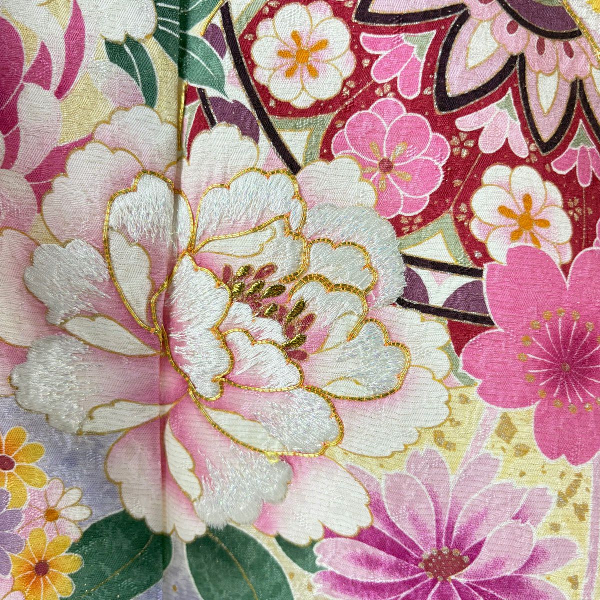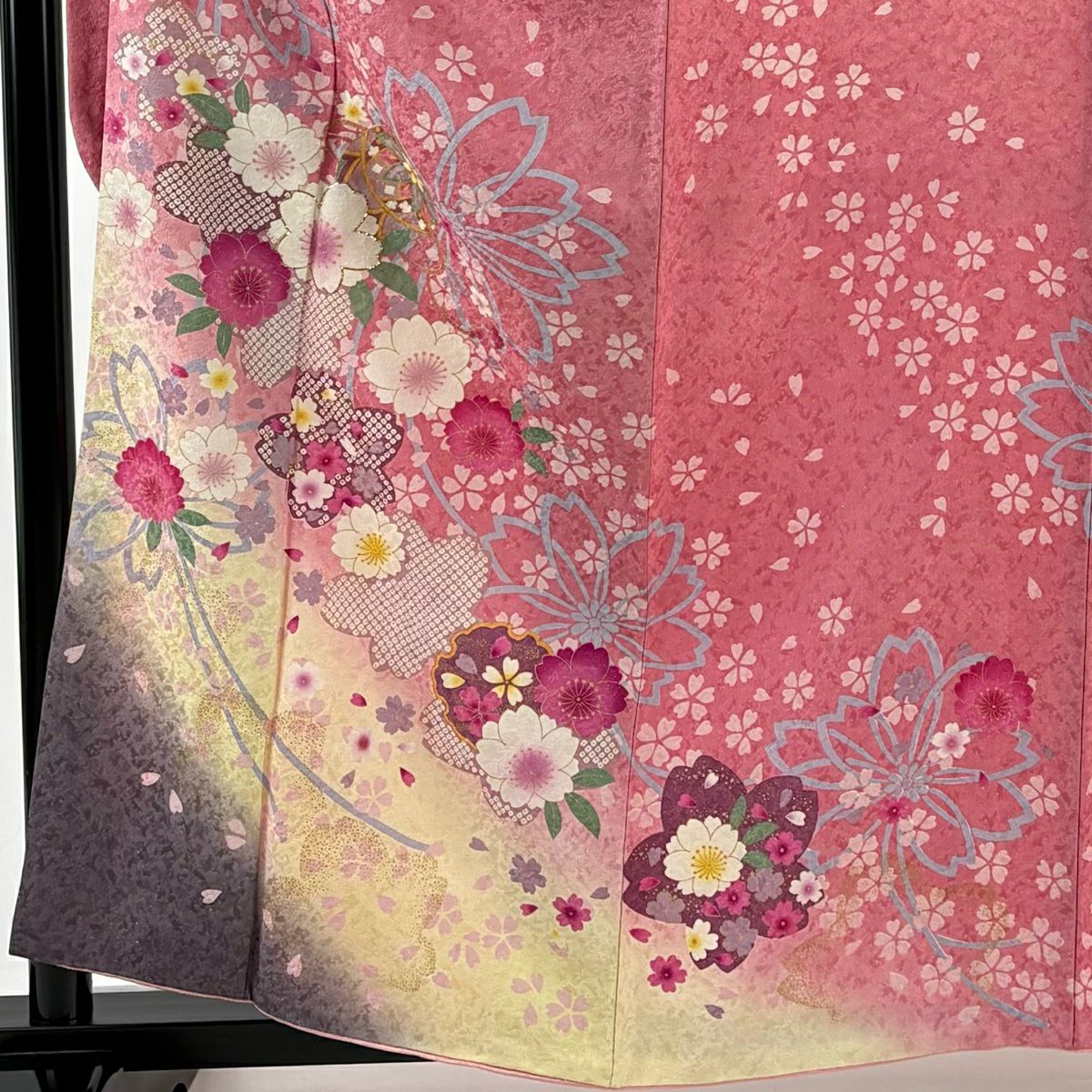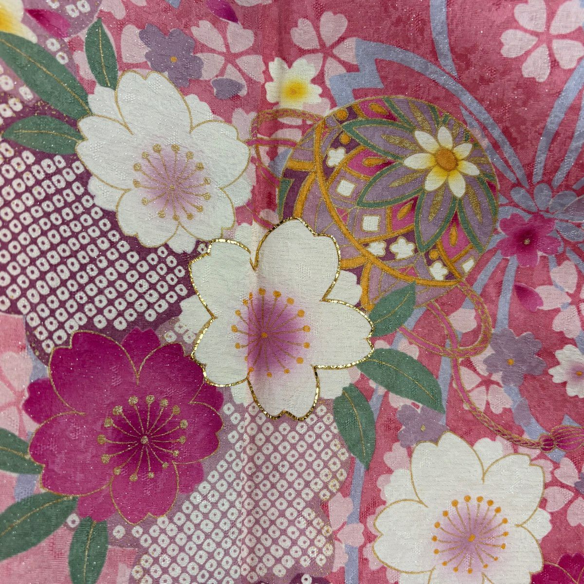 振袖 身丈159cm 裄丈70cm L 袷 桜 鞠 銀通し 箔 ピンク 正絹 逸品