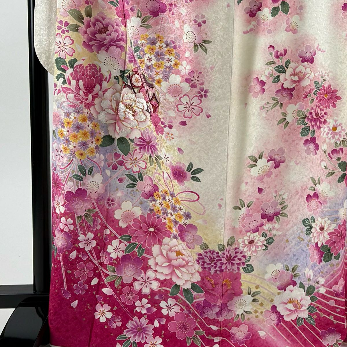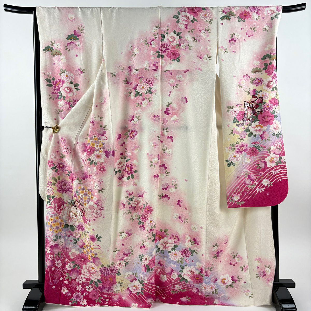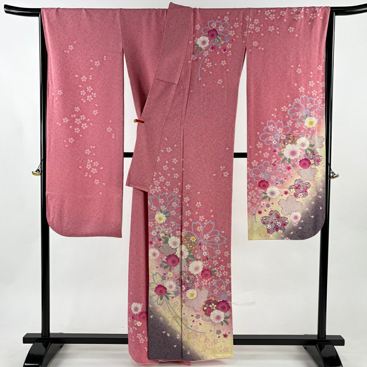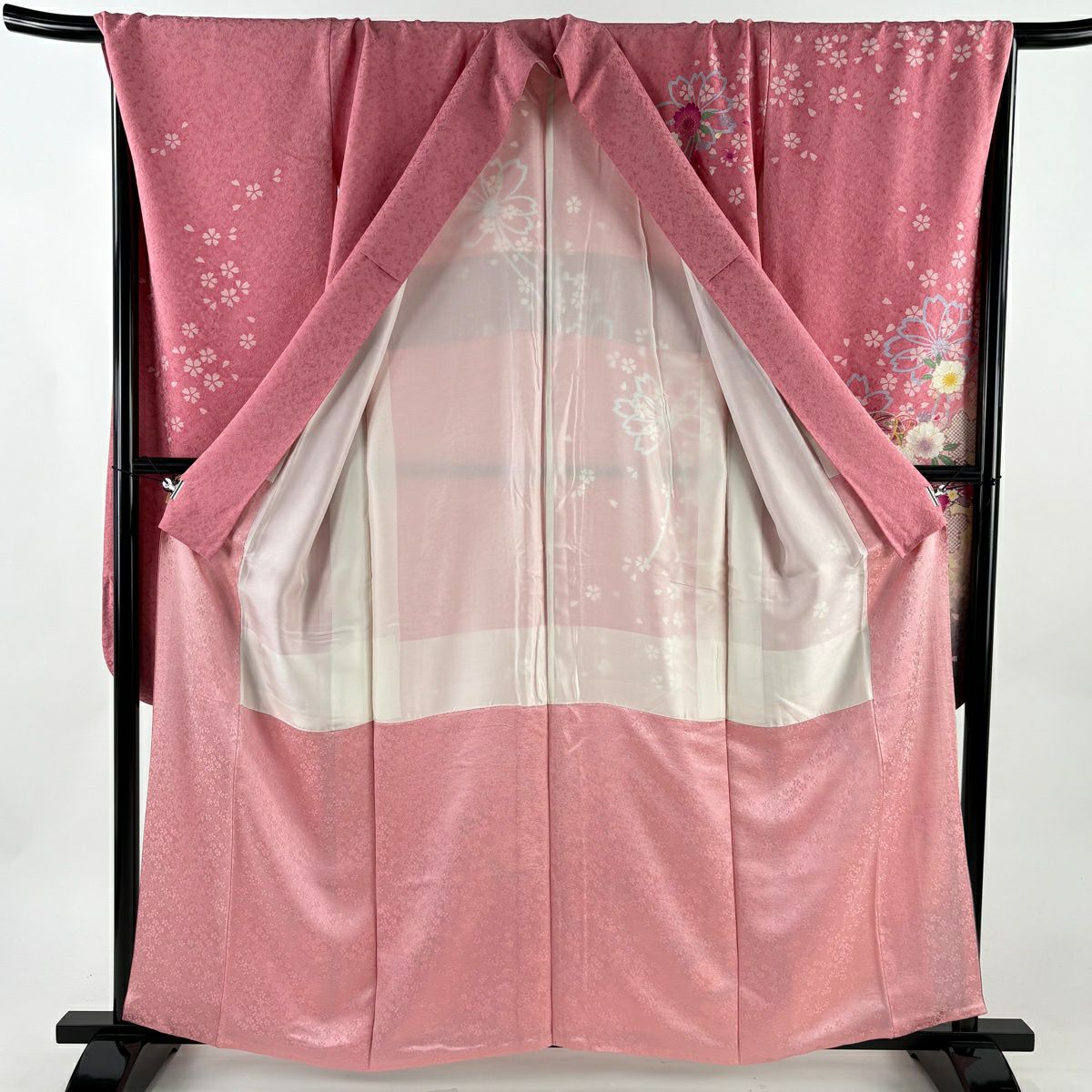 振袖 身丈167cm 裄丈67cm M 袷 桜 流水 金通し 絞り ピンク 正絹 逸品