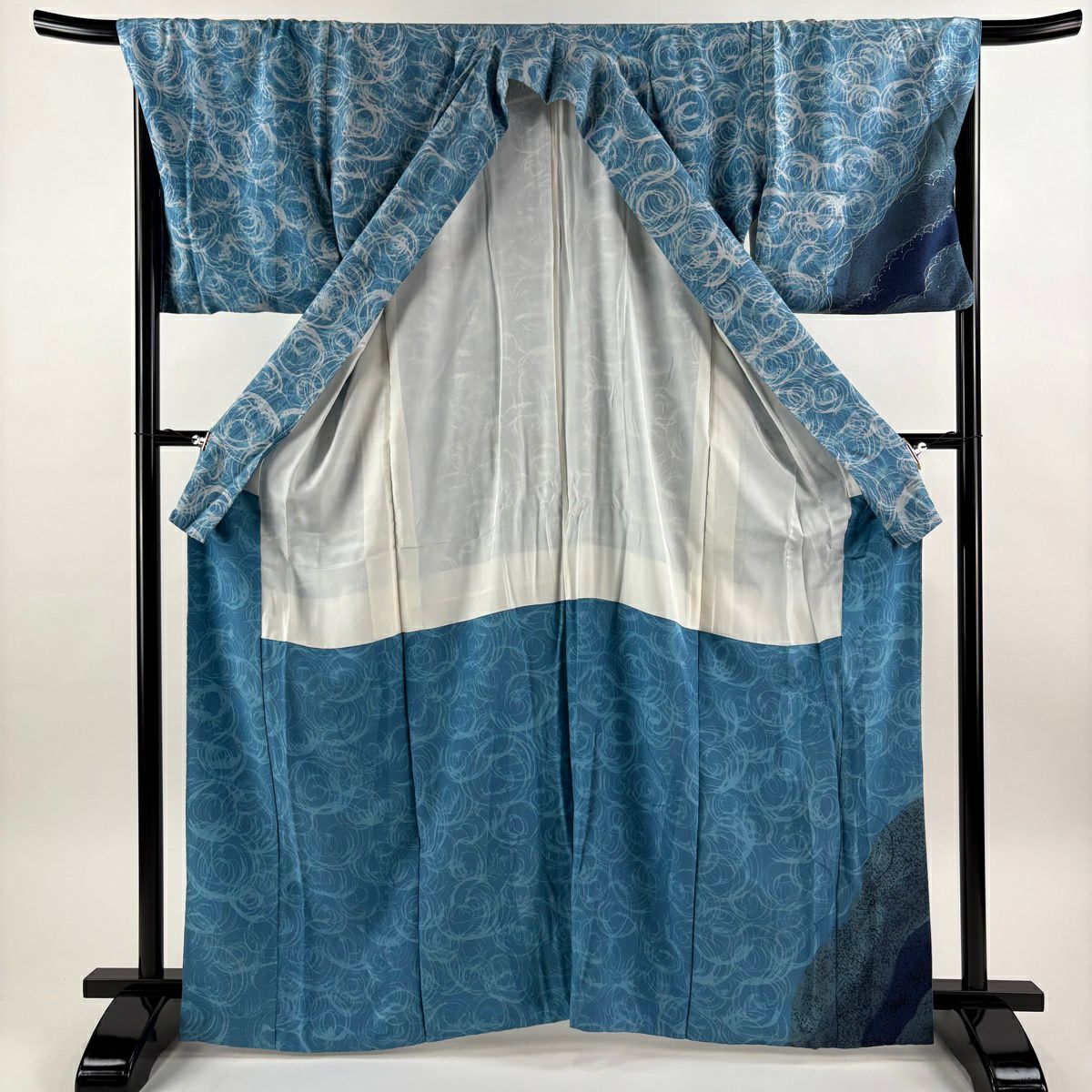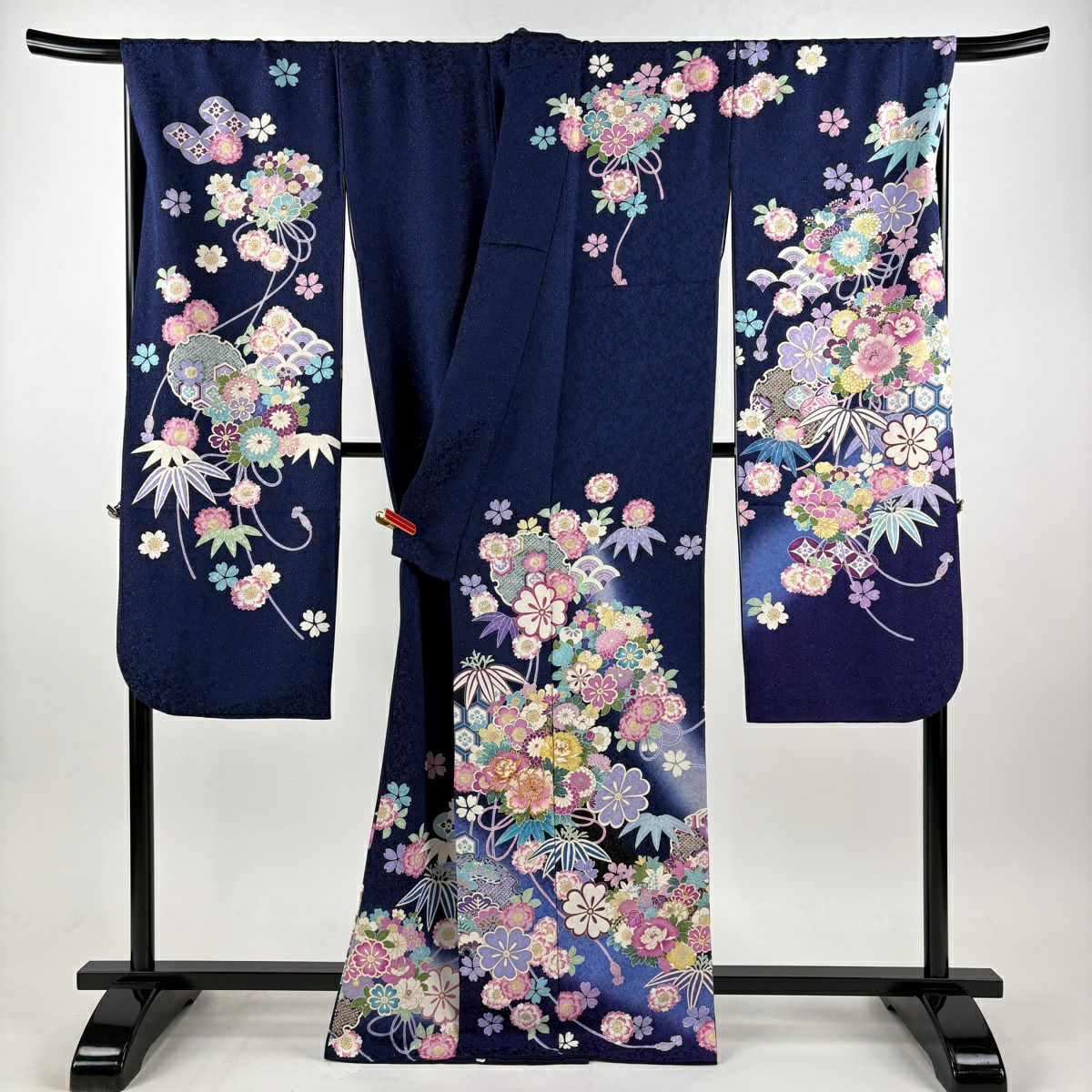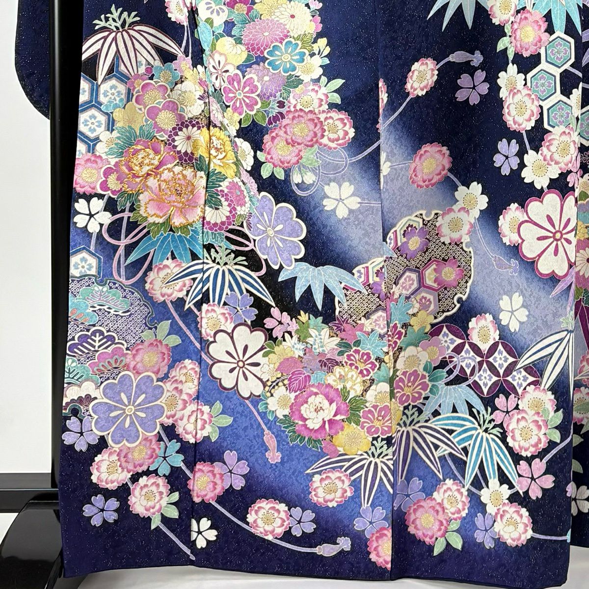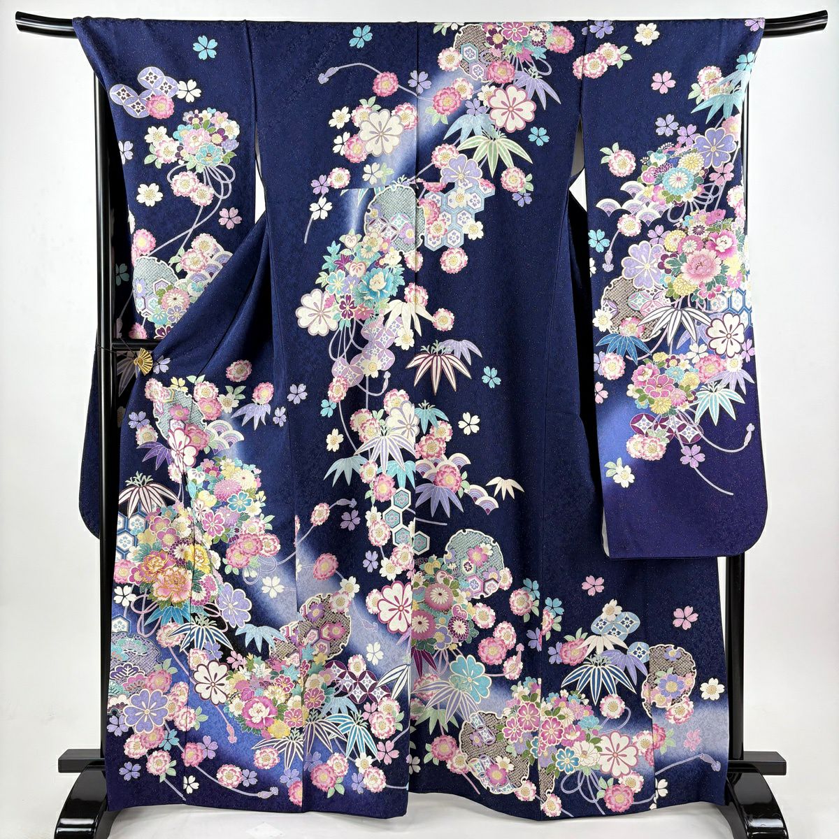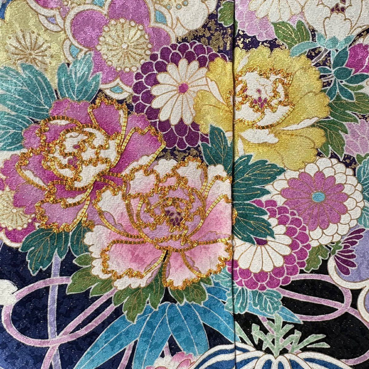 振袖 身丈166cm 裄丈70cm L 袷 雪輪 牡丹 金糸 金通し 濃紺 正絹 逸品