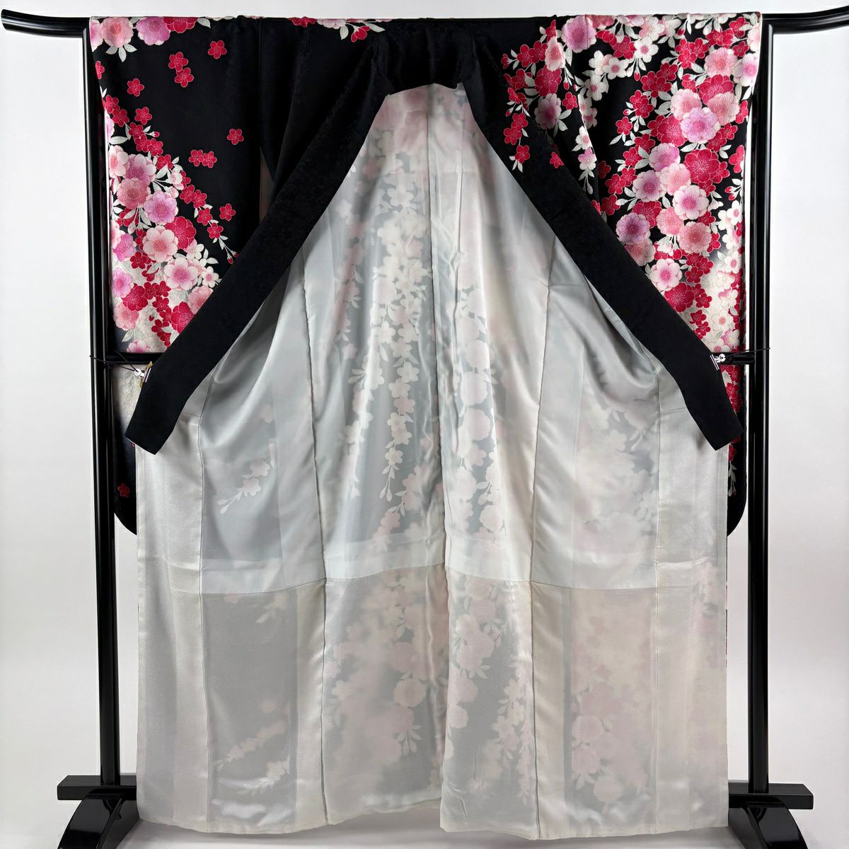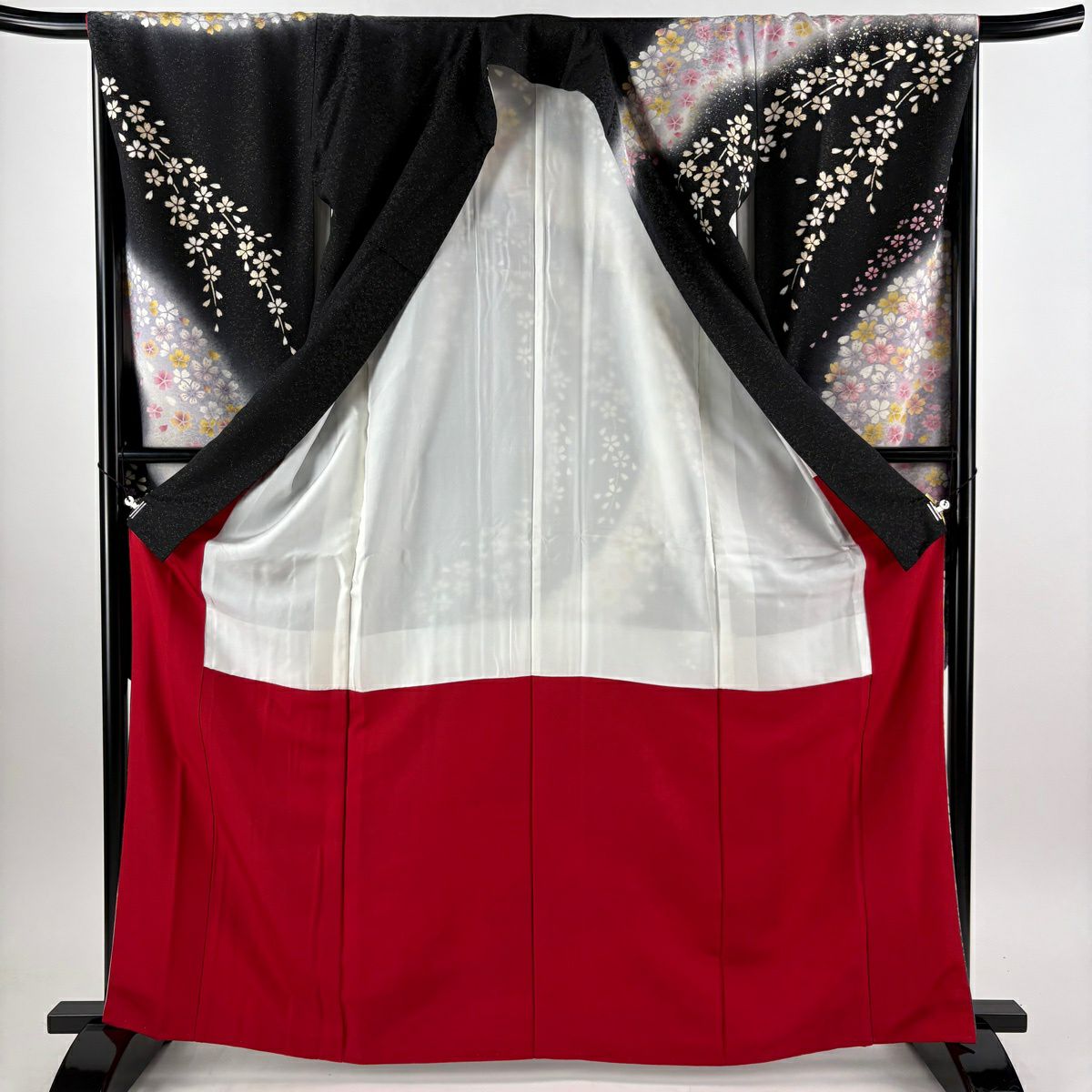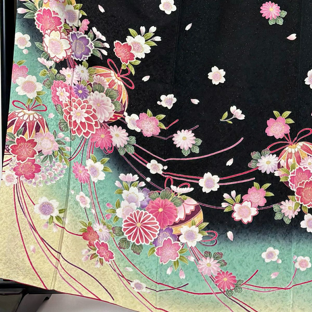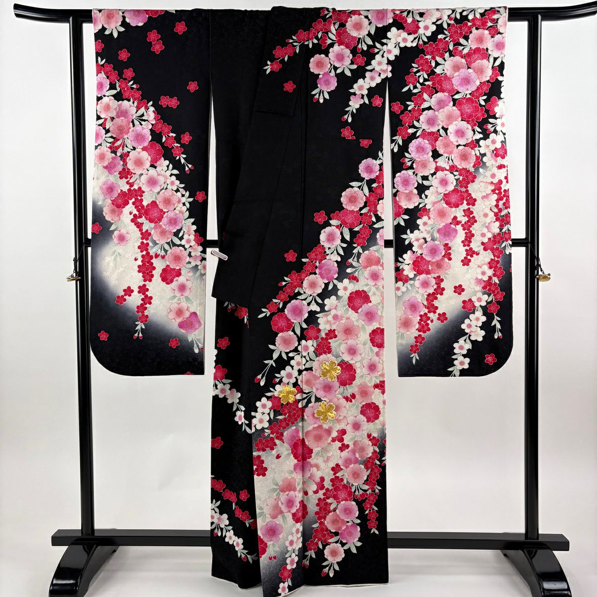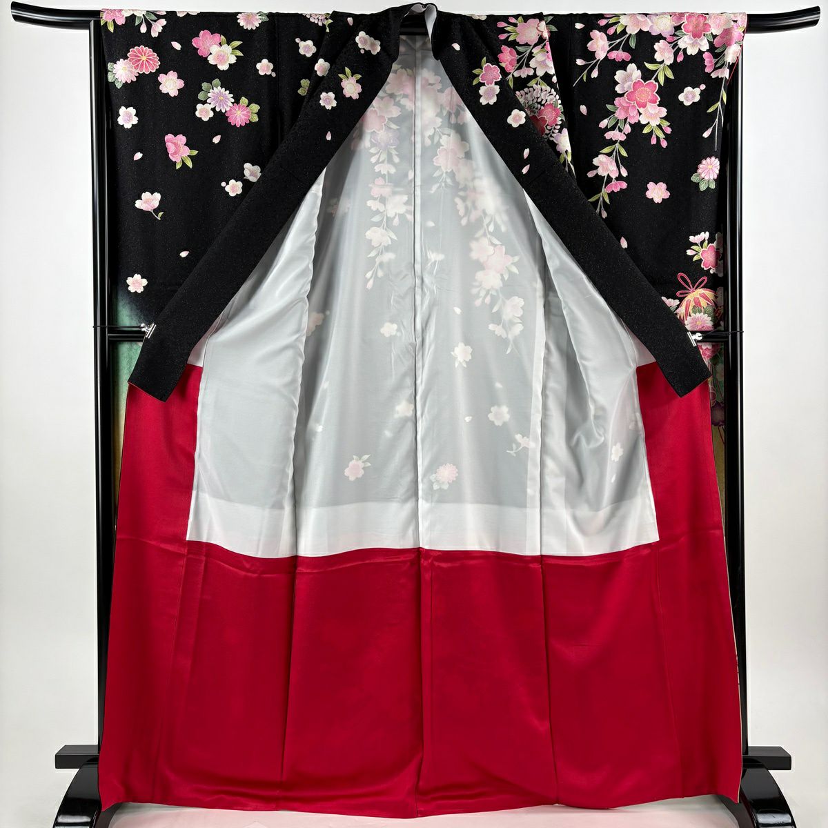 振袖 身丈164cm 裄丈67.5cm L 袷 薬玉 桜 金通し 金彩 黒 正絹 逸品