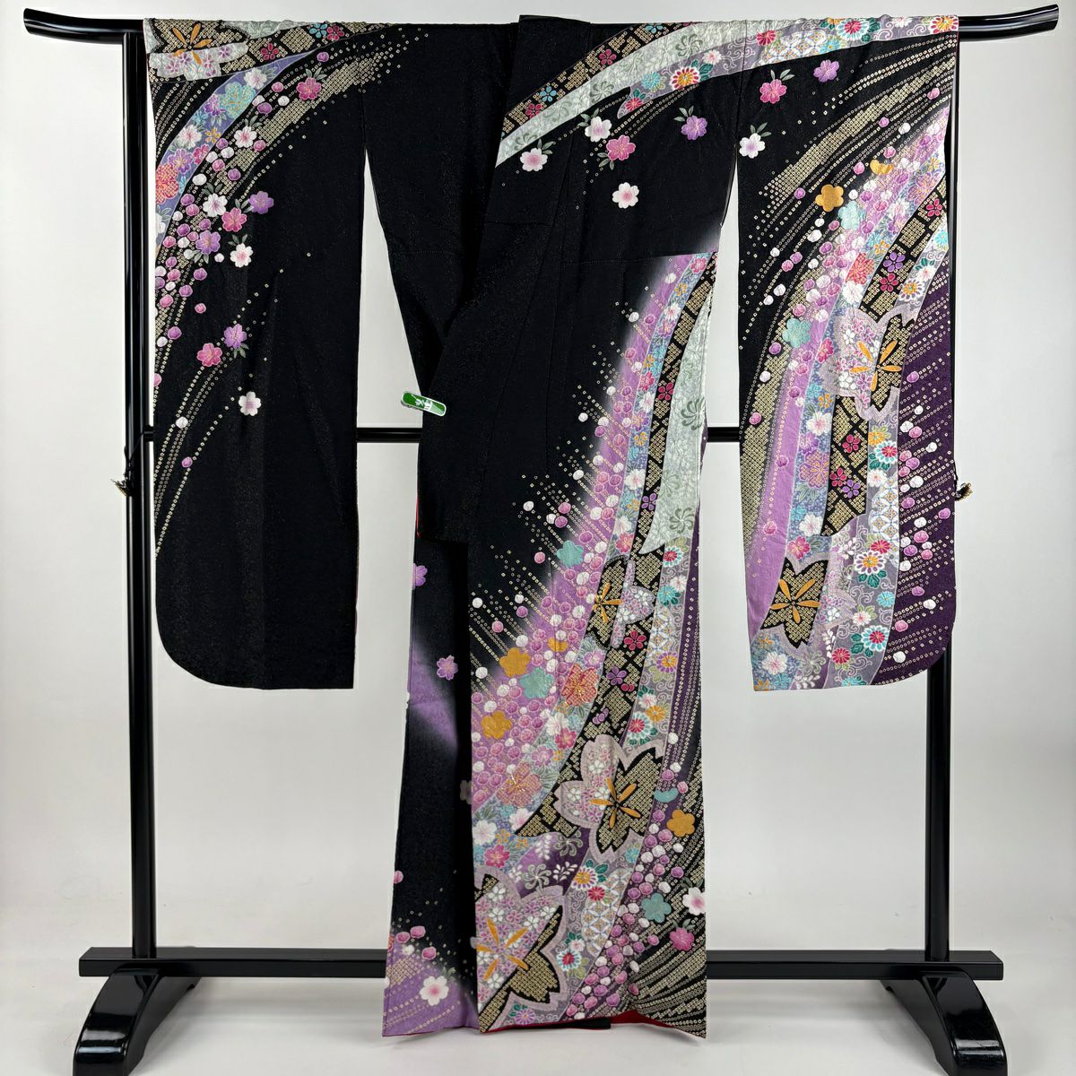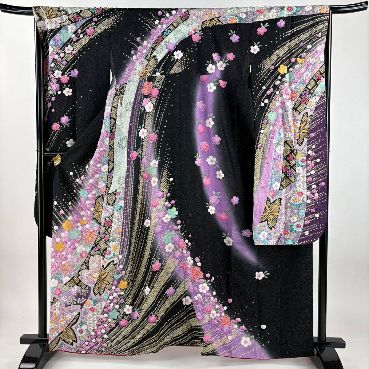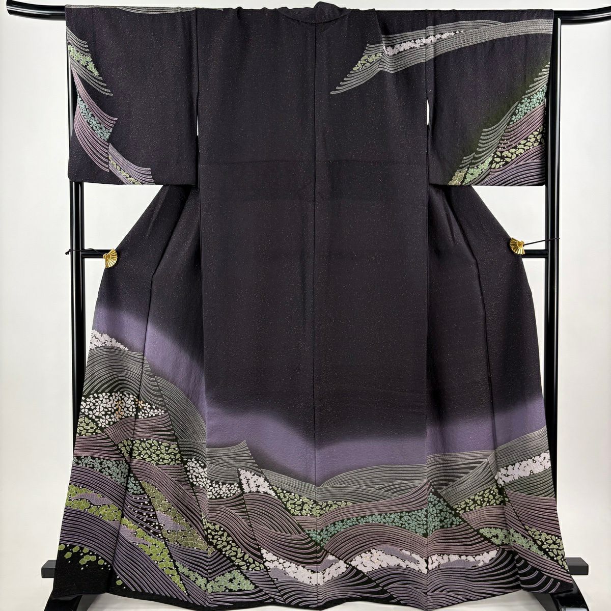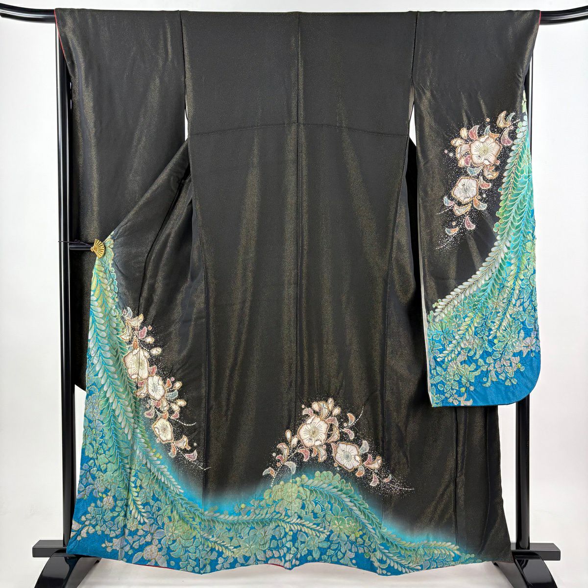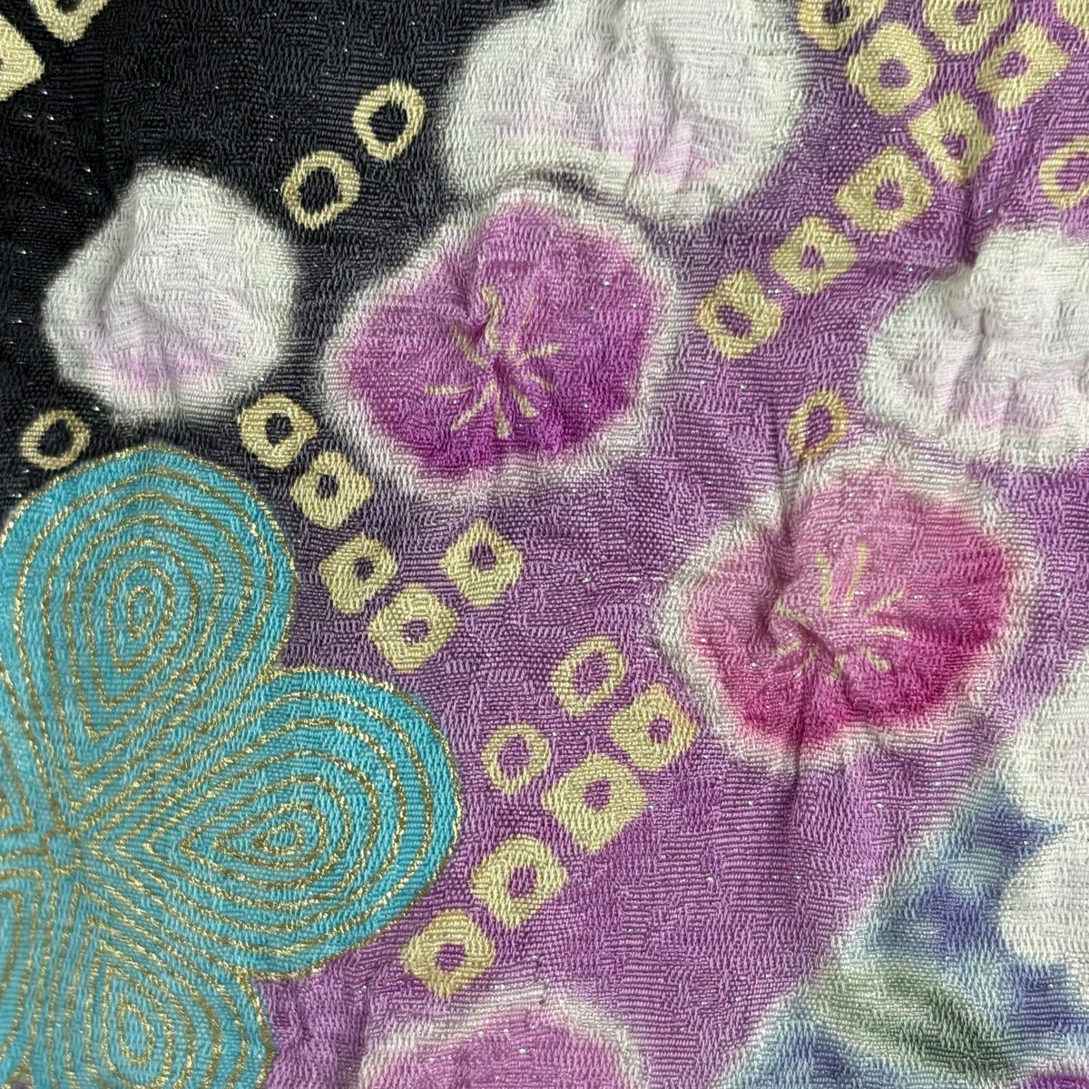 振袖 身丈161.5cm 裄丈68cm L 袷 辻が花 金通し ぼかし 黒 正絹 逸品