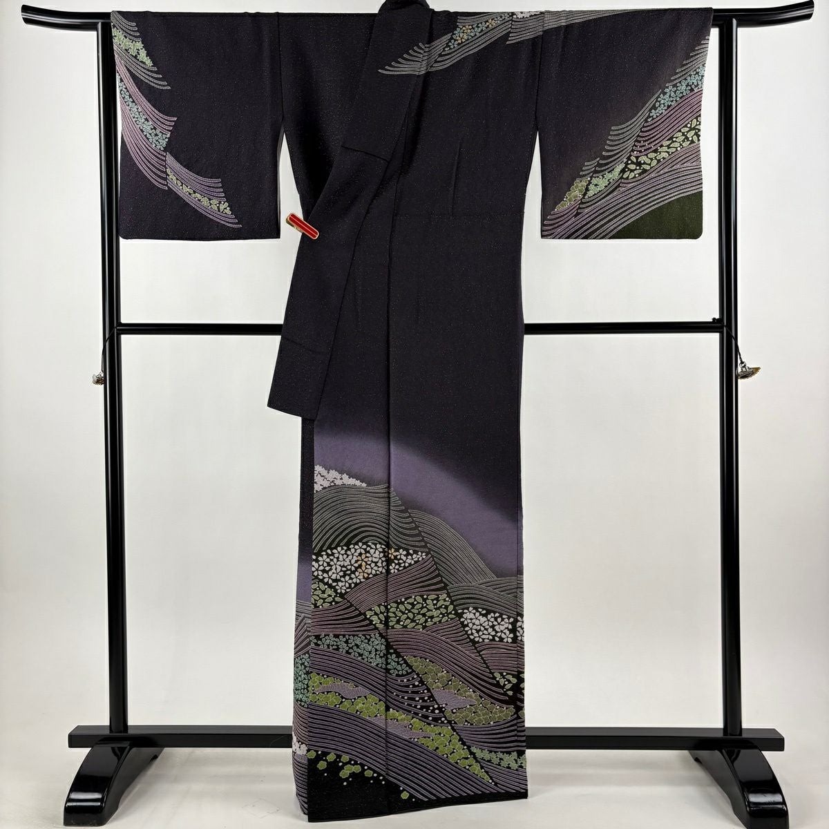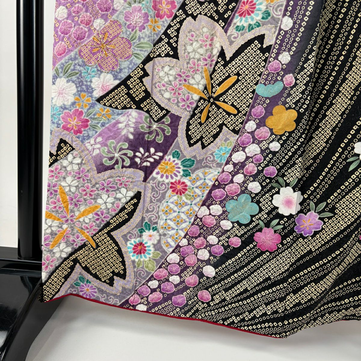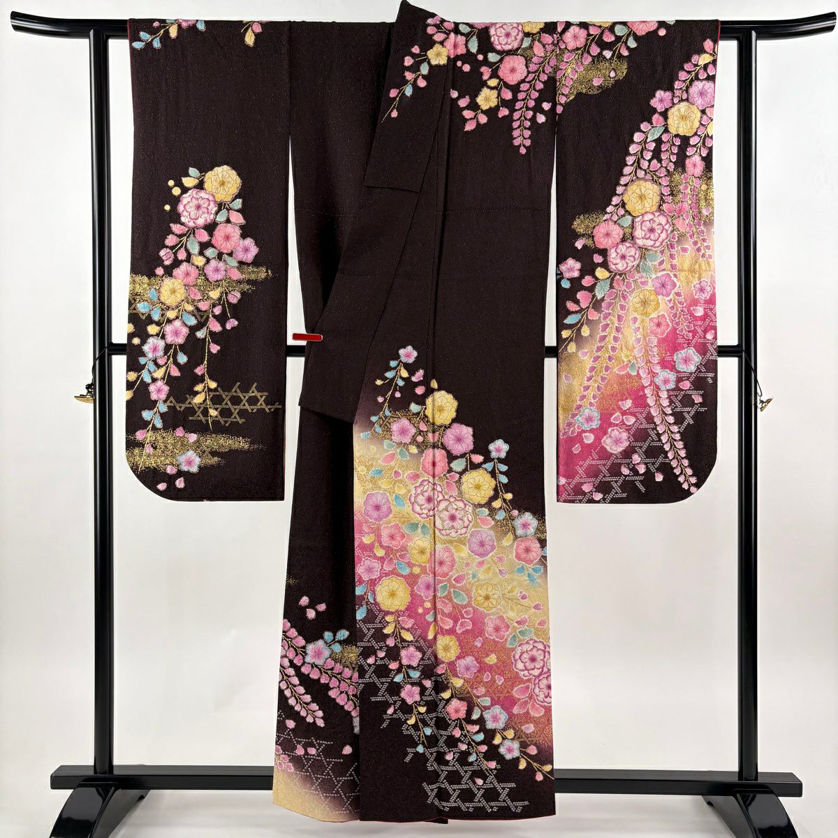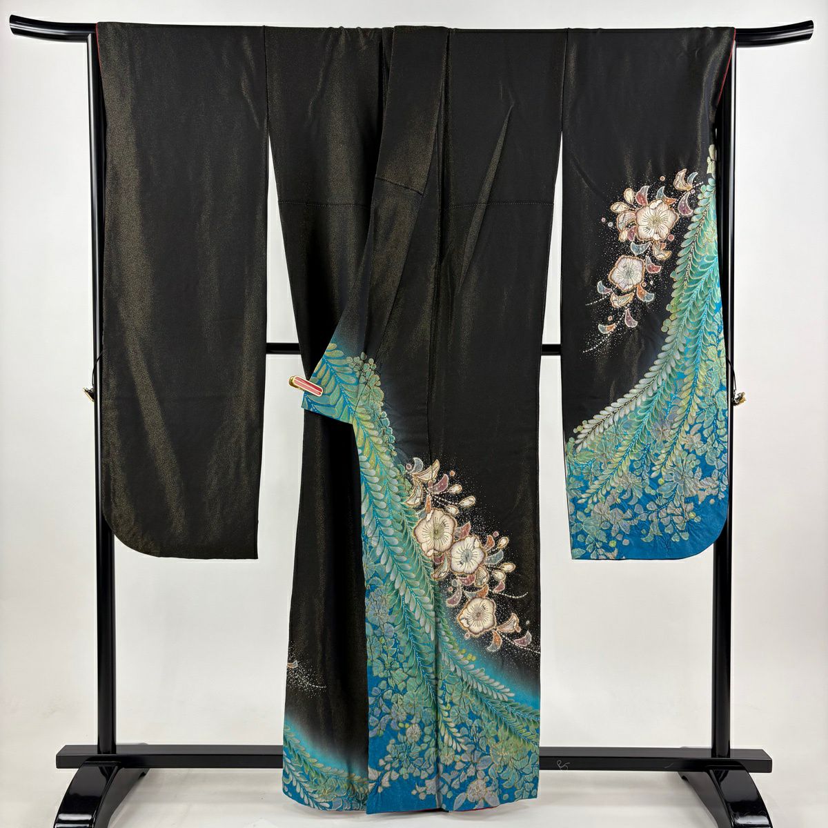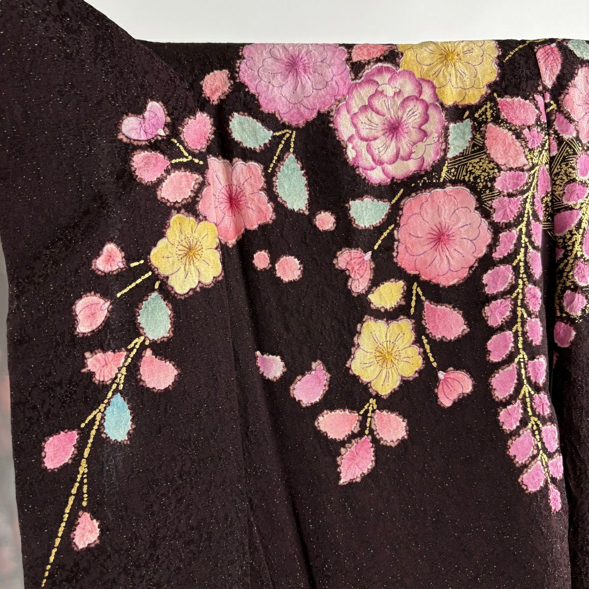 振袖 身丈161.5cm 裄丈68cm L 袷 辻が花 金通し ぼかし 黒 正絹 逸品