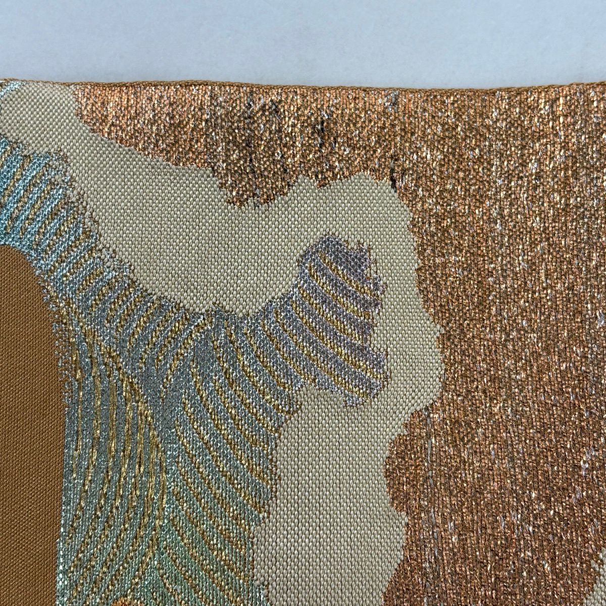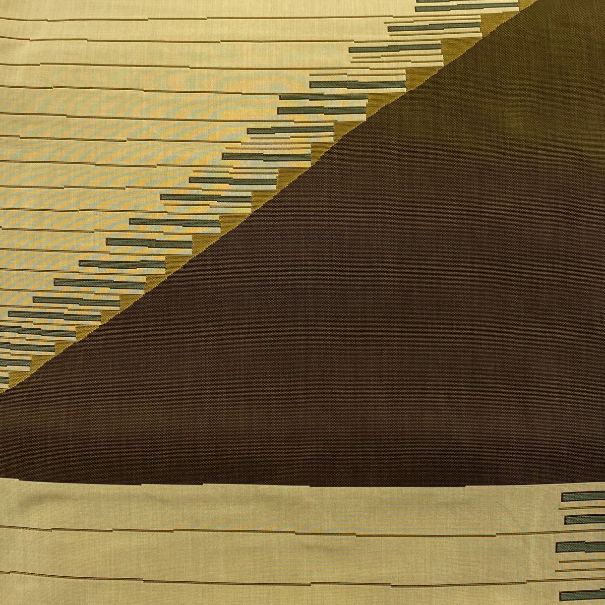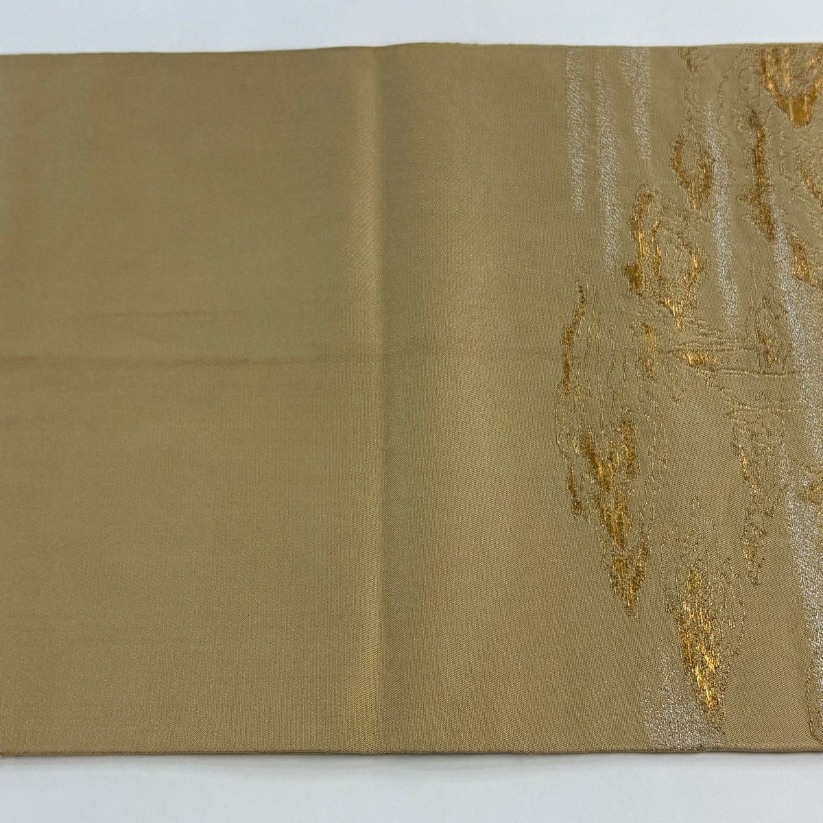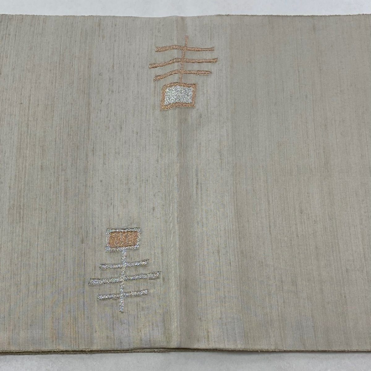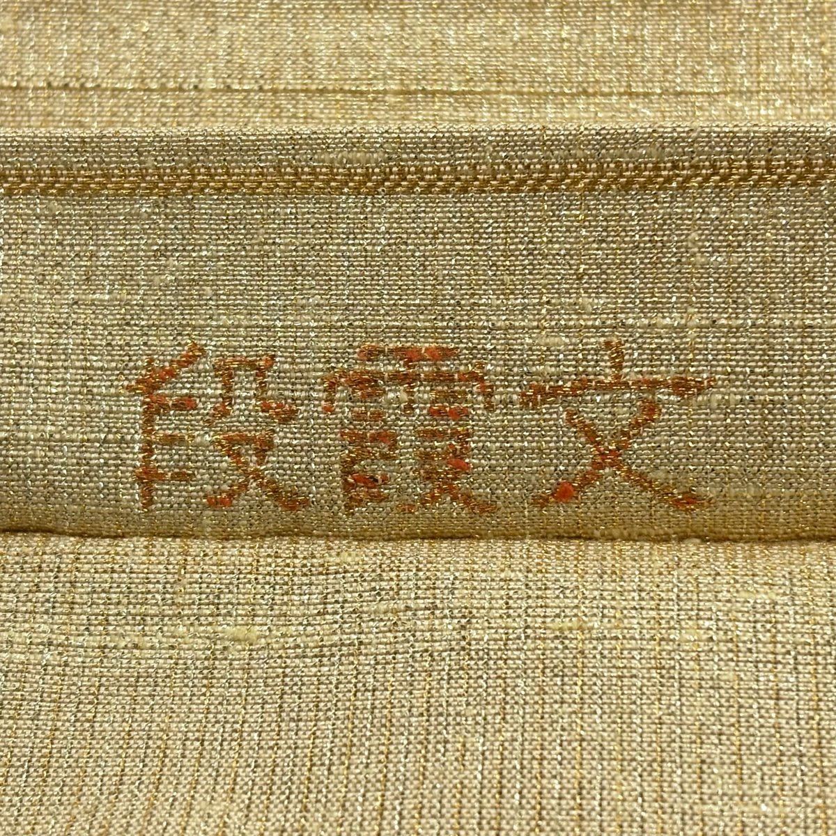袋帯 逸品 龍村平蔵 落款あり 幾何学模様 金銀糸 箔 ベージュ お太鼓柄 正絹