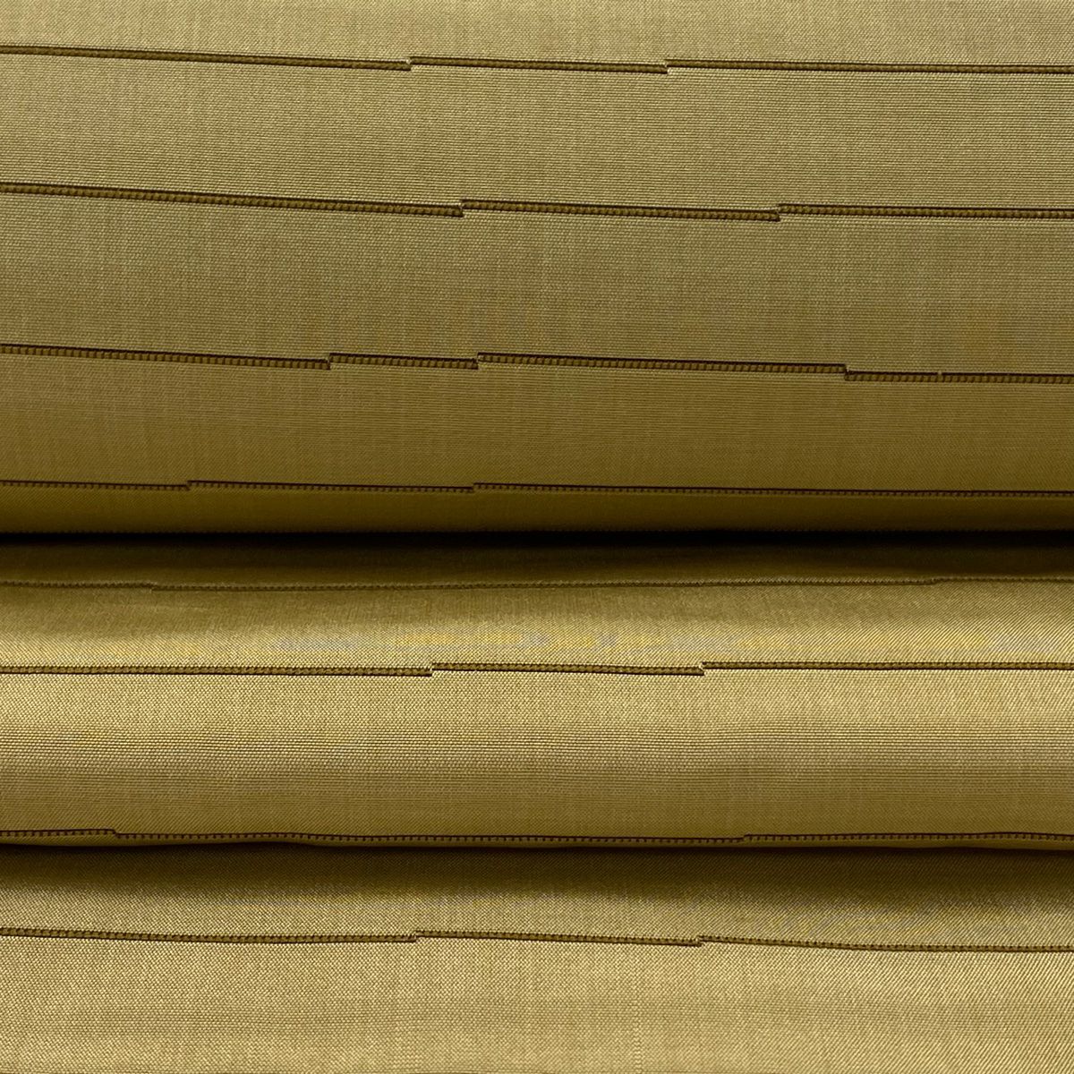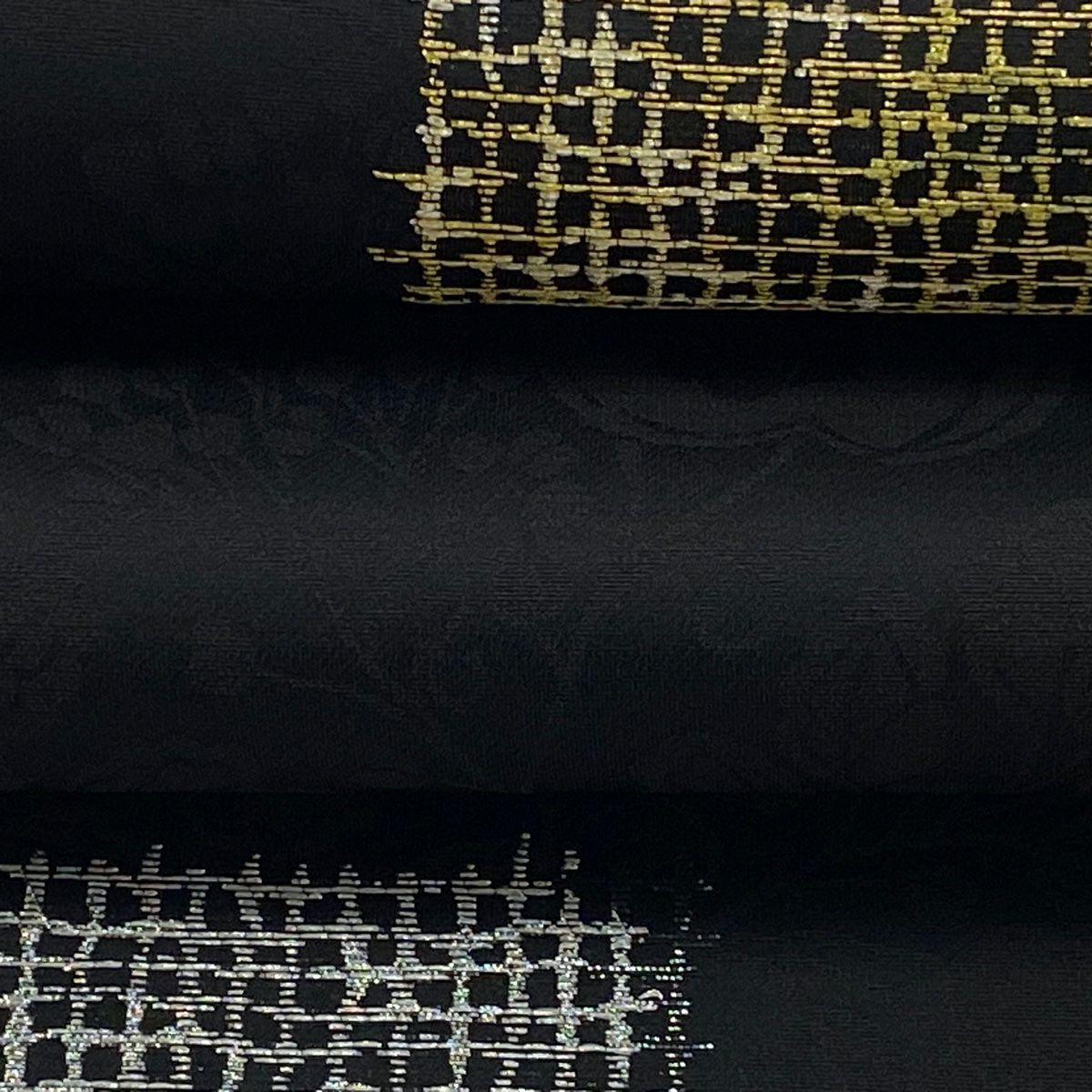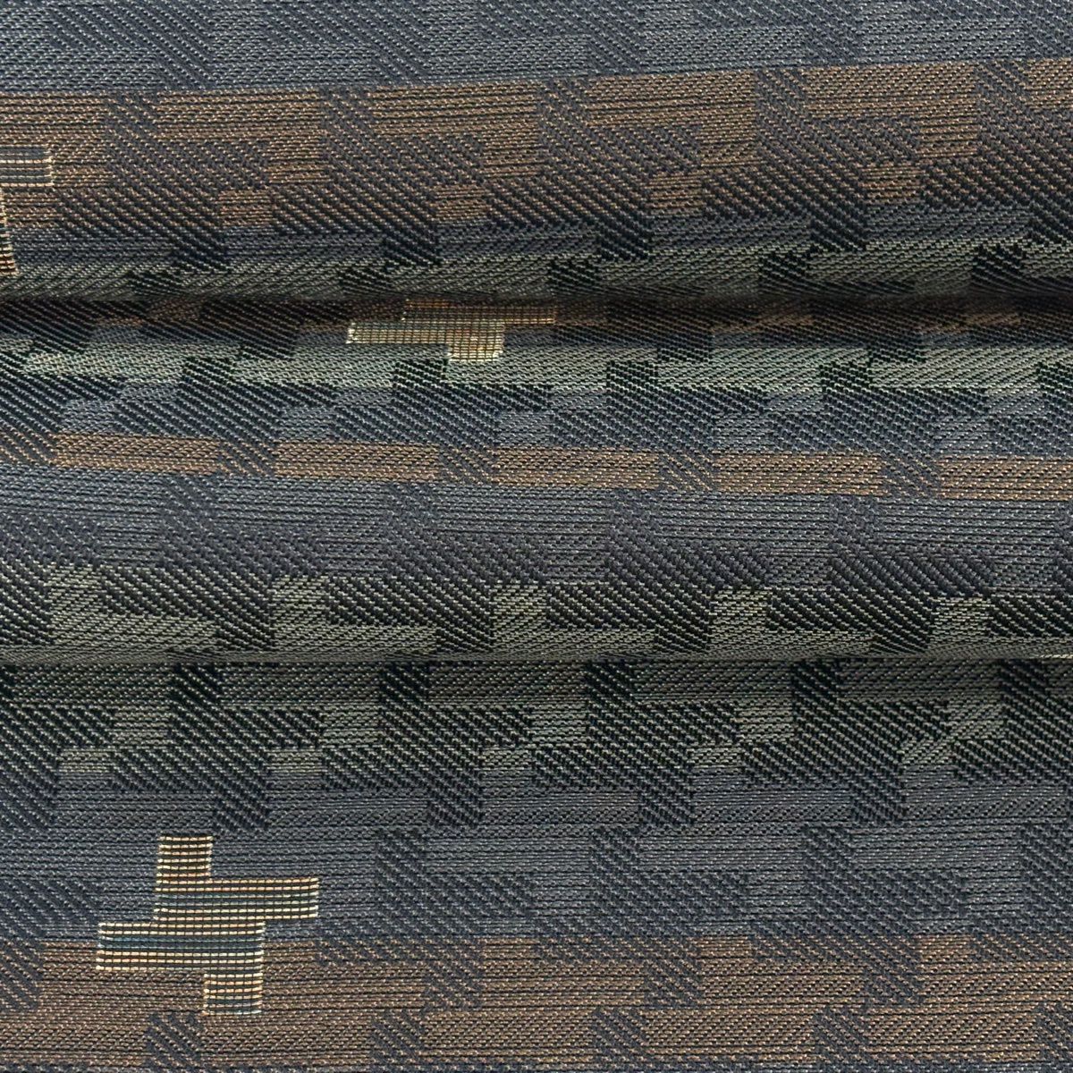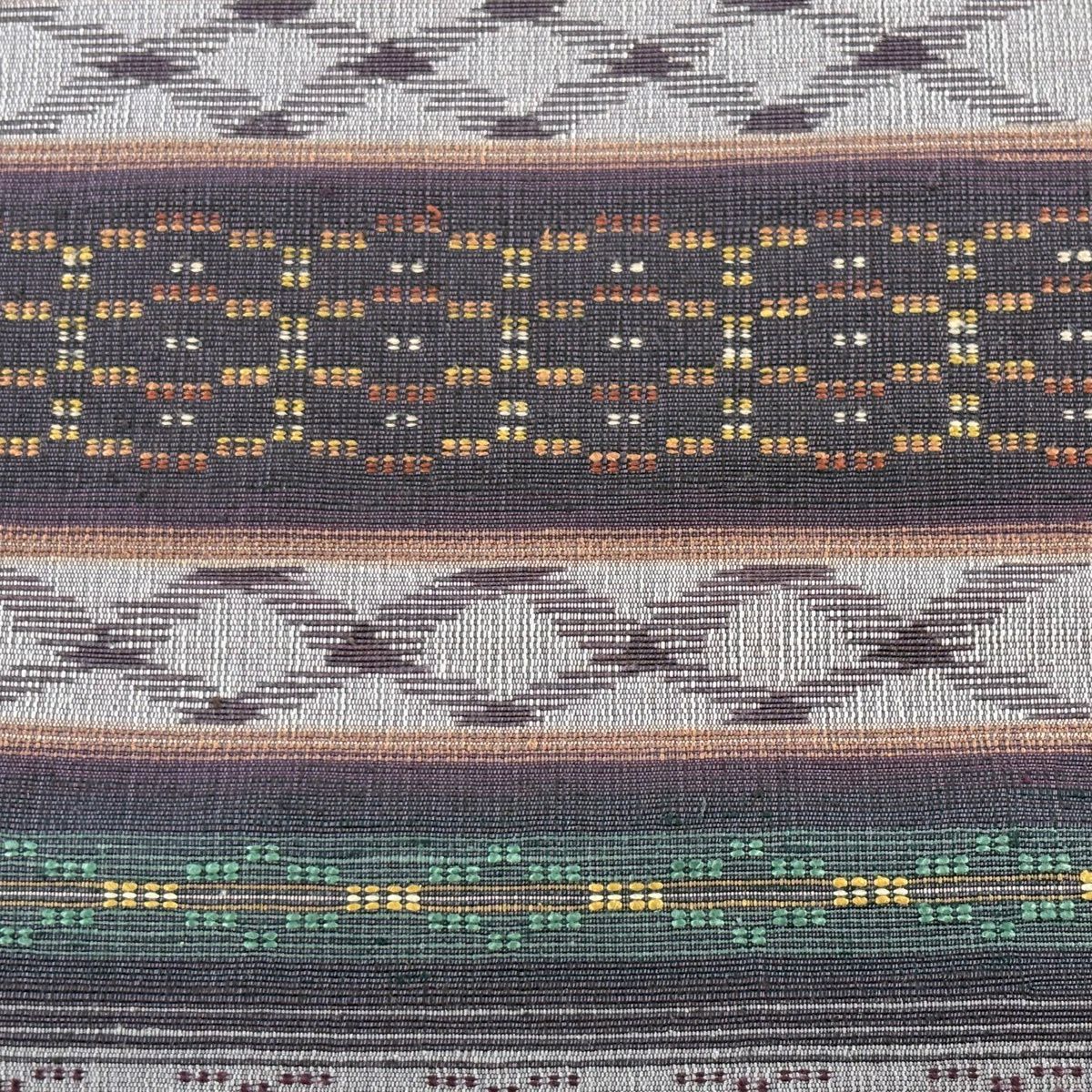 【美品】 袋帯 逸品 斉藤上太郎 落款あり 段縞 幾何学模様 金糸 灰緑 全通 正絹
