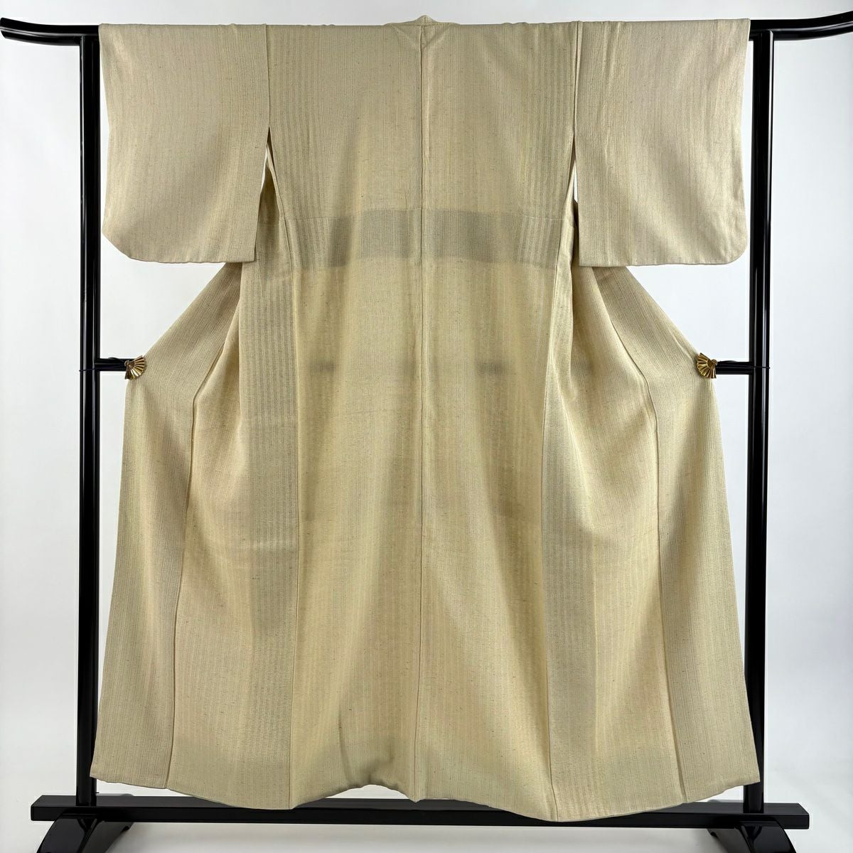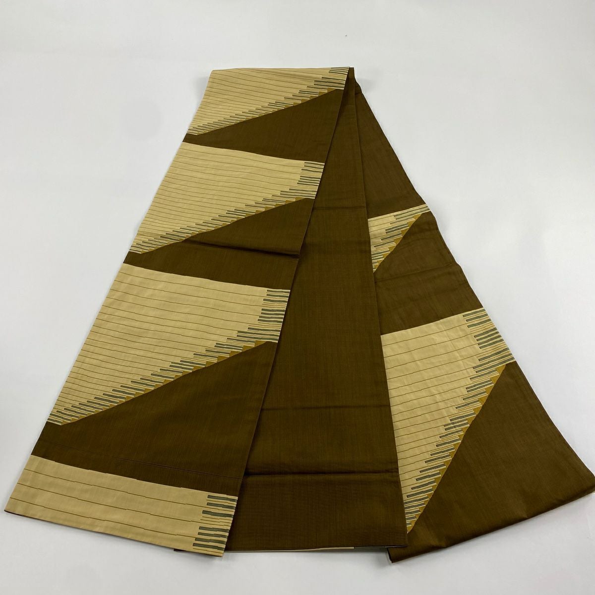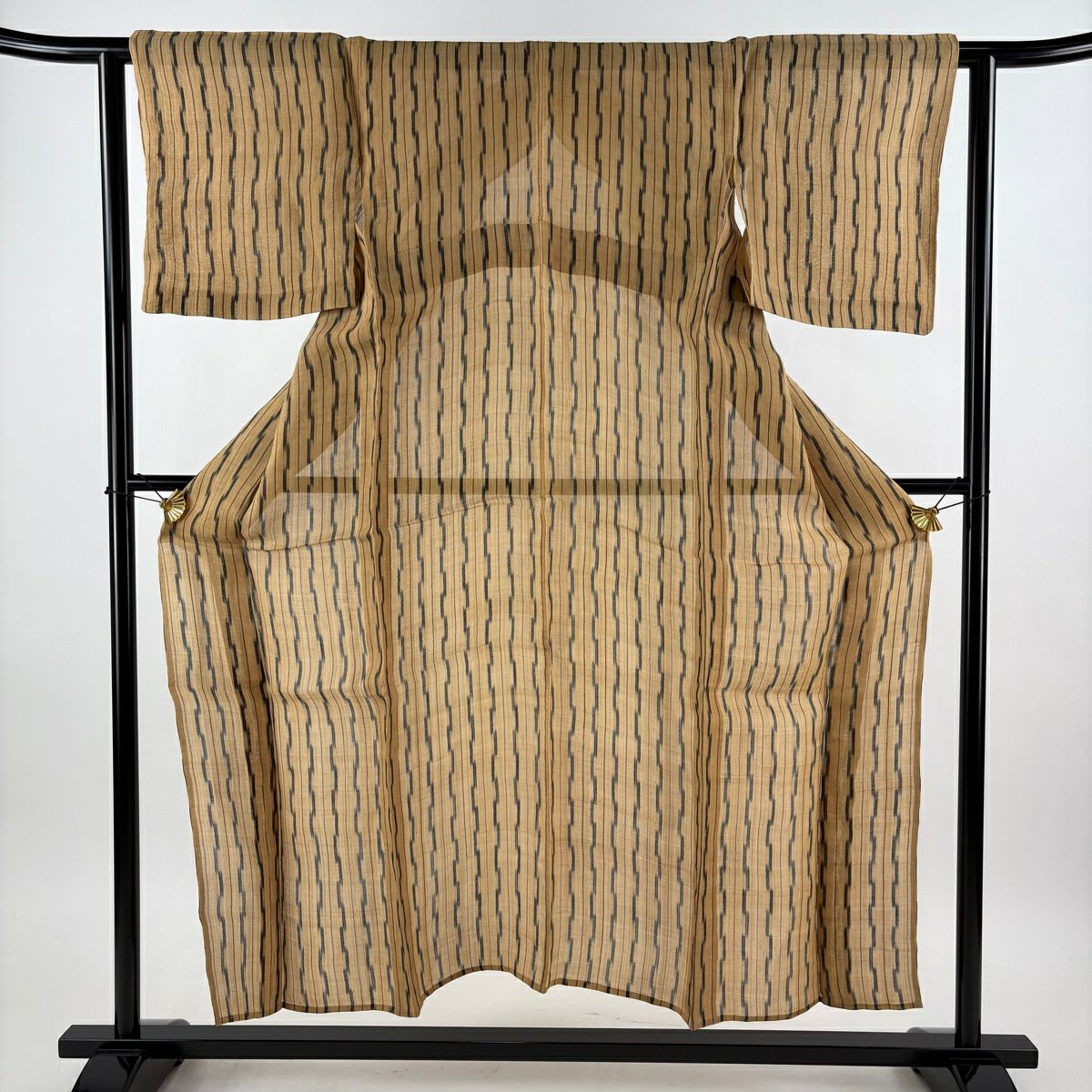 紬 身丈151.5cm 裄丈62cm S 単衣 芭蕉布 縞 幾何学模様 薄茶色 芭蕉 逸品