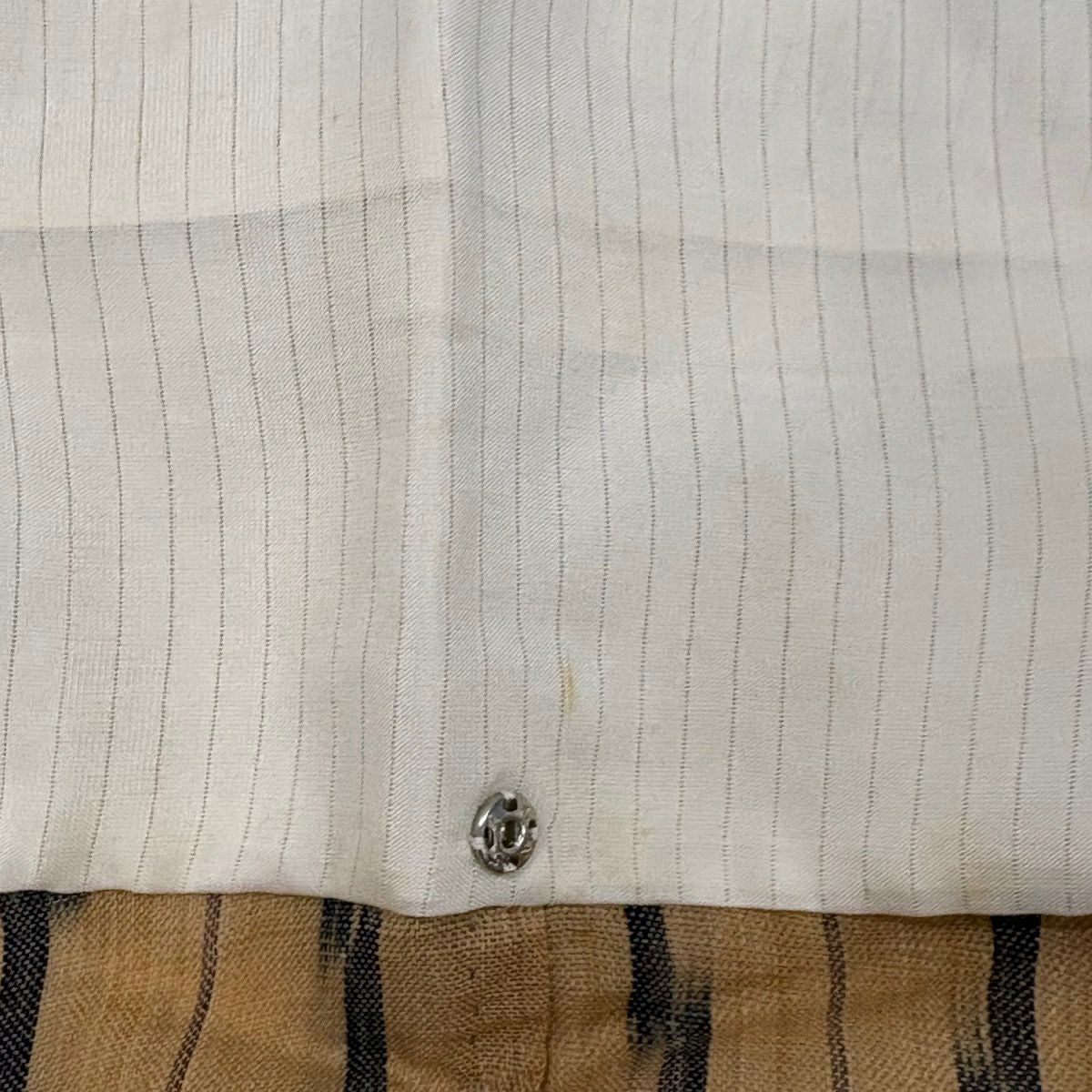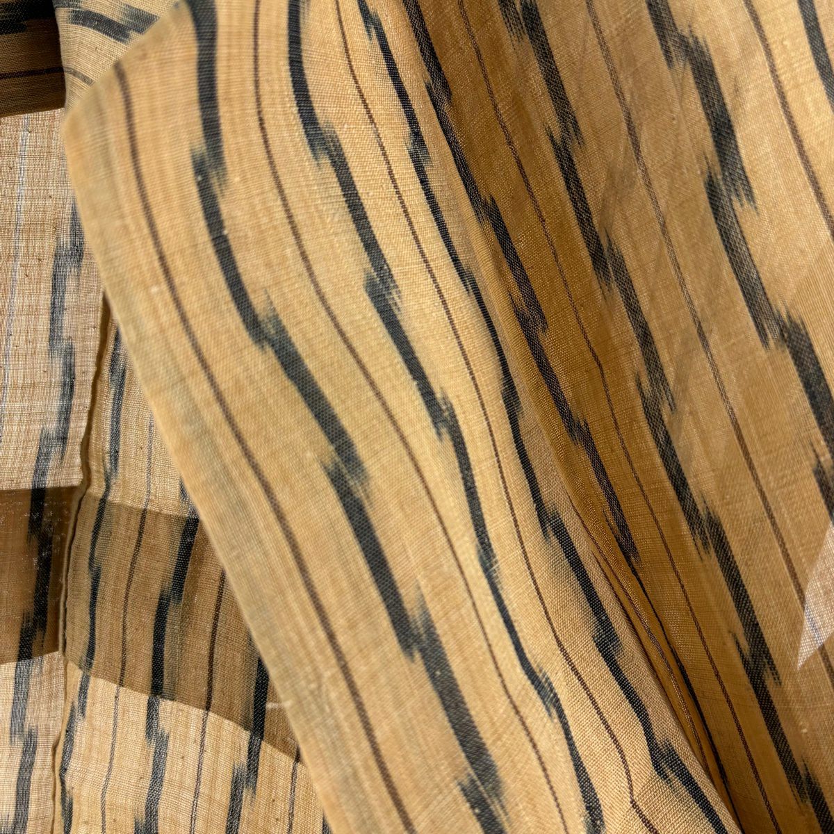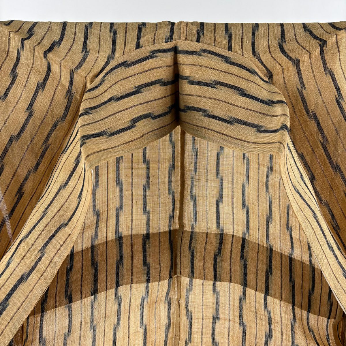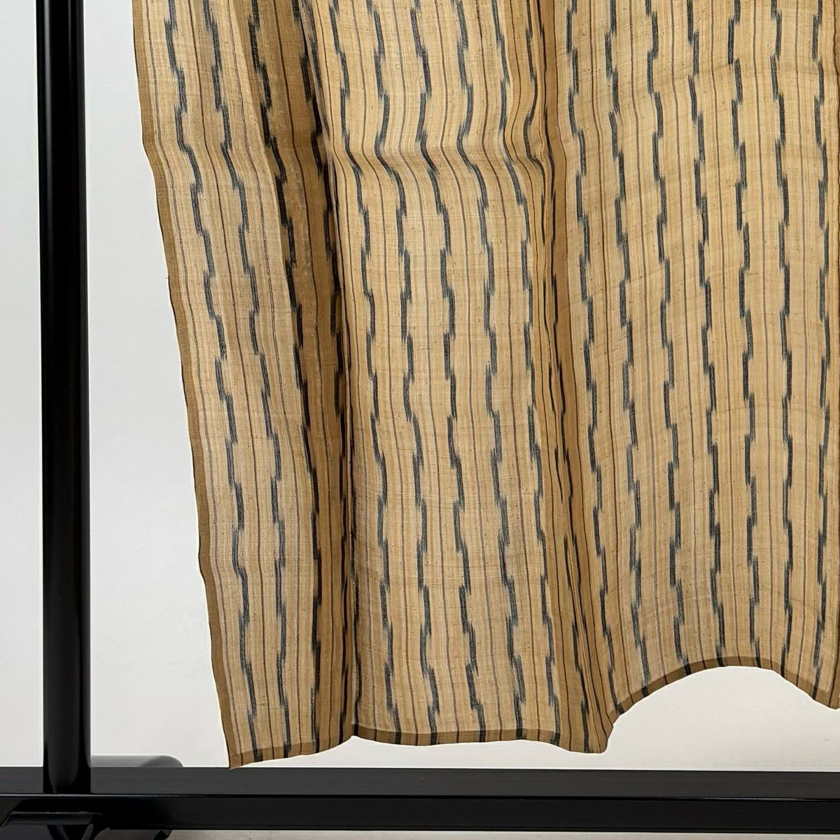 紬 身丈151.5cm 裄丈62cm S 単衣 芭蕉布 縞 幾何学模様 薄茶色 芭蕉 逸品