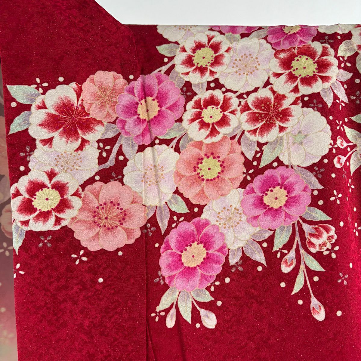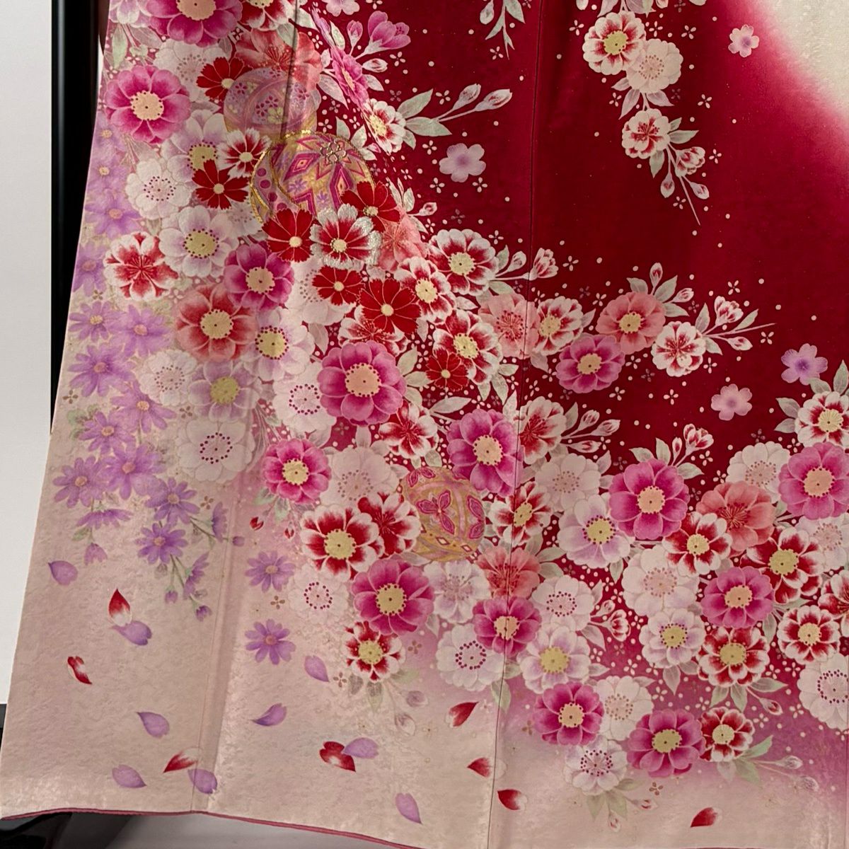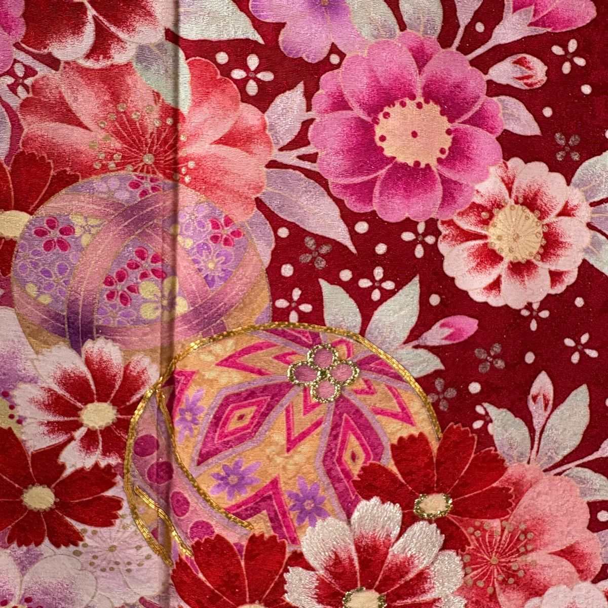 振袖 身丈171.5cm 裄丈67cm M 袷 手鞠 桜 金糸 銀通し 赤 正絹 逸品