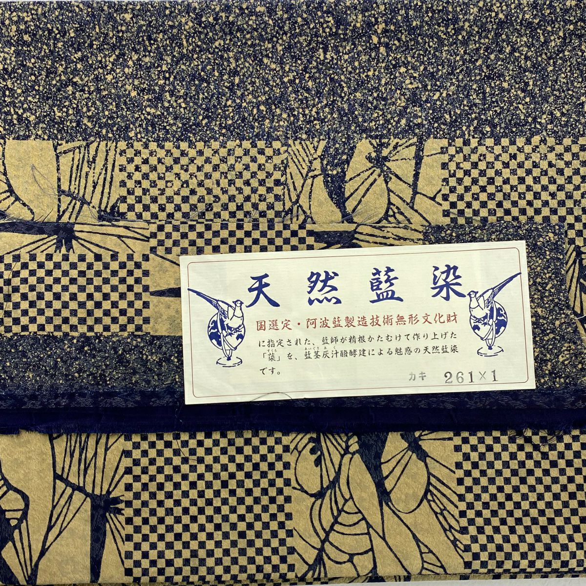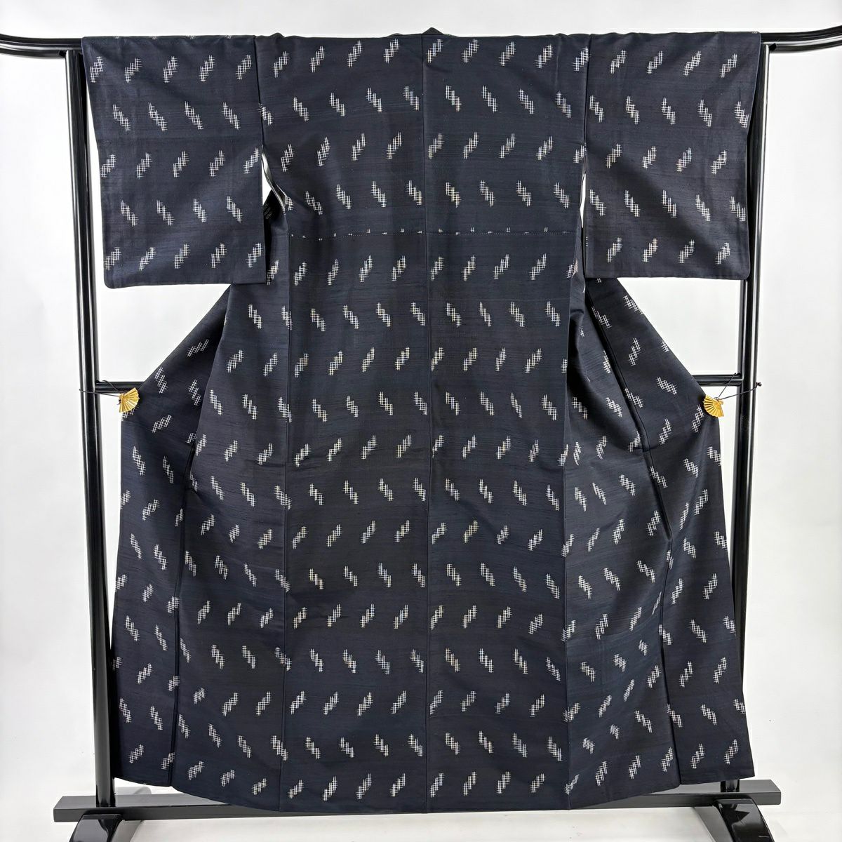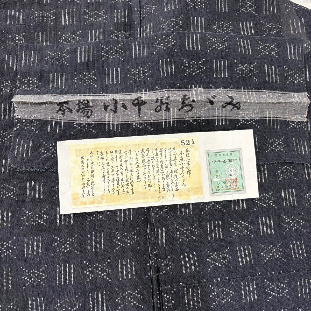紬 身丈160.5cm 裄丈64cm M 袷 琉球絣 証紙あり 絣柄 濃紺 正絹 逸品