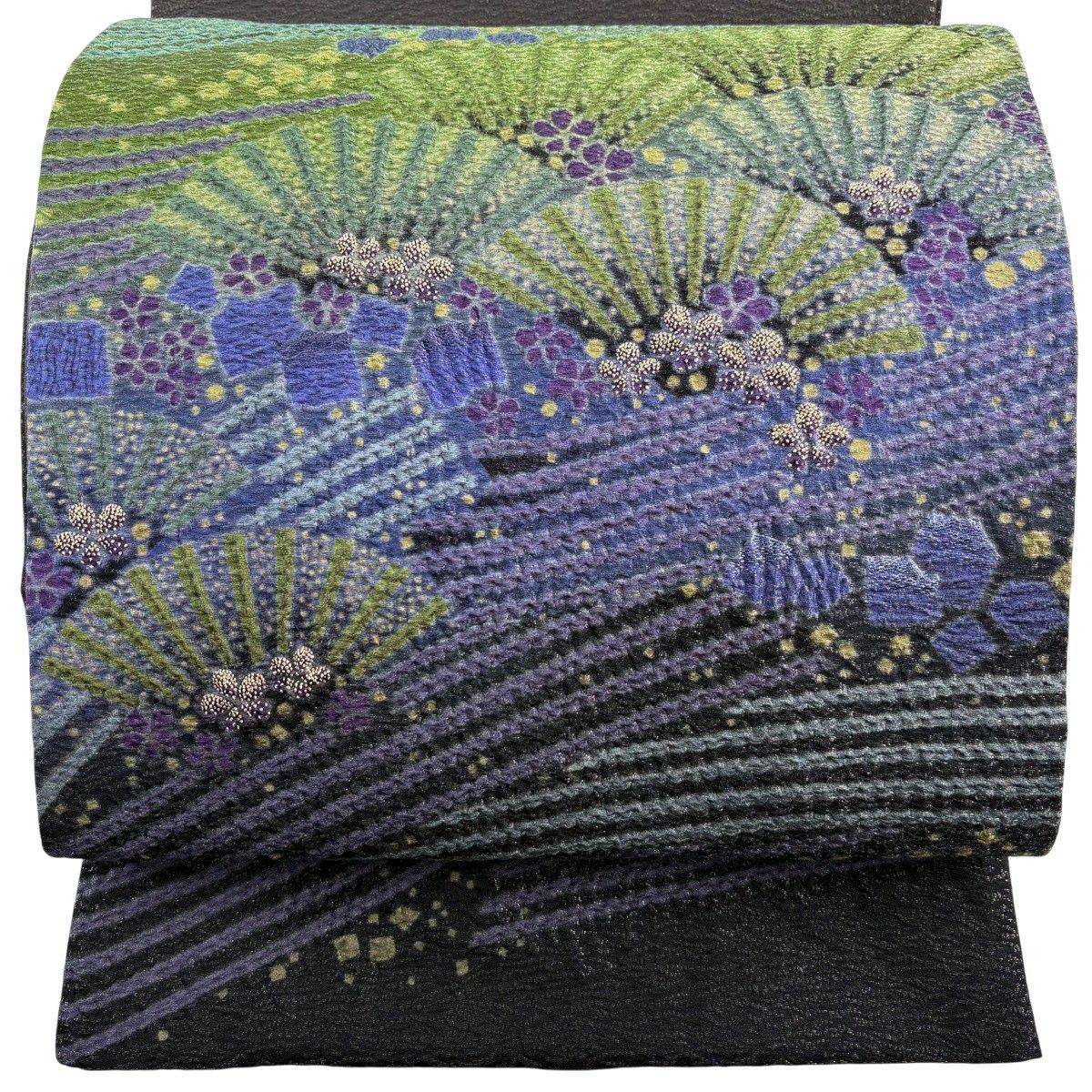 【美品】 袋帯 逸品 滝泰 落款あり 草花 霞 金糸 染め分け 墨色 お太鼓柄 正絹