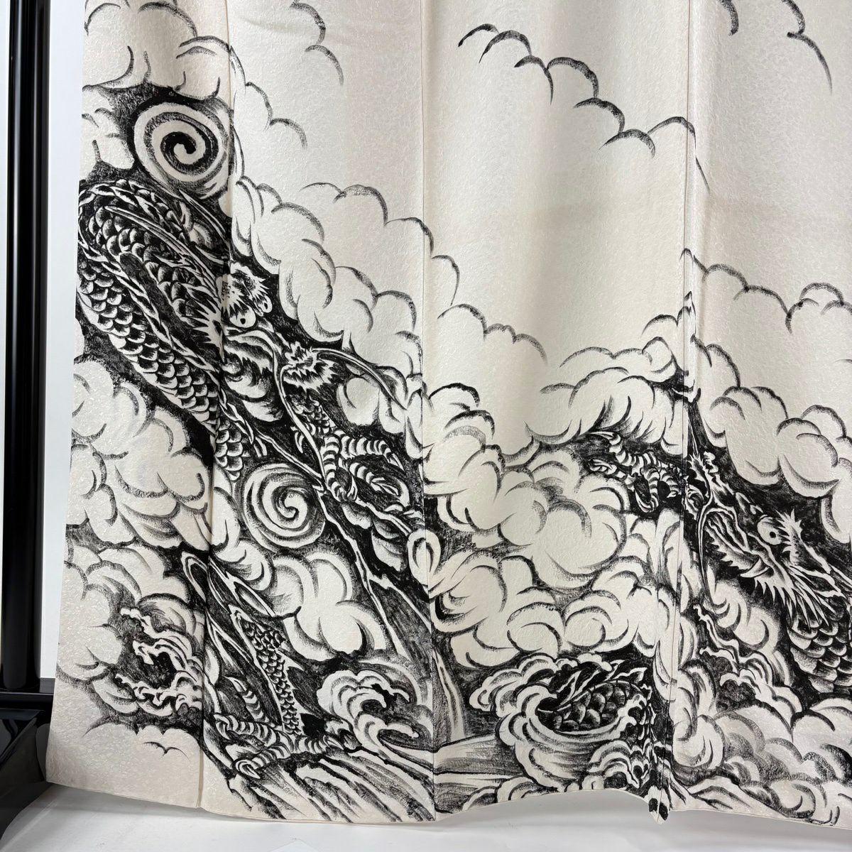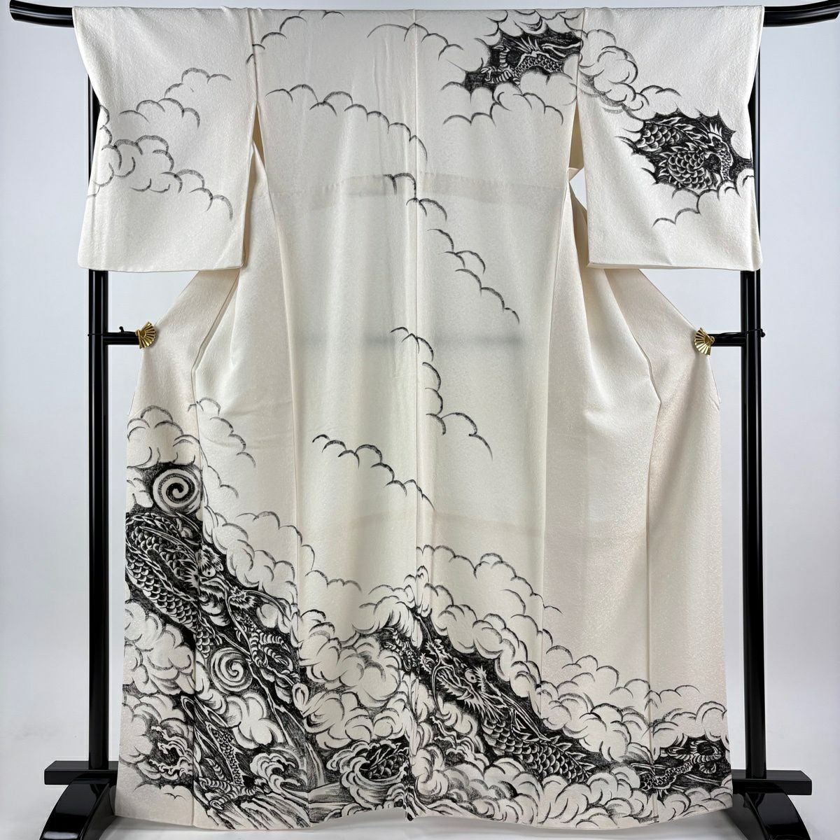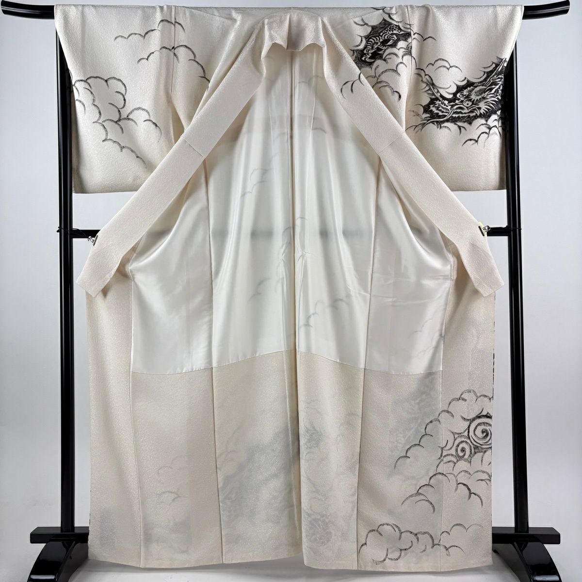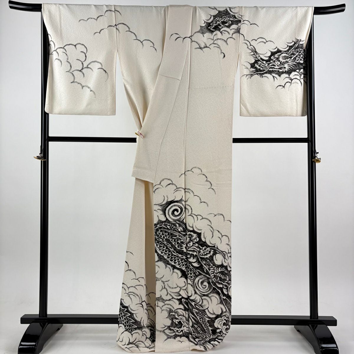 訪問着 身丈165cm 裄丈68.5cm L 袷 龍 雲文 銀通し クリーム 正絹 逸品
