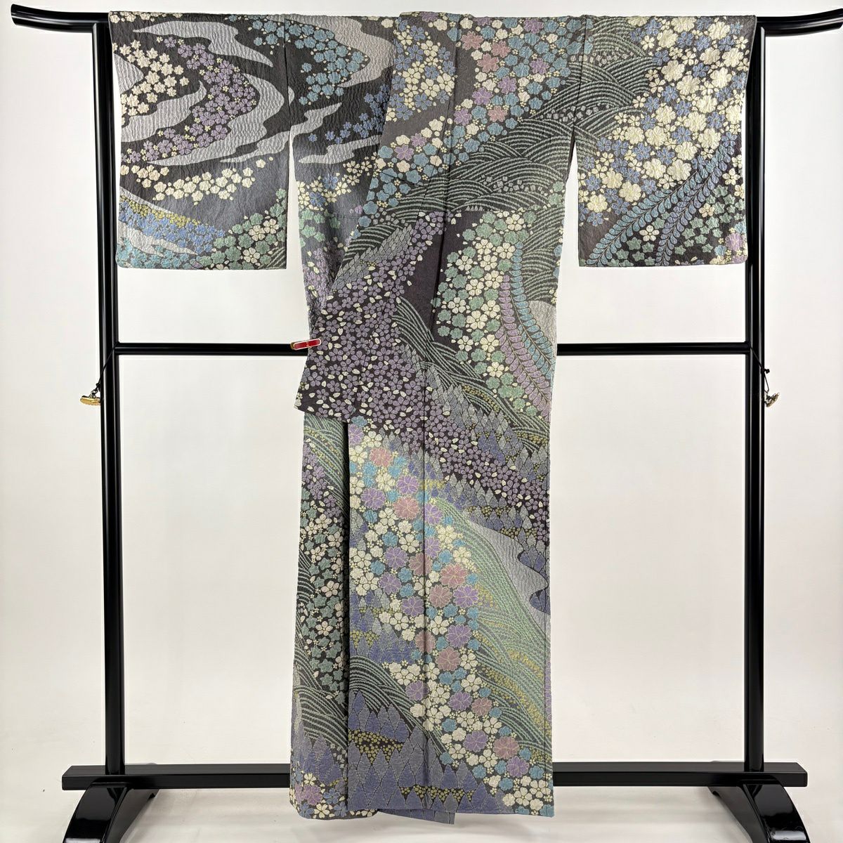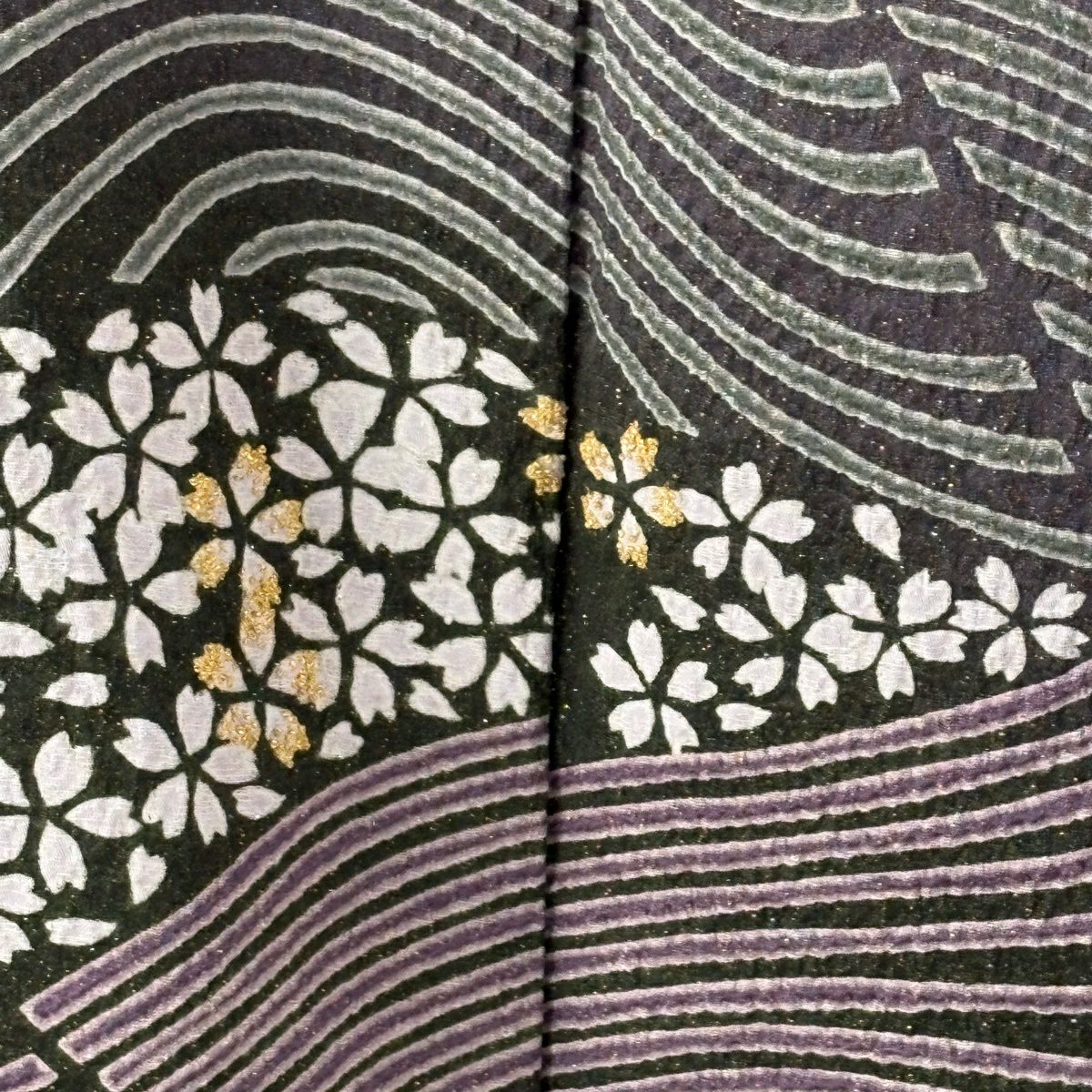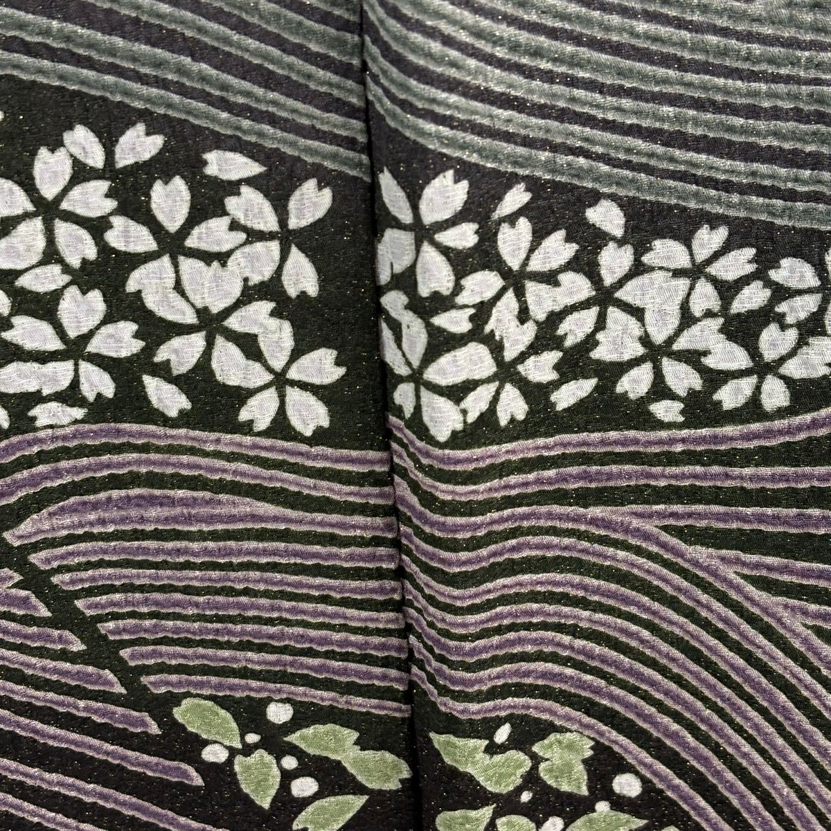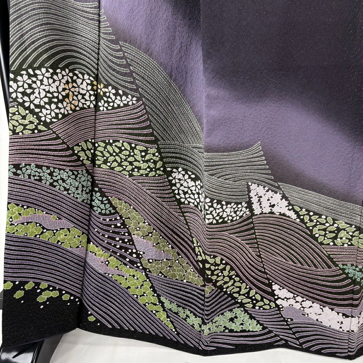 訪問着 身丈165cm 裄丈68.5cm L 袷 桜 波 金通し 絞り 濃紫 正絹 逸品