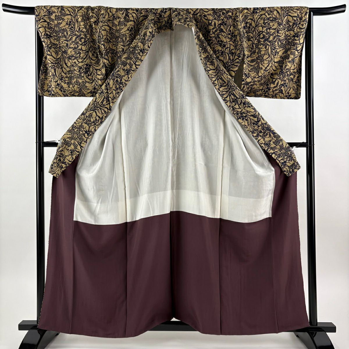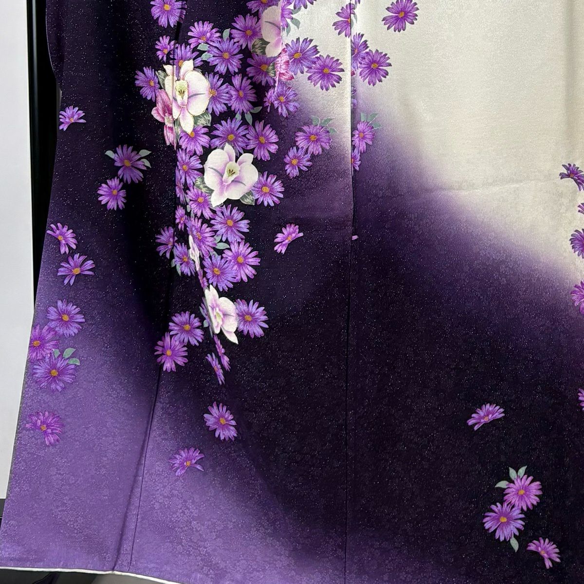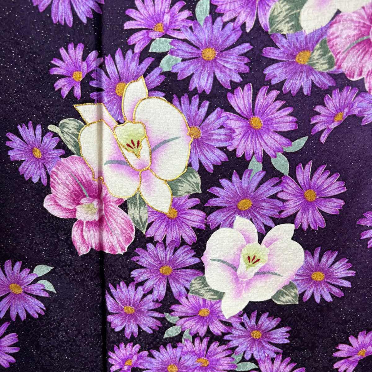 振袖 身丈165cm 裄丈72.5cm L 袷 蘭 草花 銀通し 金糸 濃紫 正絹 逸品