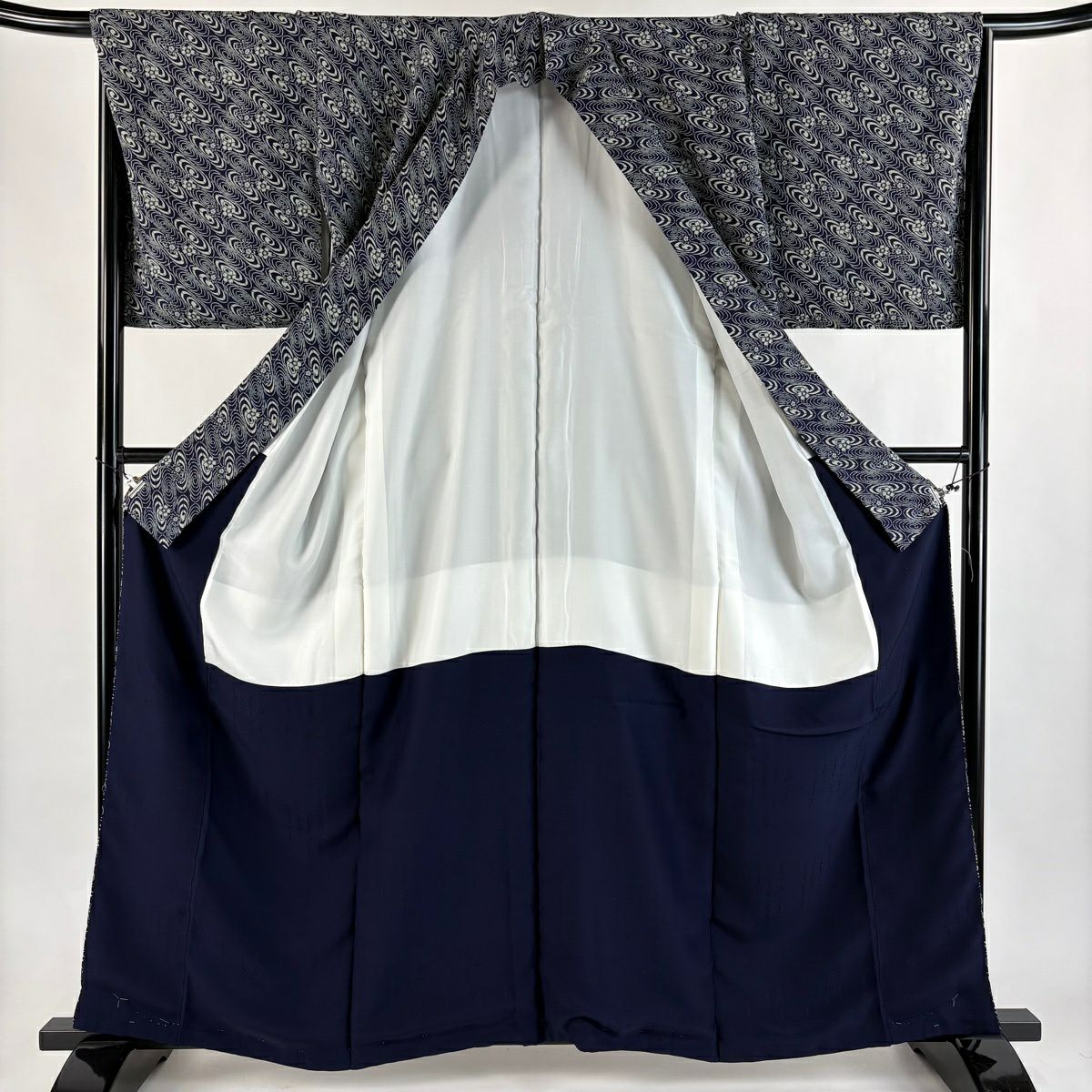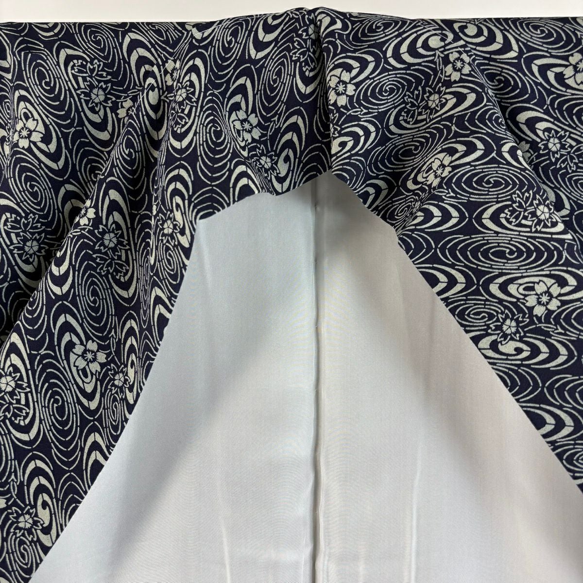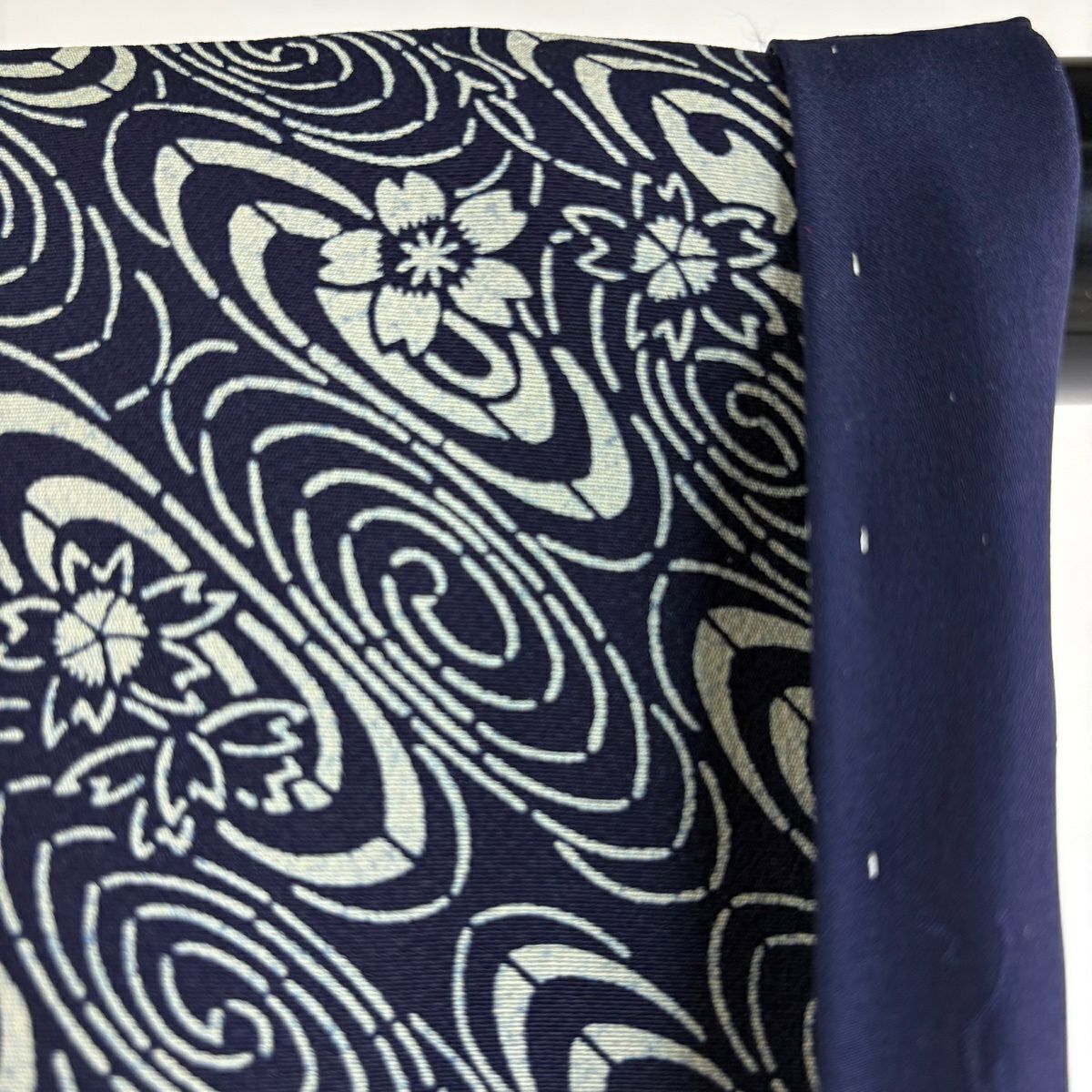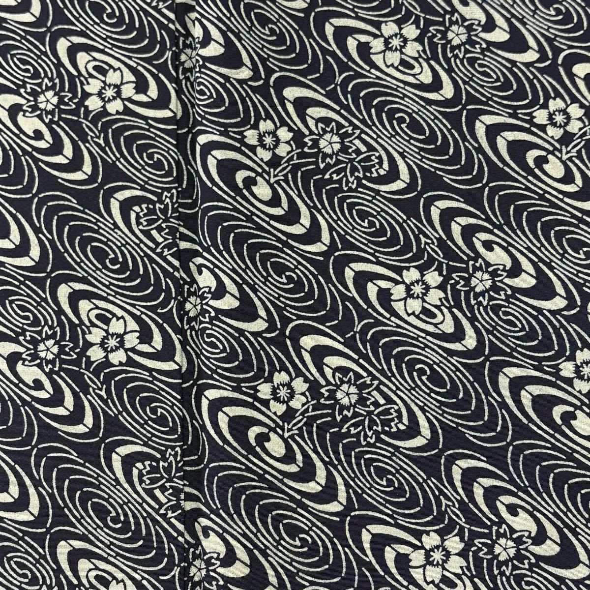 【美品】 小紋 身丈160.5cm 裄丈67.5cm L 袷 桜 渦巻き 濃紺 正絹 逸品