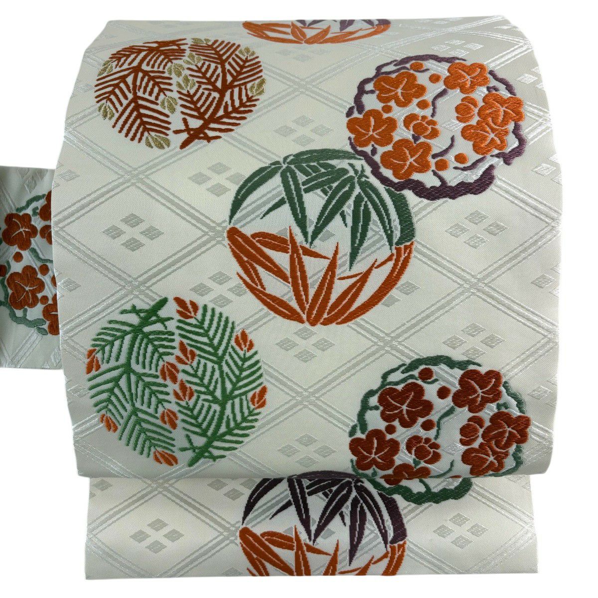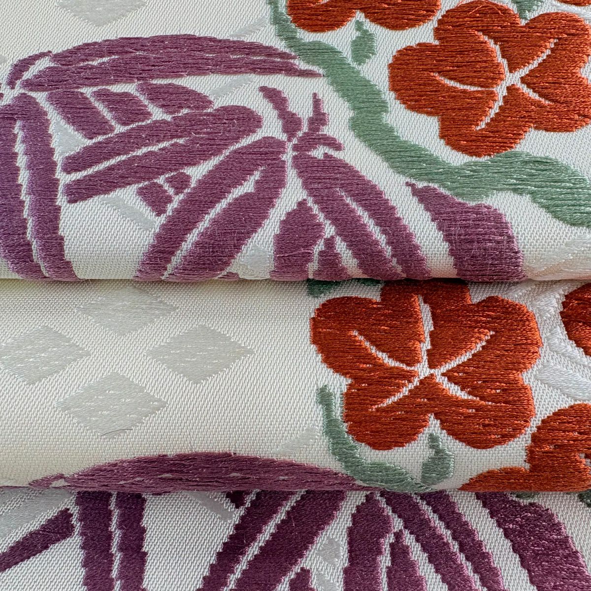 【美品】 名古屋帯 逸品 人間国宝 喜多川平朗 松竹梅 花丸文 唐織 クリーム 正絹