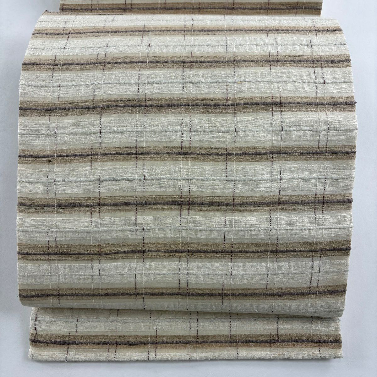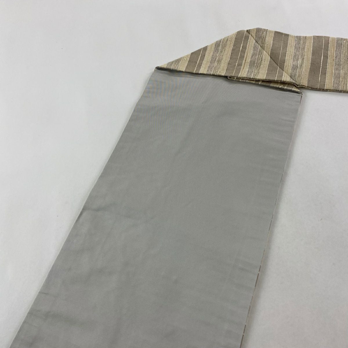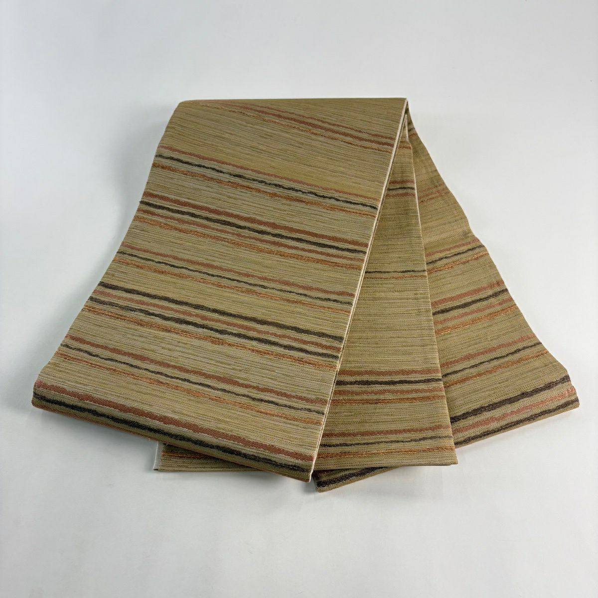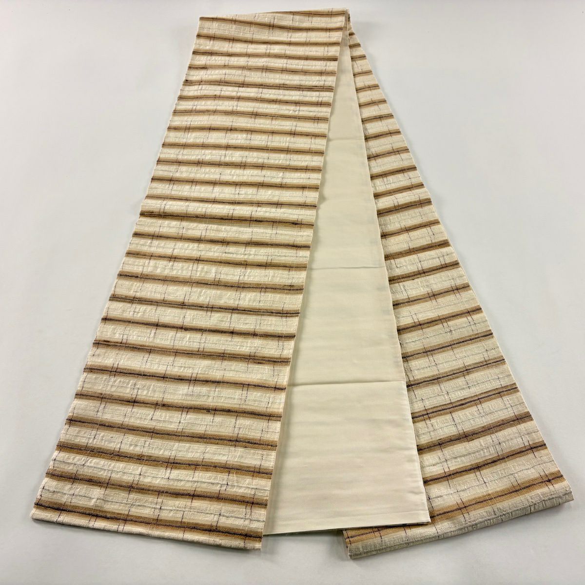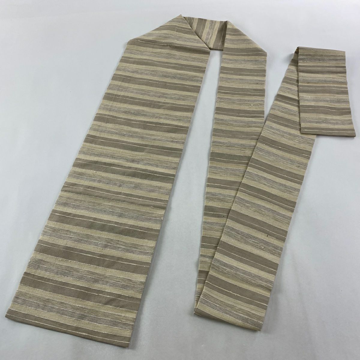 【美品】 袋帯 逸品 縞 ベージュ 全通 正絹