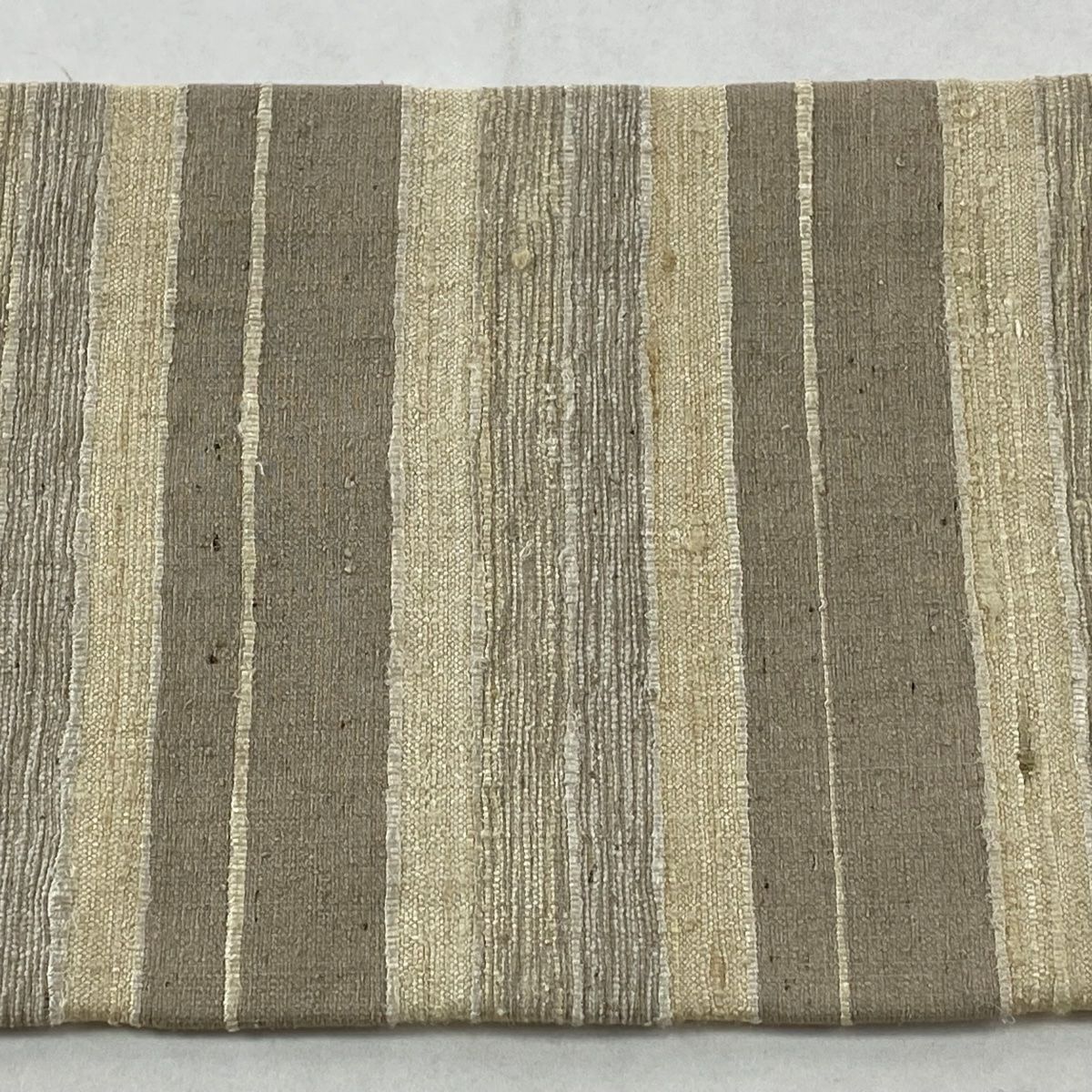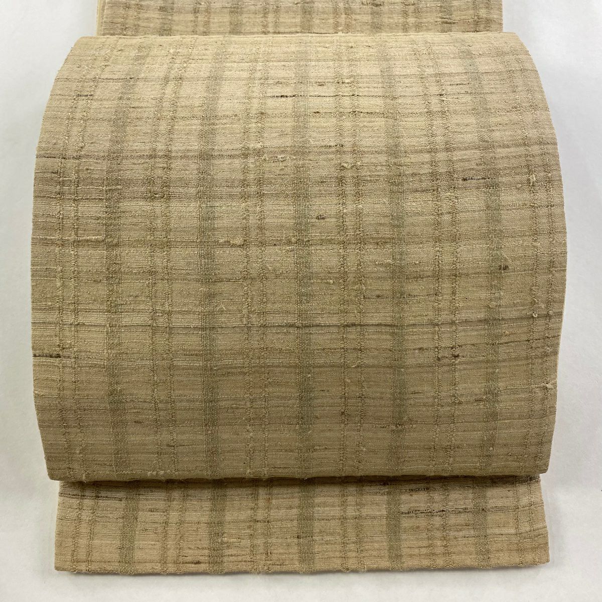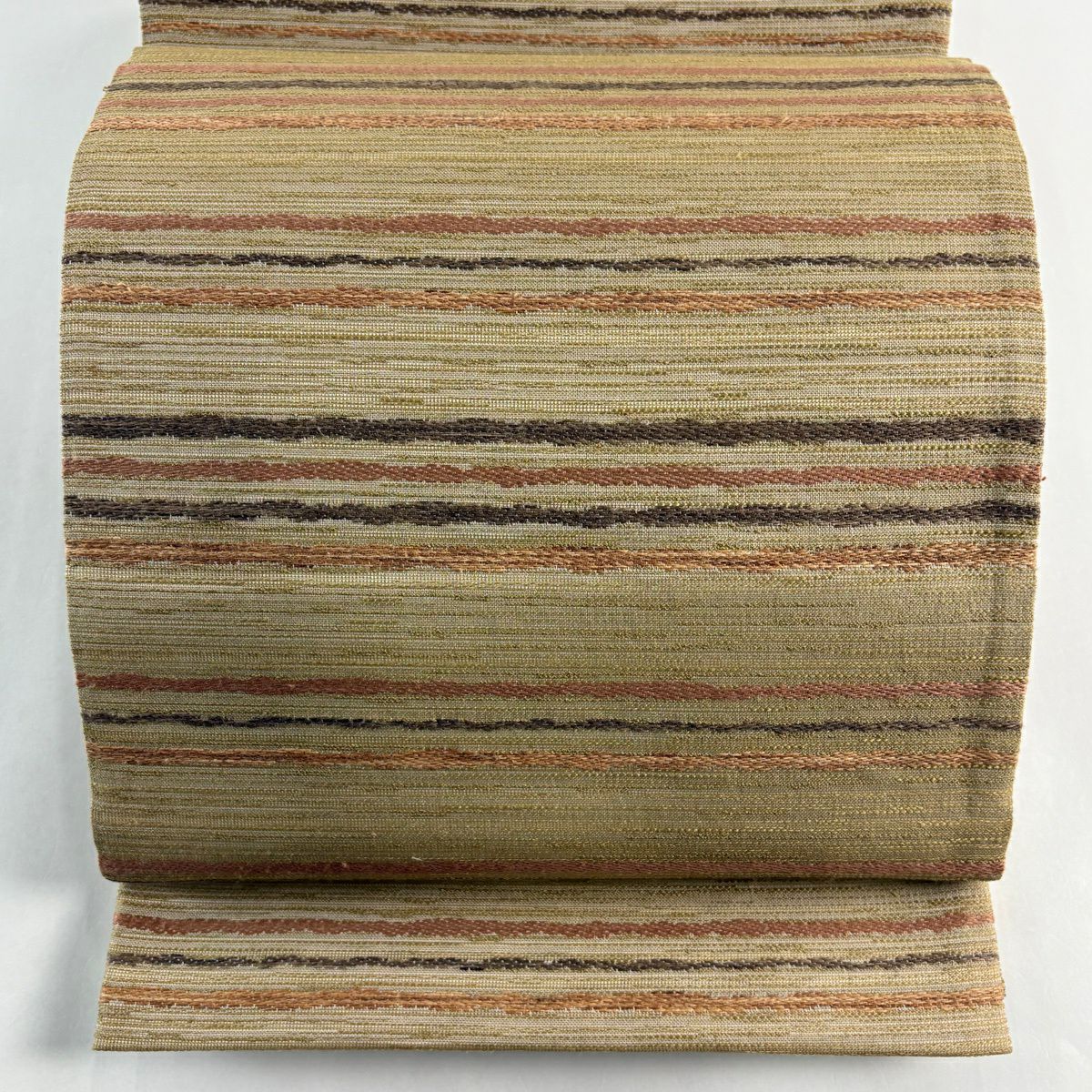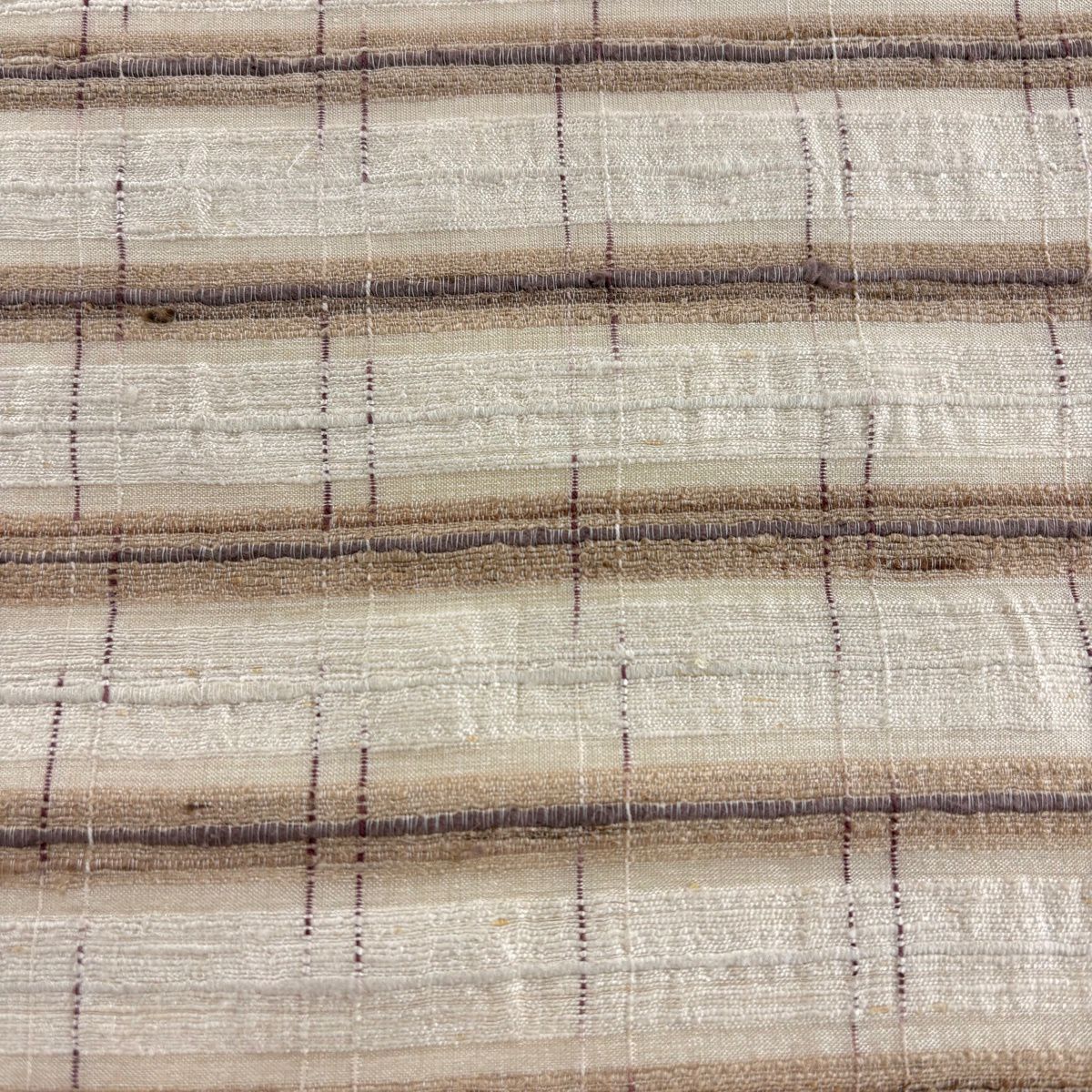 【美品】 袋帯 逸品 縞 ベージュ 全通 正絹