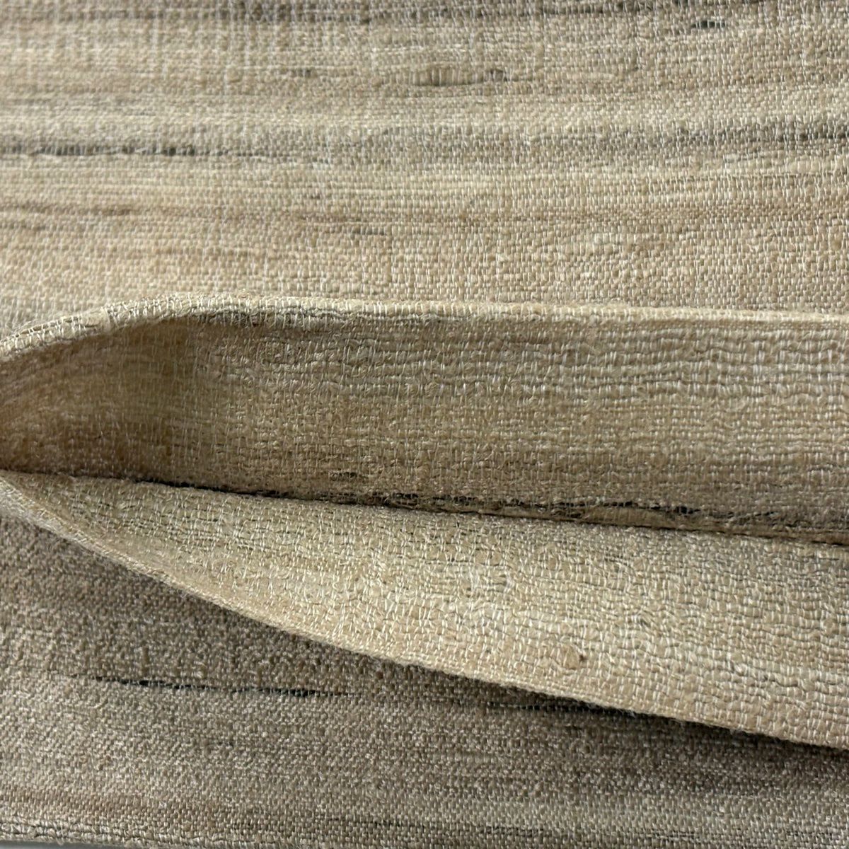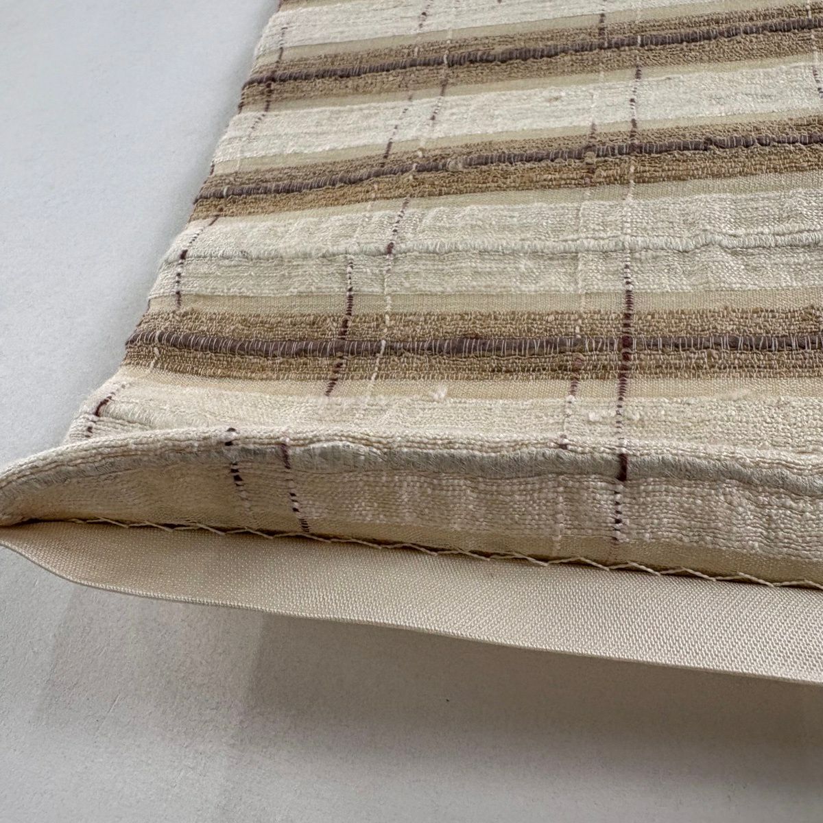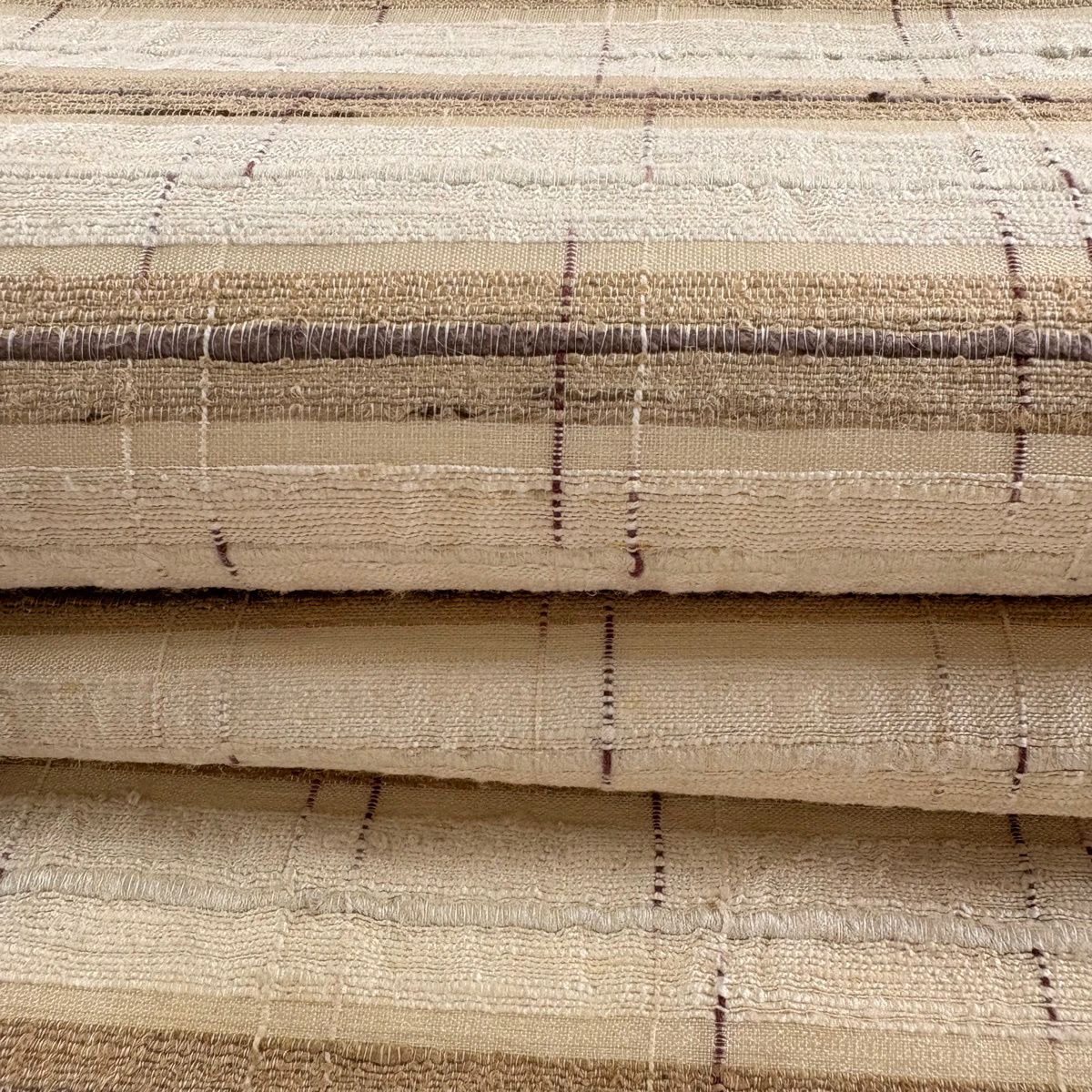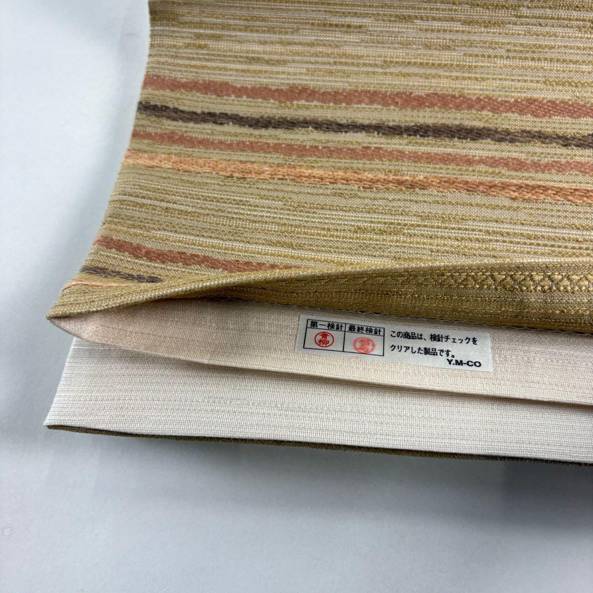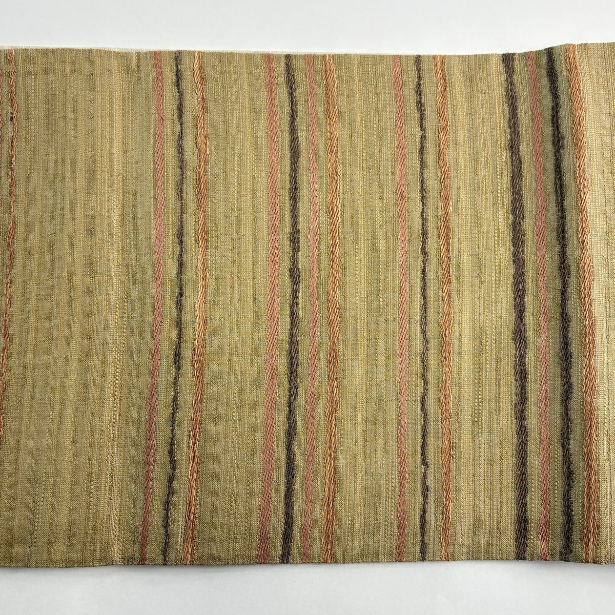 【美品】 袋帯 逸品 縞 ベージュ 全通 正絹