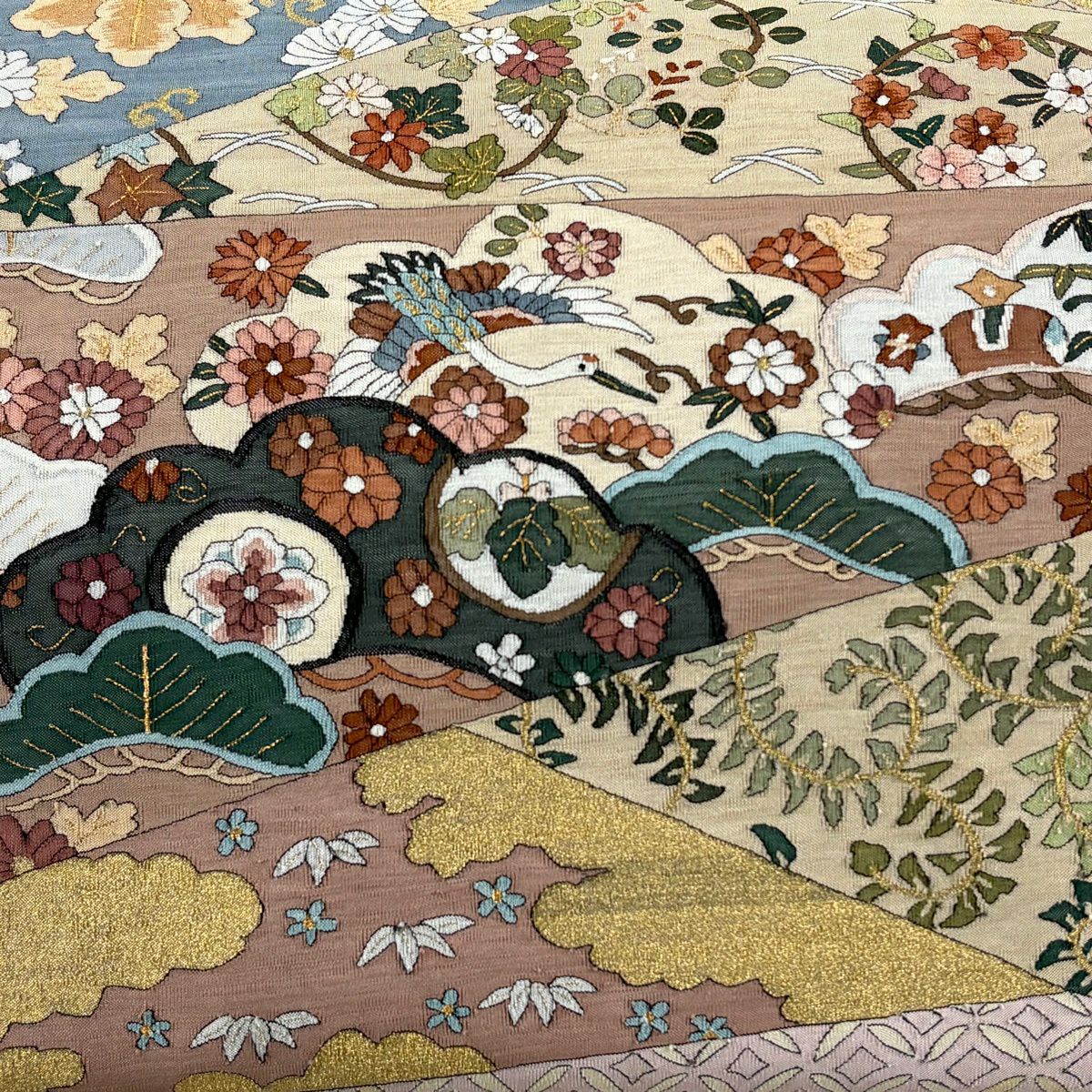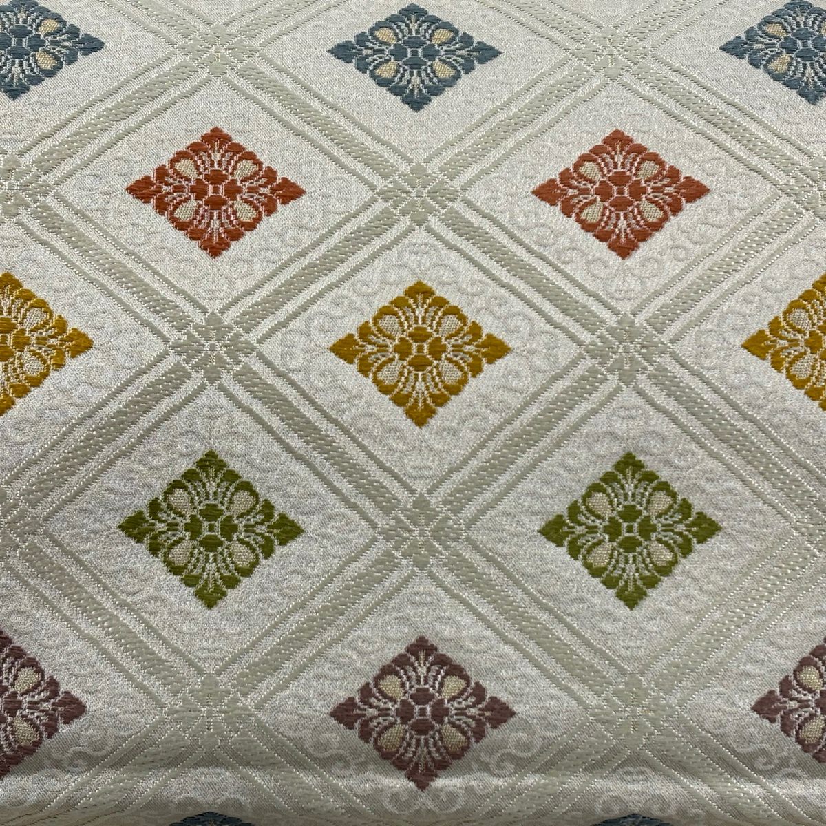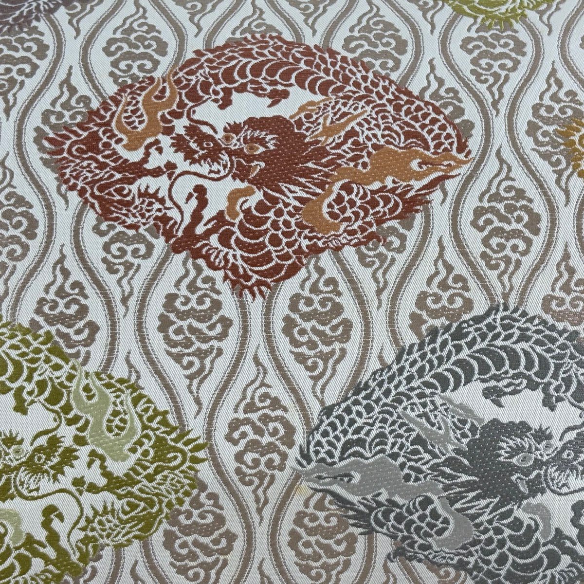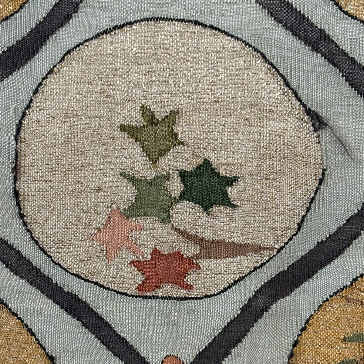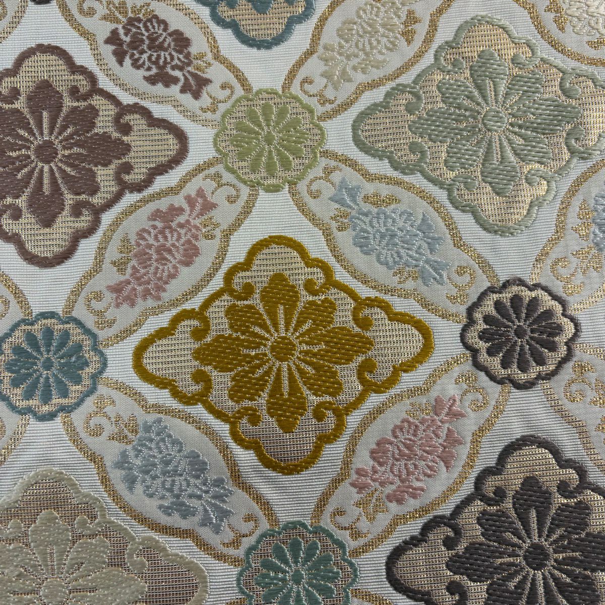 袋帯 逸品 草花 七宝 金糸 クリーム 六通 正絹