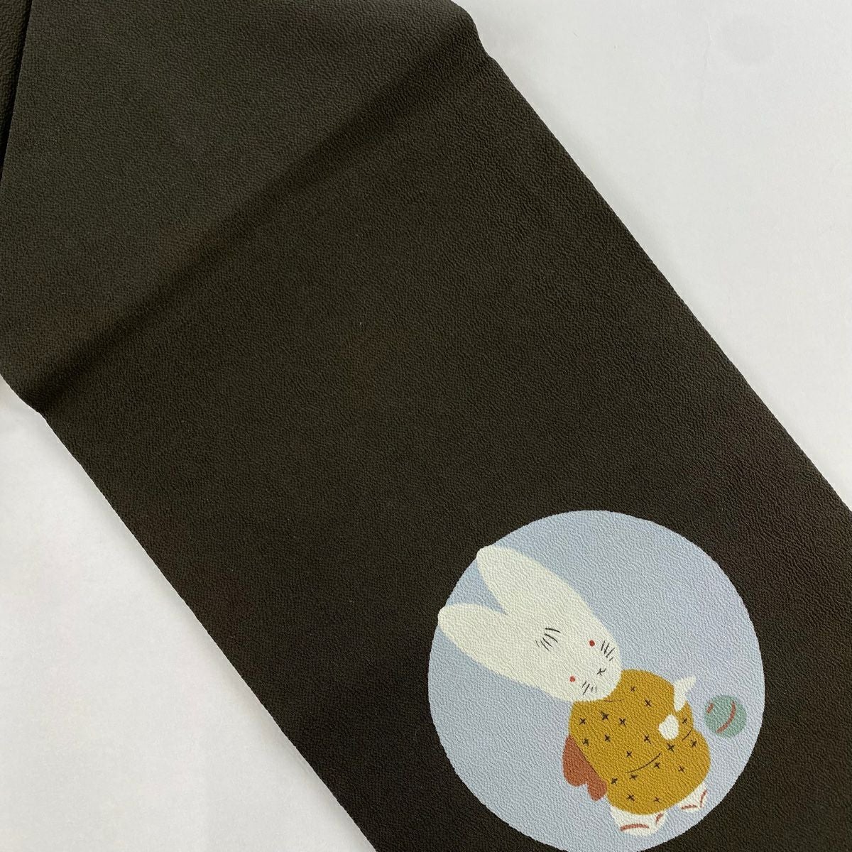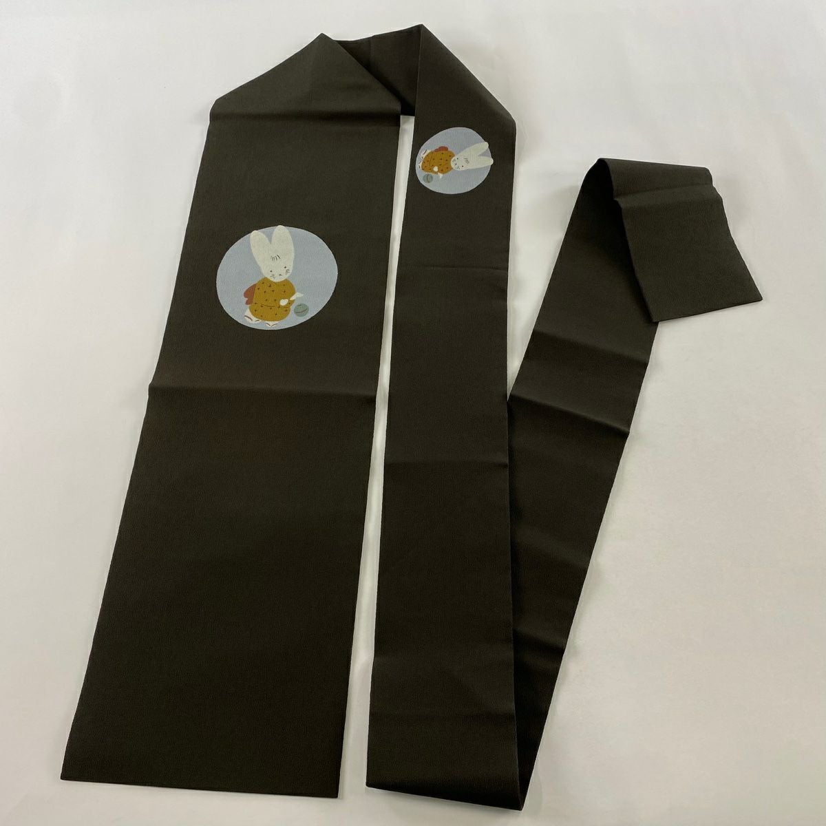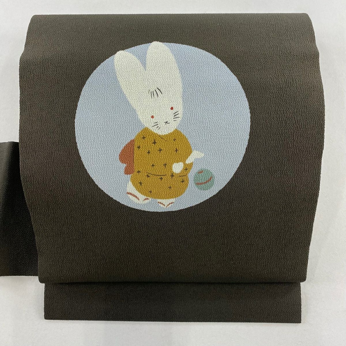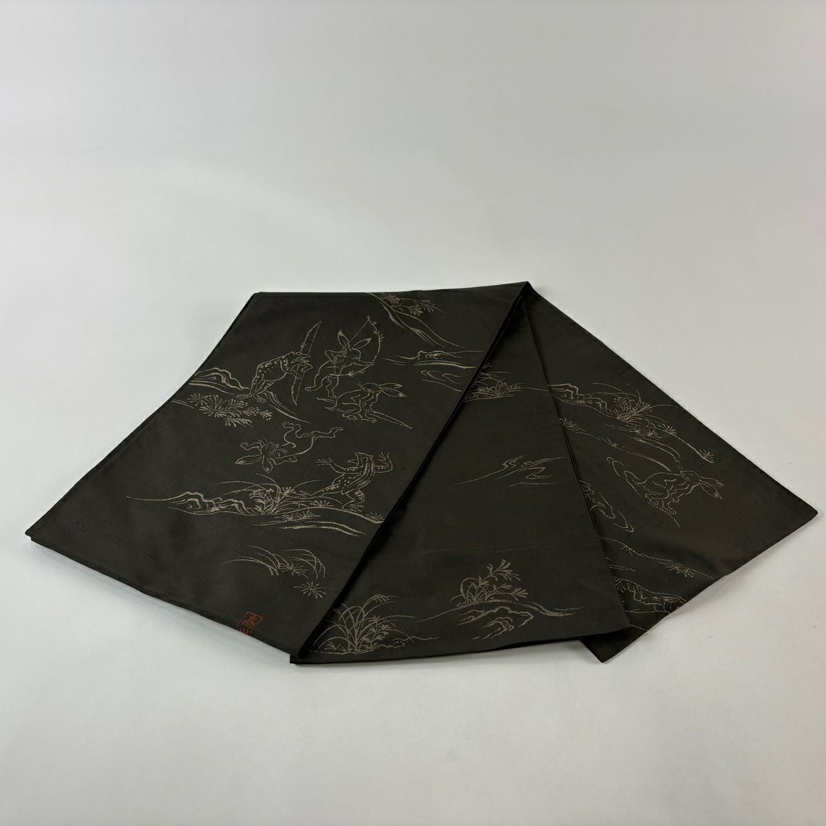 袋帯 逸品 紬地 鳥獣戯画 焦茶色 お太鼓柄 正絹