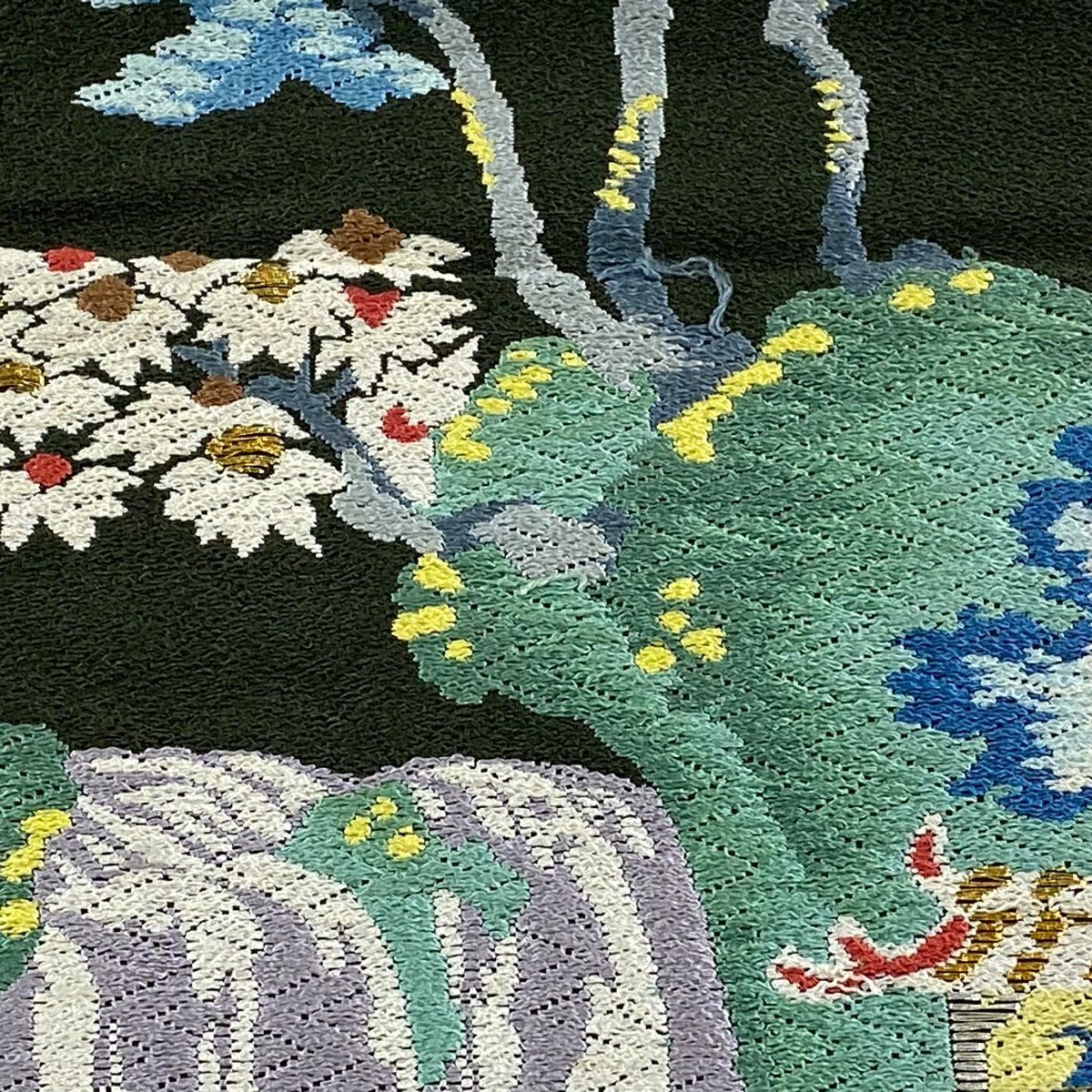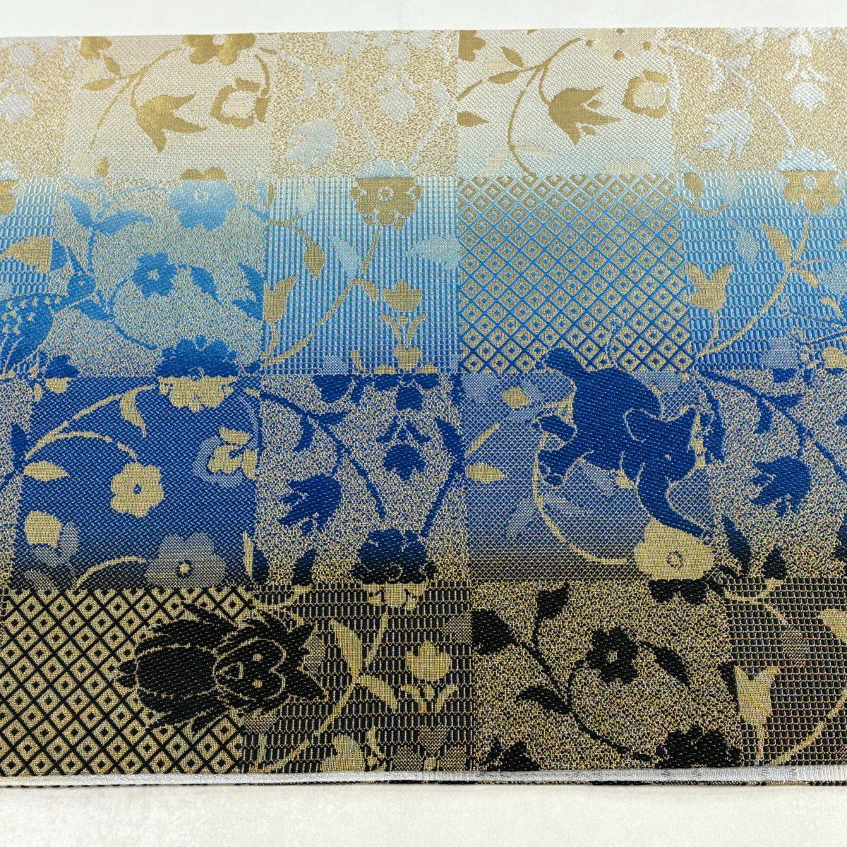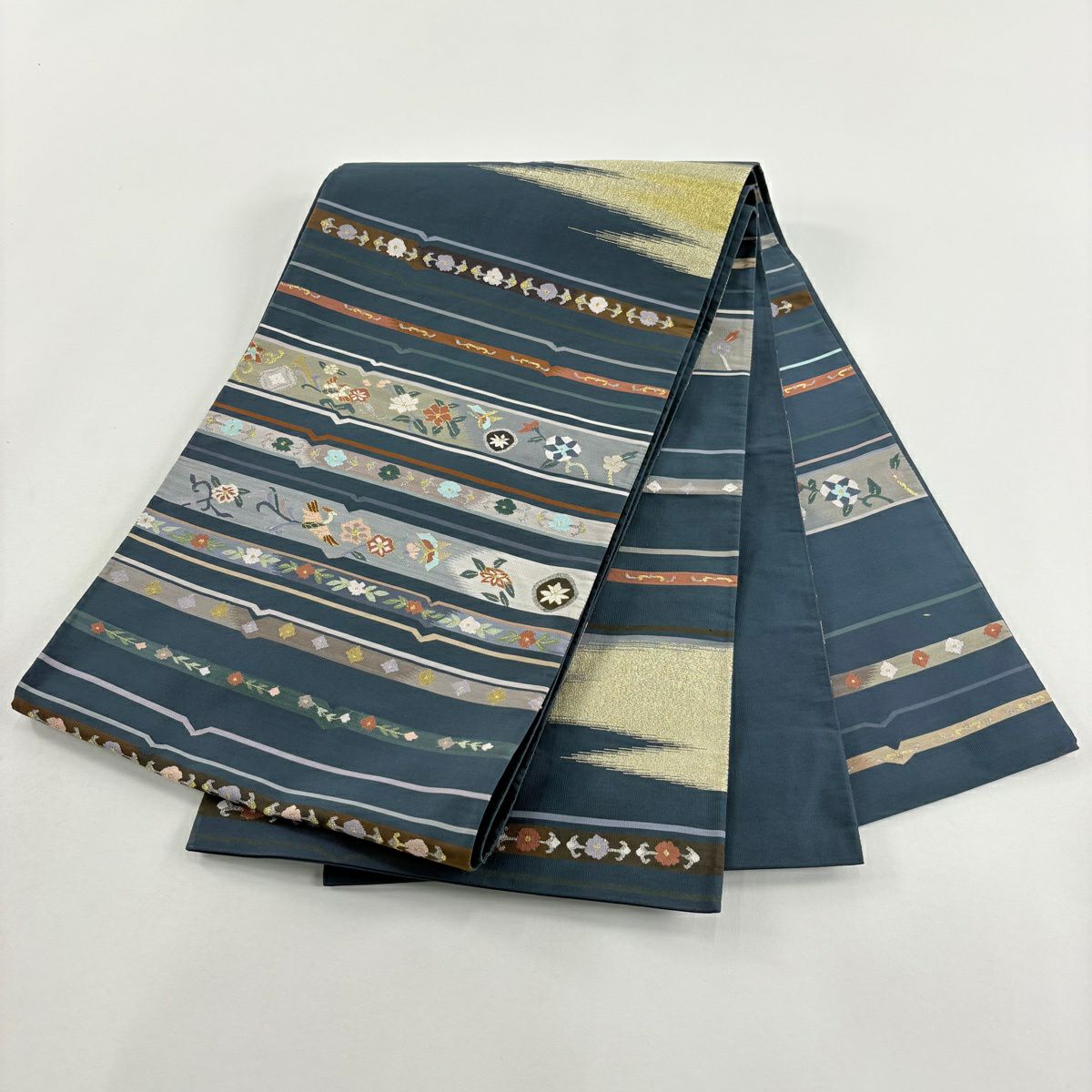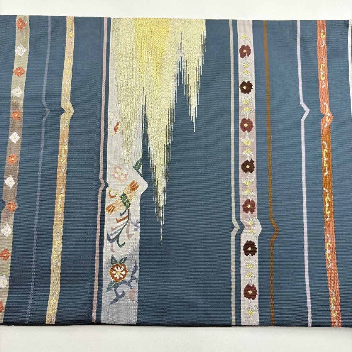 袋帯 逸品 ゾウ フクロウ 金糸 青 全通 正絹