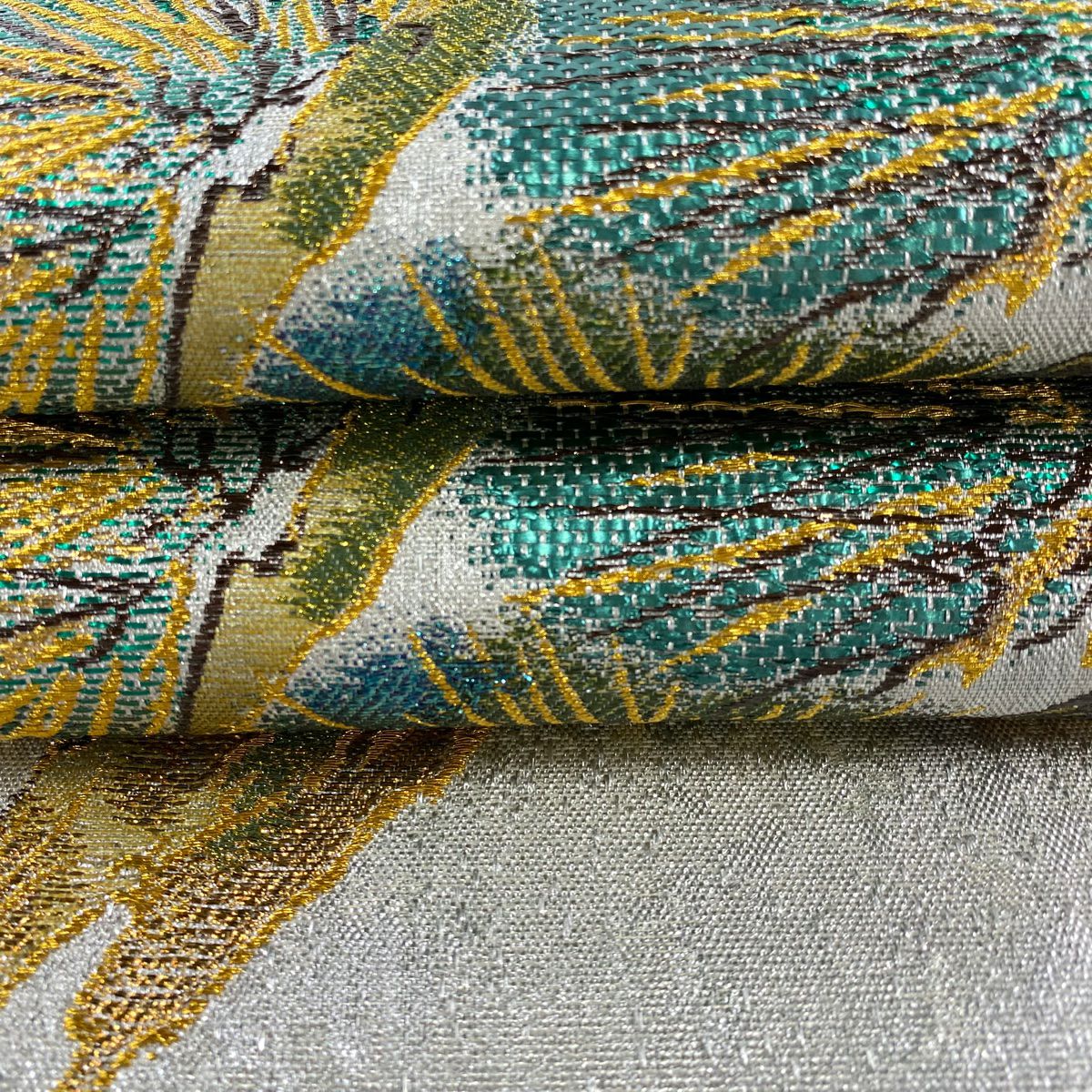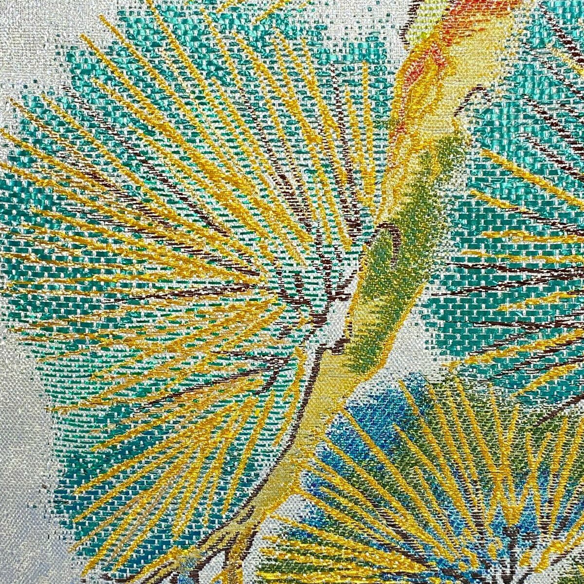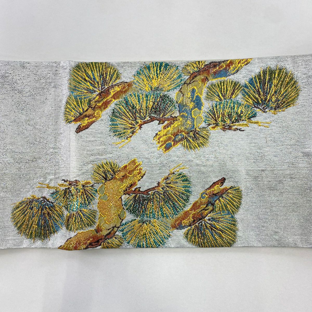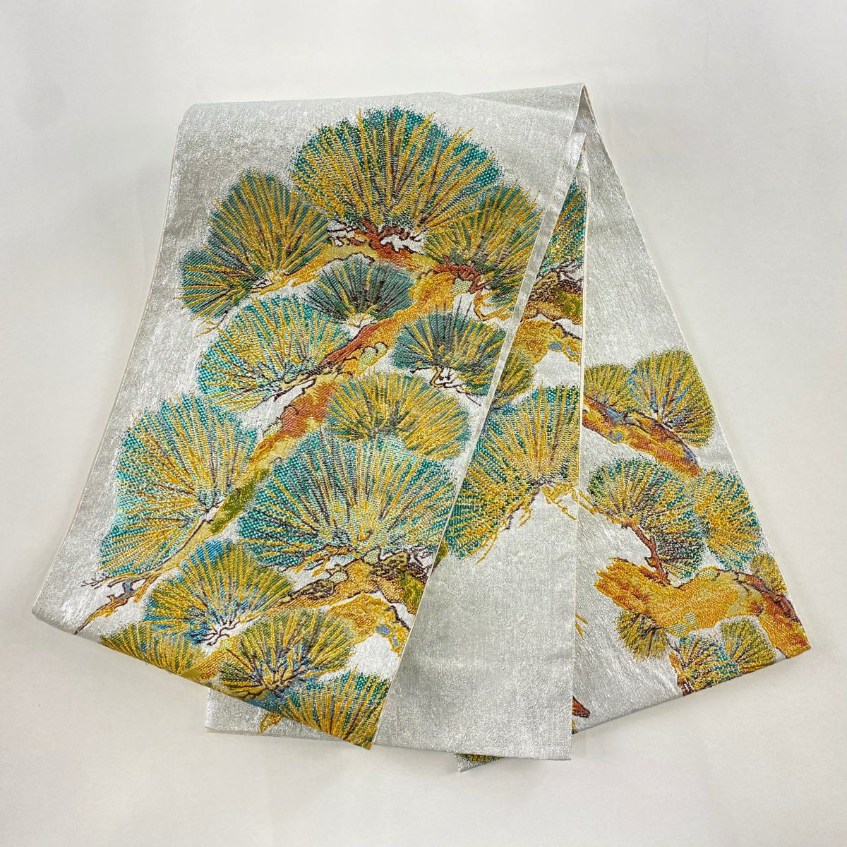 【美品】 袋帯 逸品 松 箔 銀色 お太鼓柄 正絹