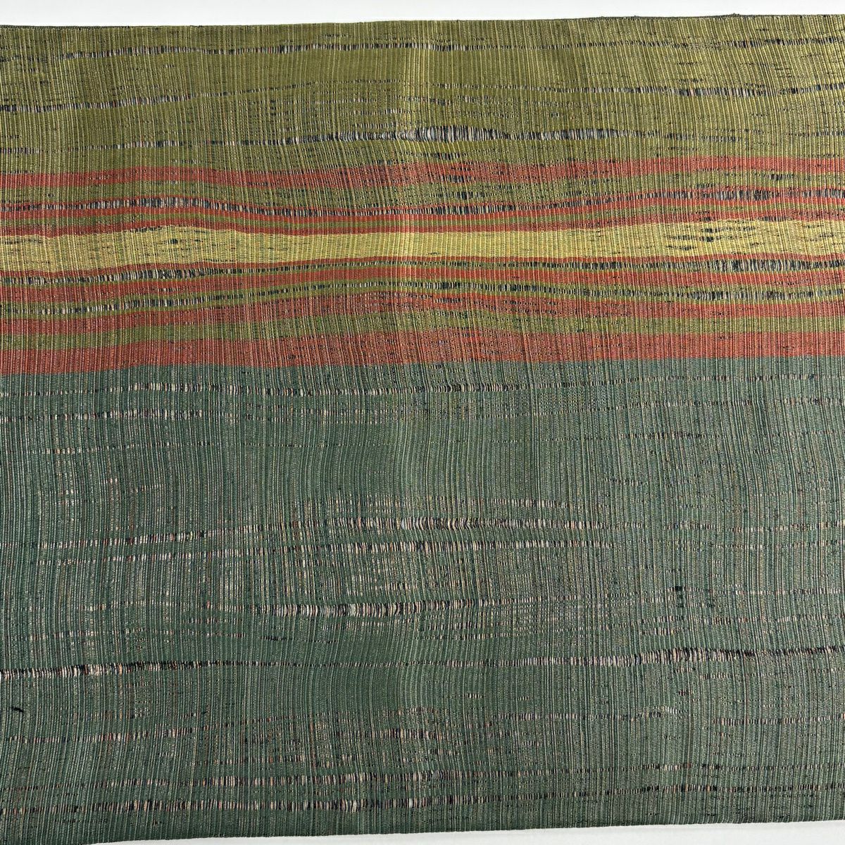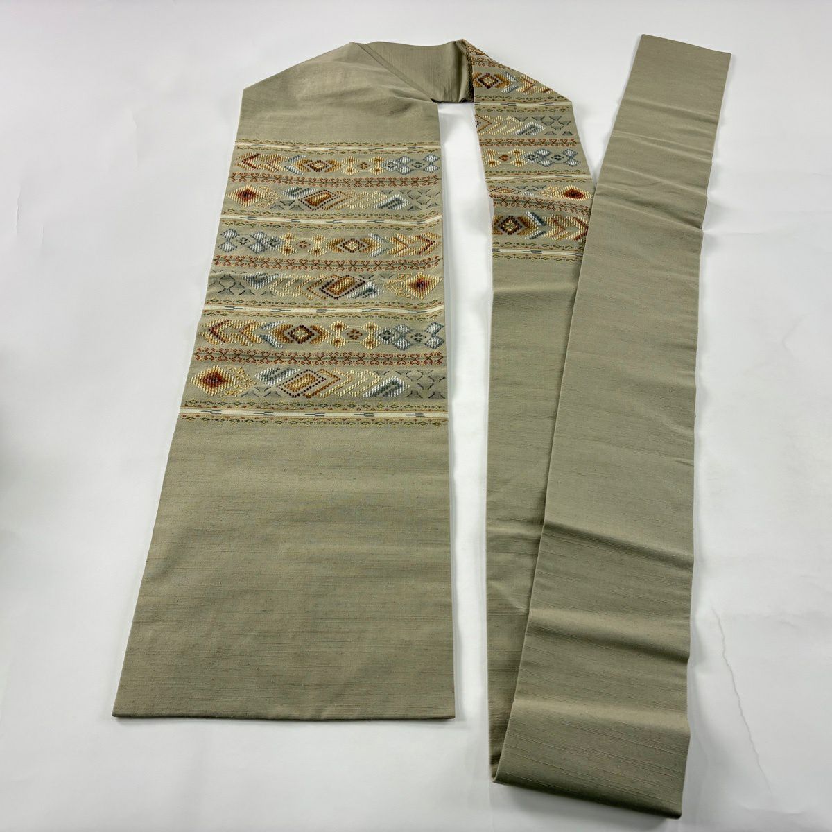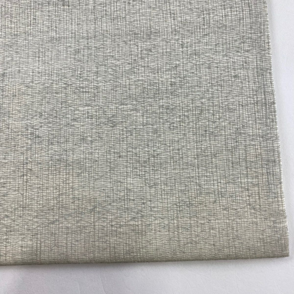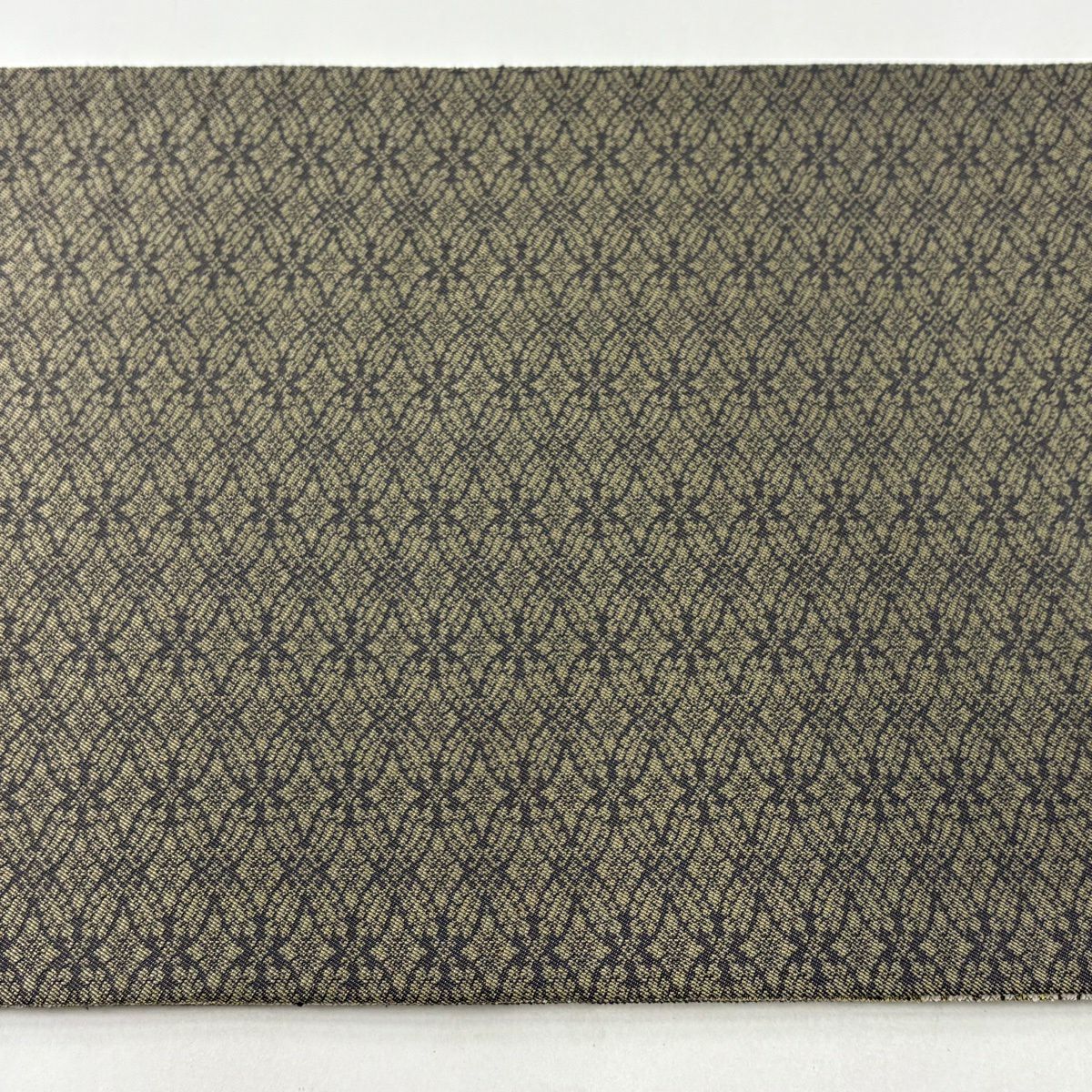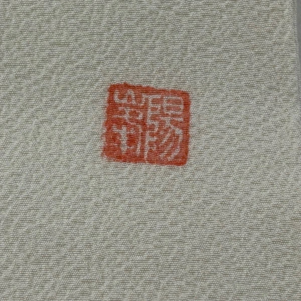 名古屋帯 逸品 紬地 幾何学模様 花織 灰緑 正絹
