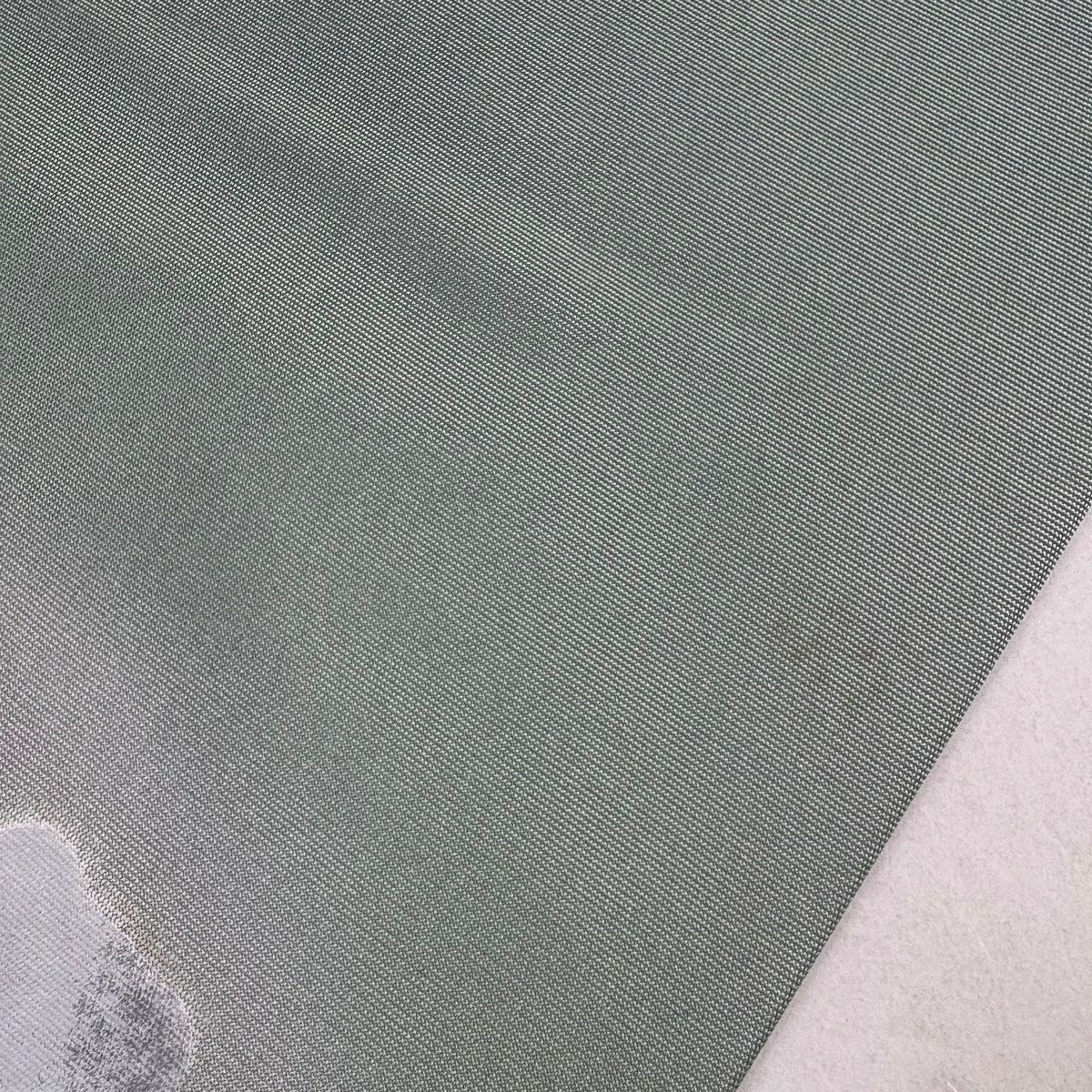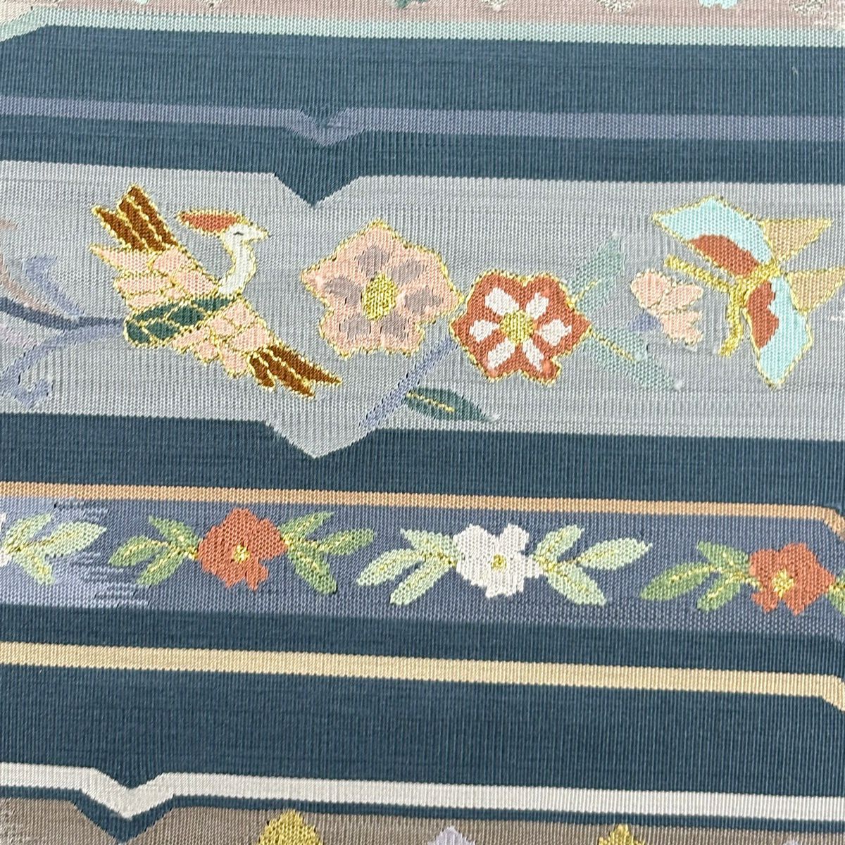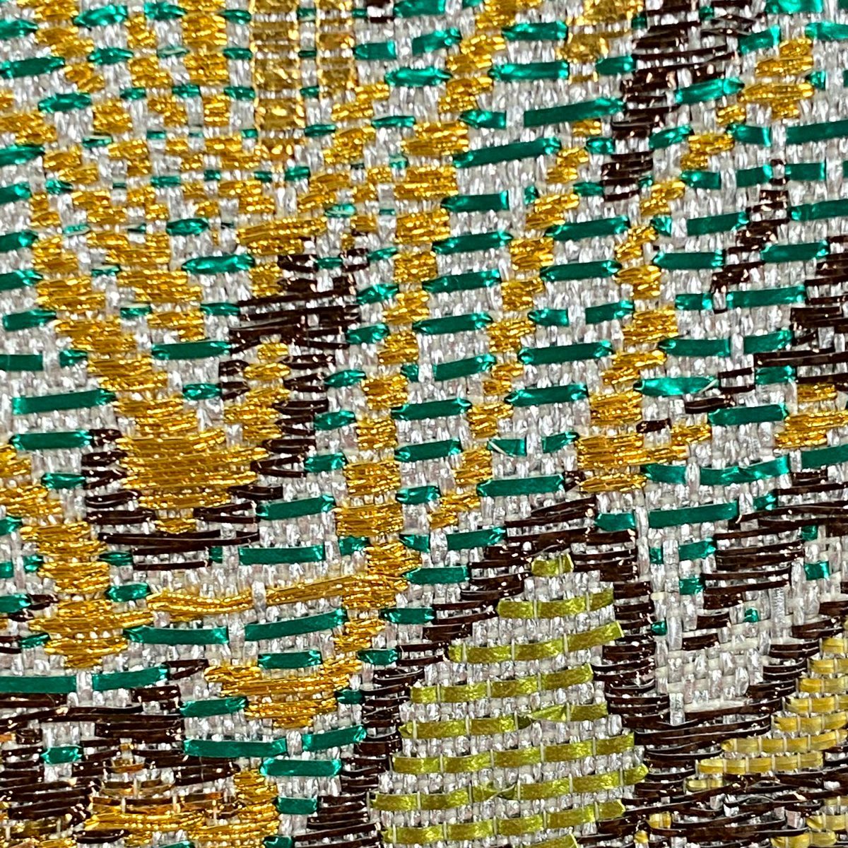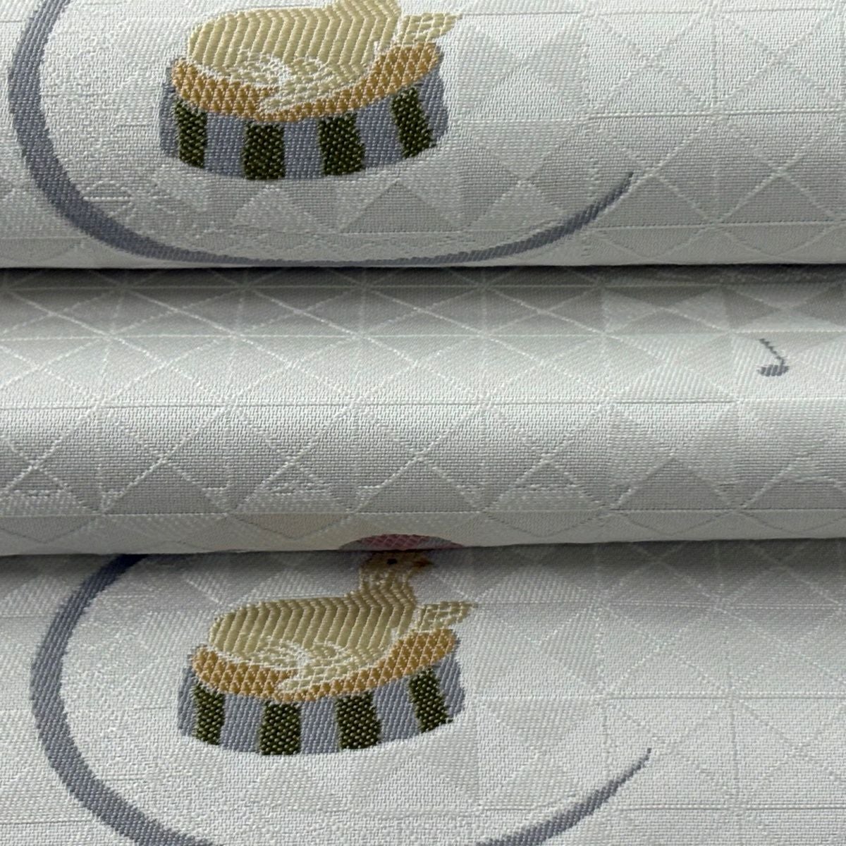 名古屋帯 逸品 紬地 幾何学模様 花織 灰緑 正絹