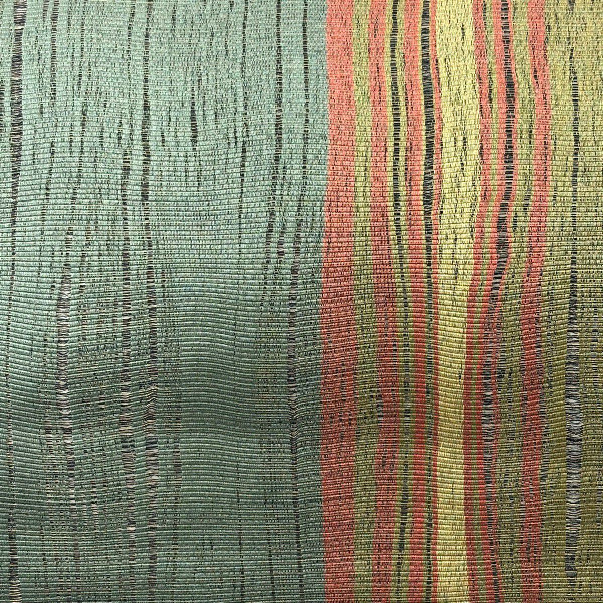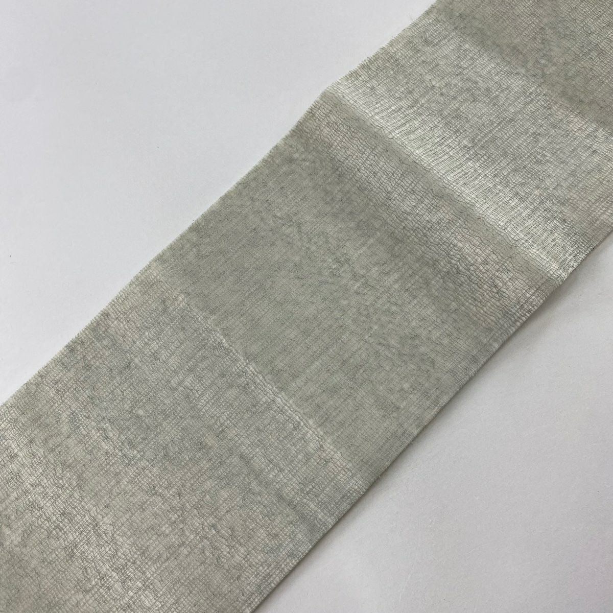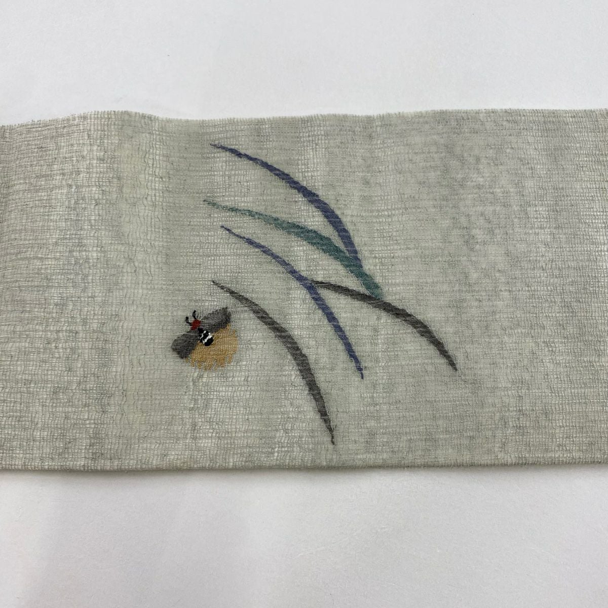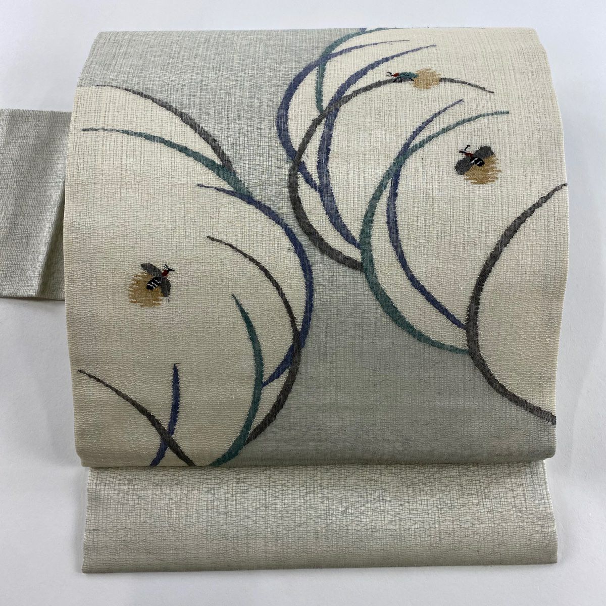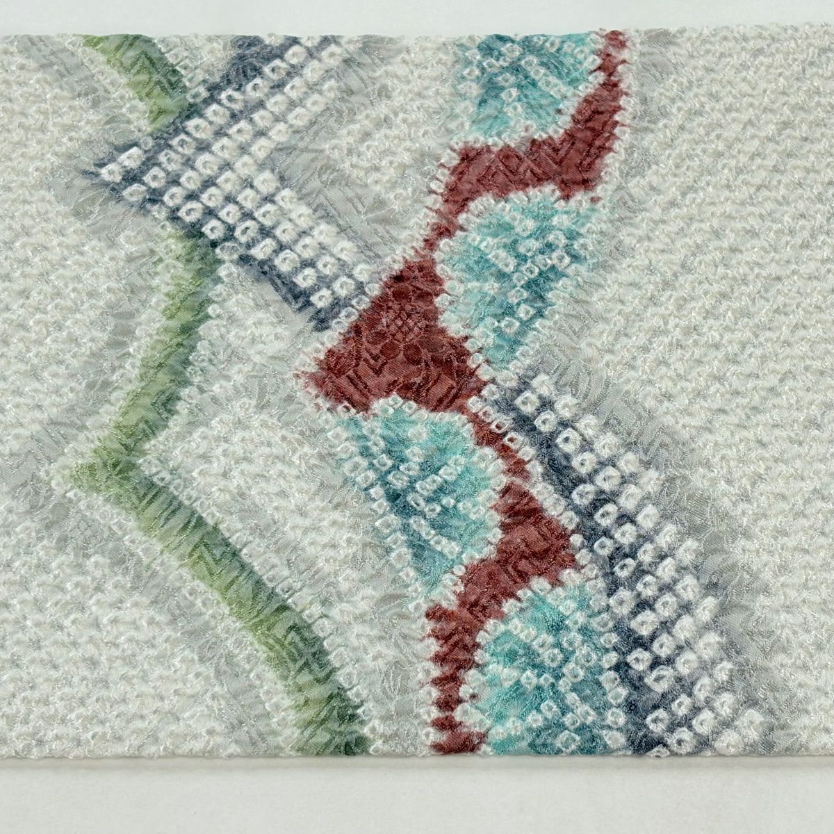 名古屋帯 逸品 紬地 幾何学模様 花織 灰緑 正絹