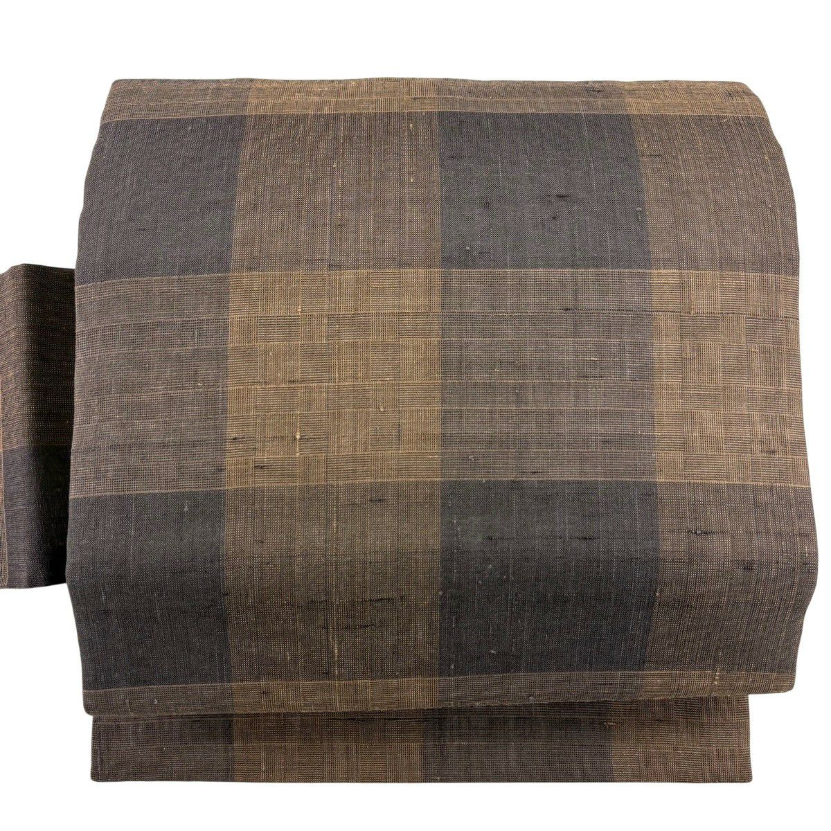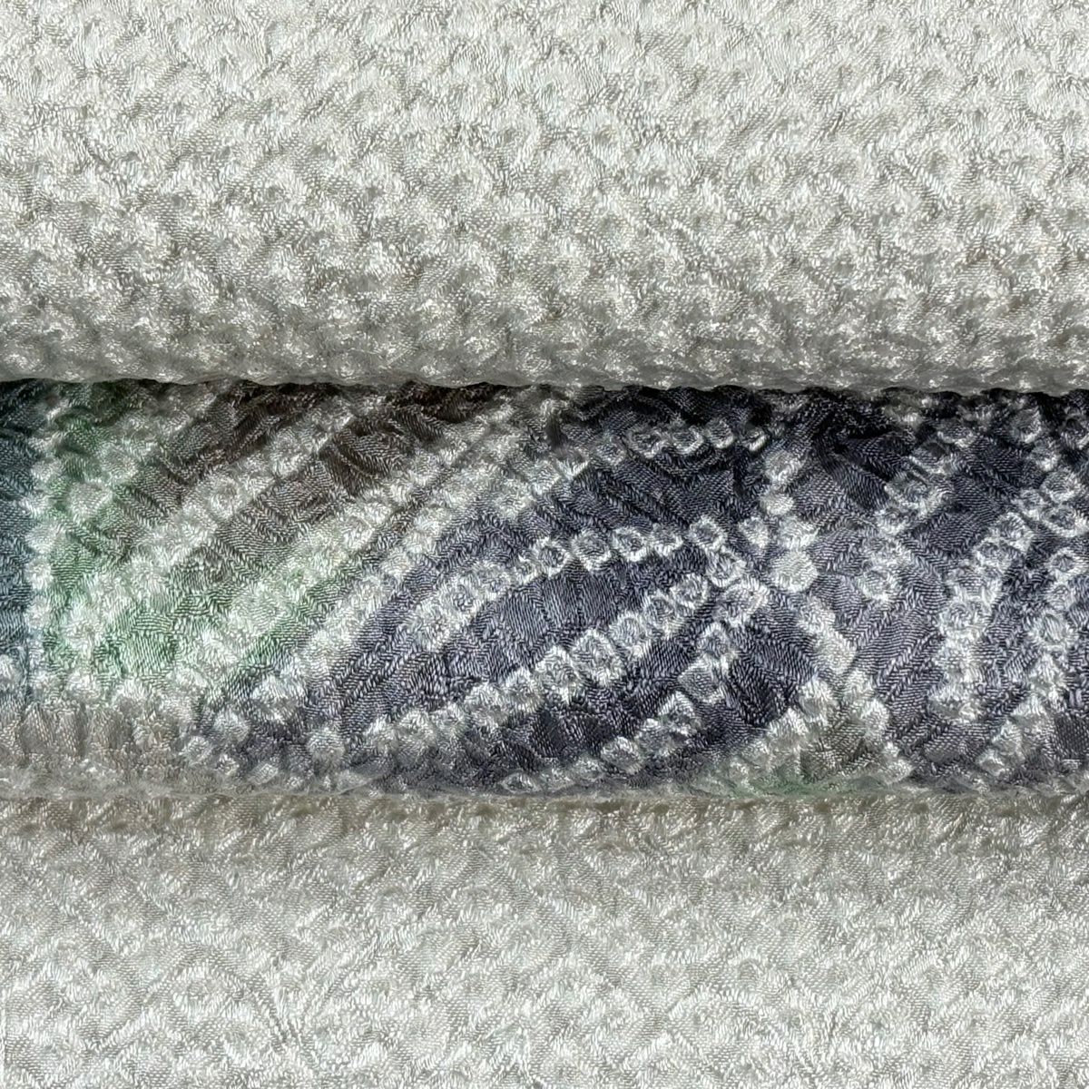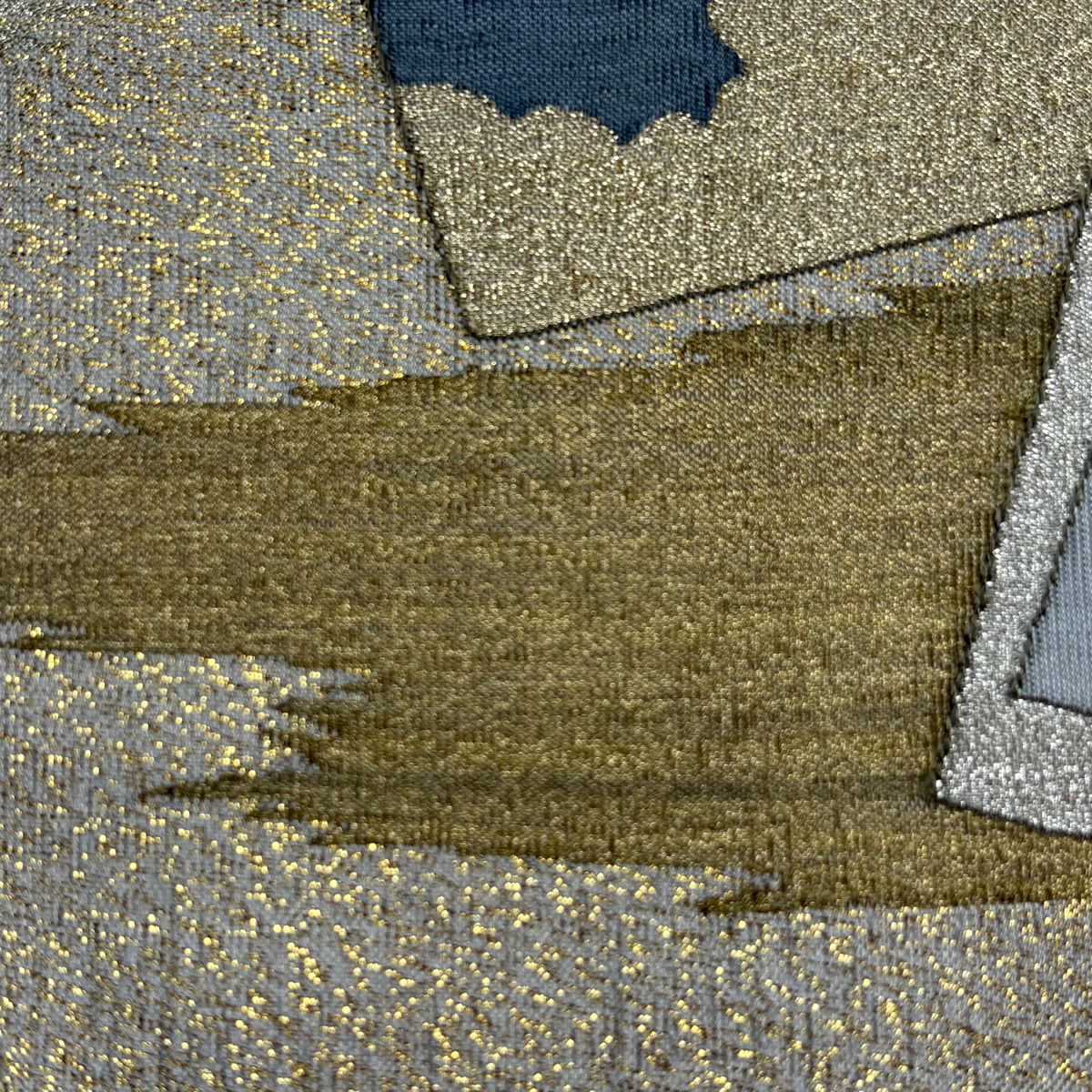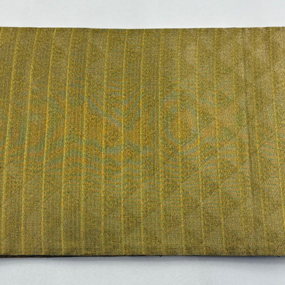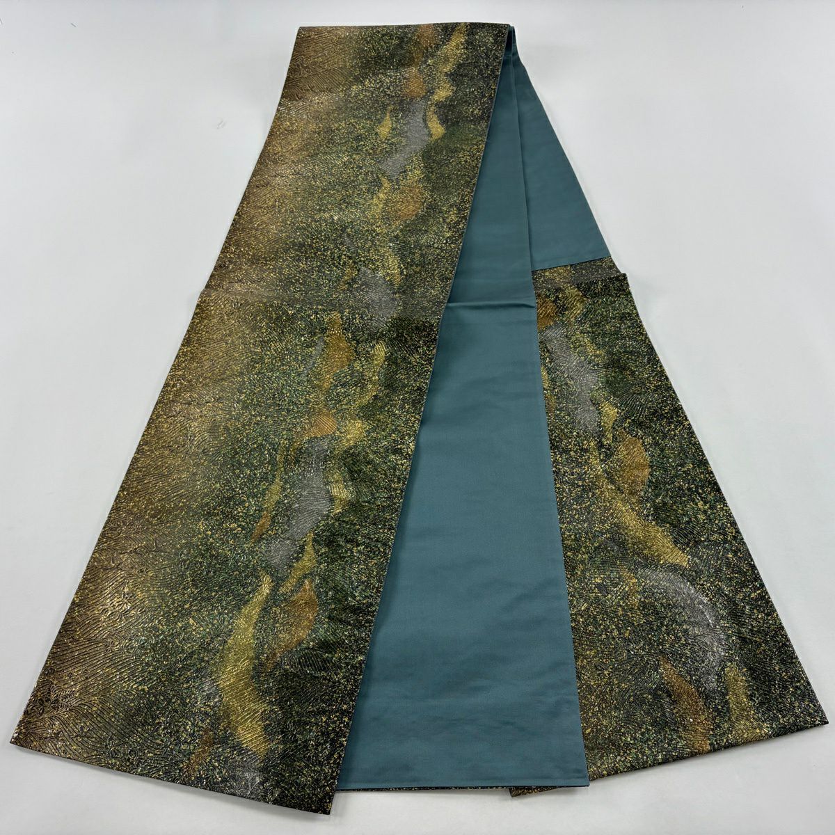 名古屋帯 逸品 紬地 幾何学模様 花織 灰緑 正絹