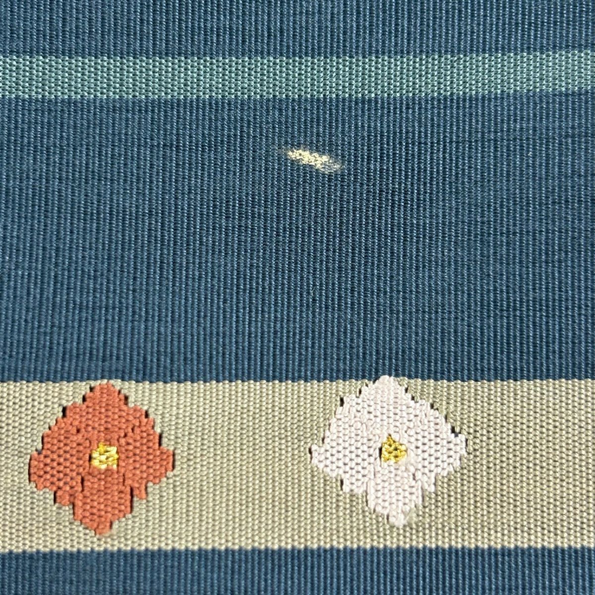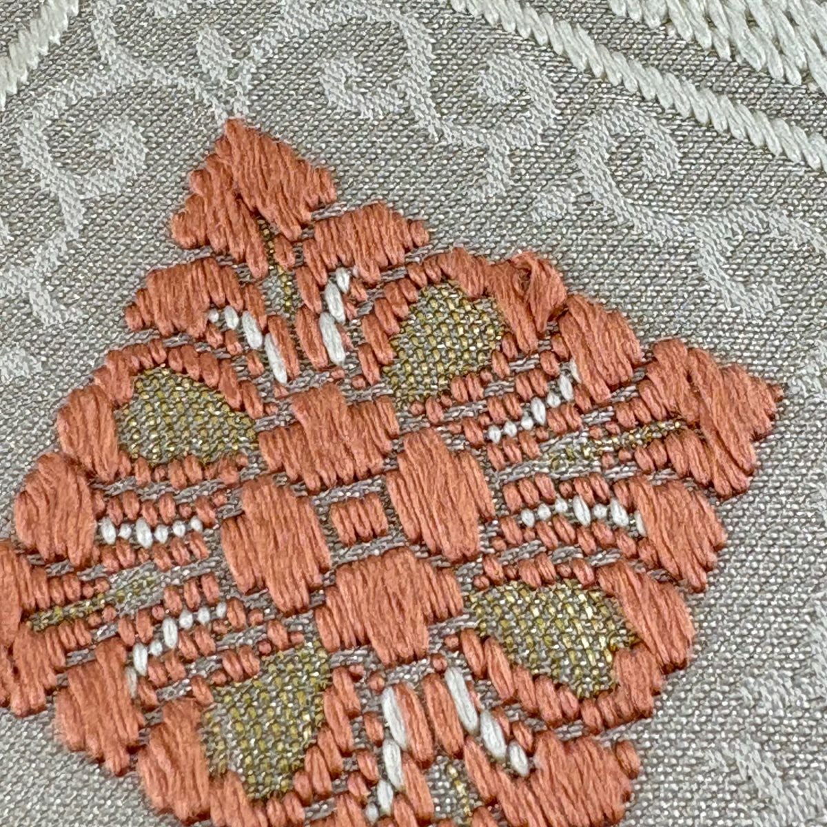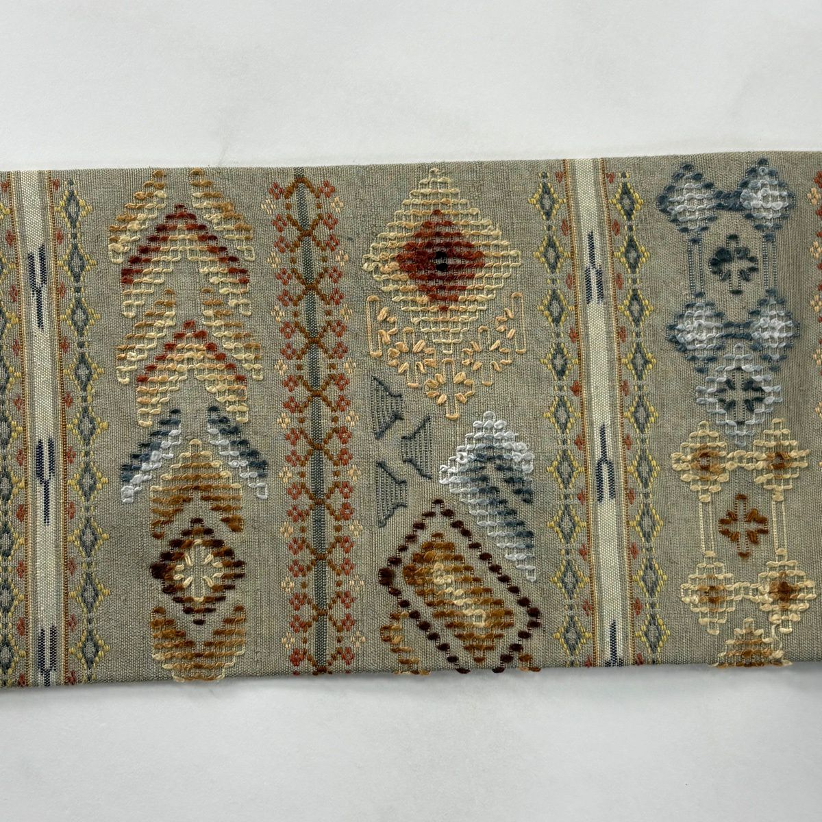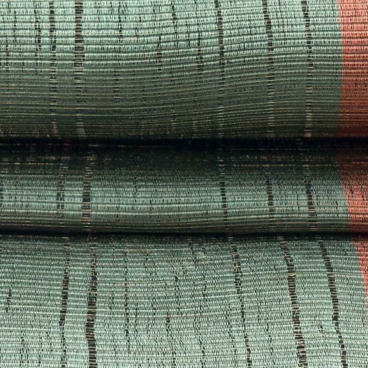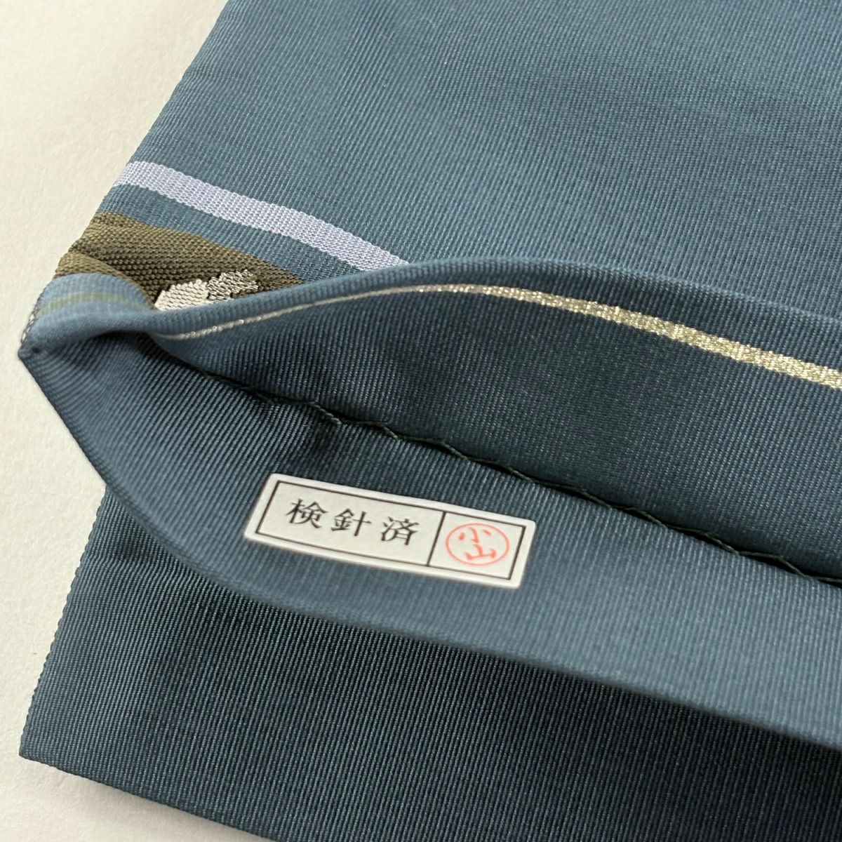 名古屋帯 逸品 紬地 幾何学模様 花織 灰緑 正絹