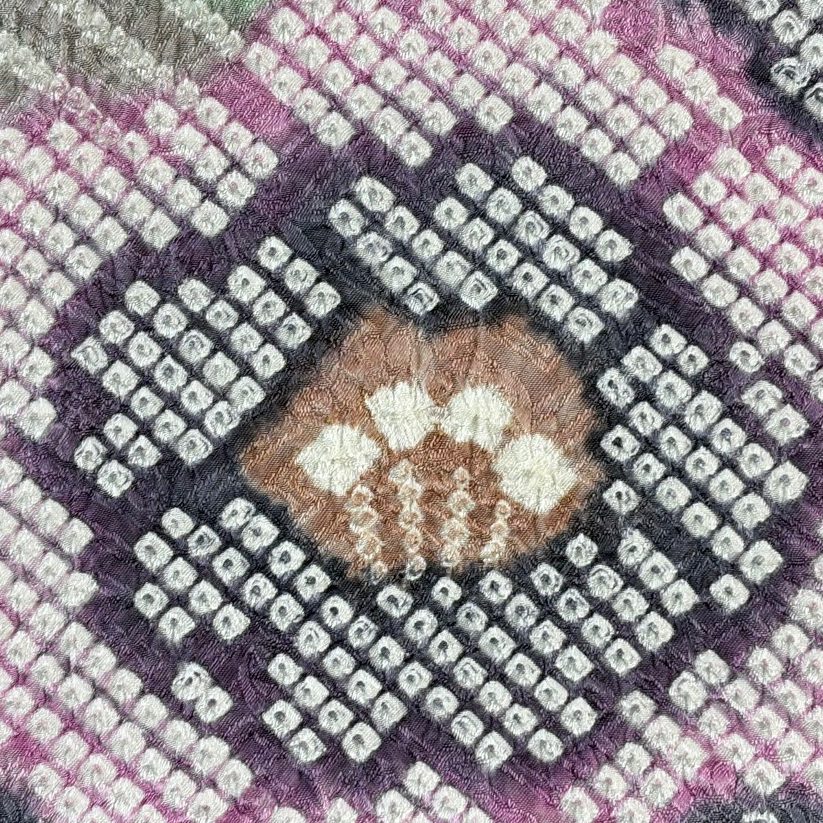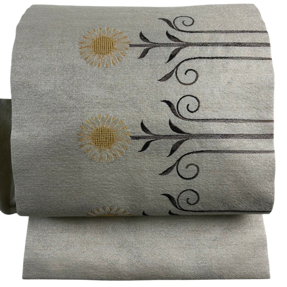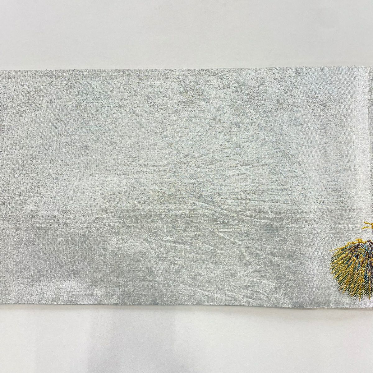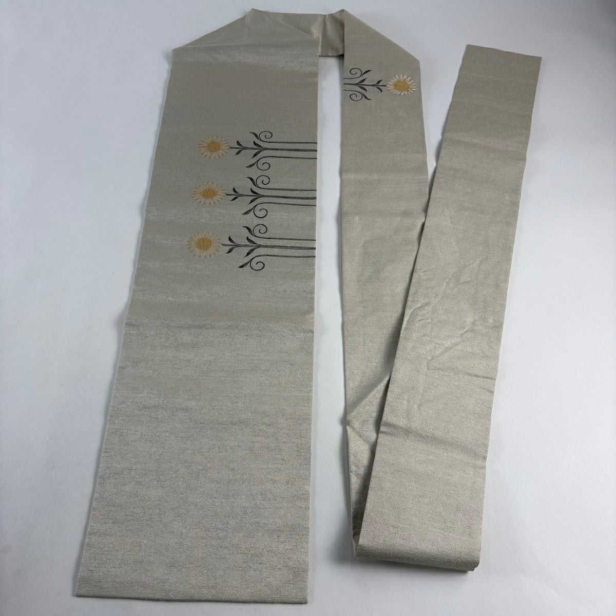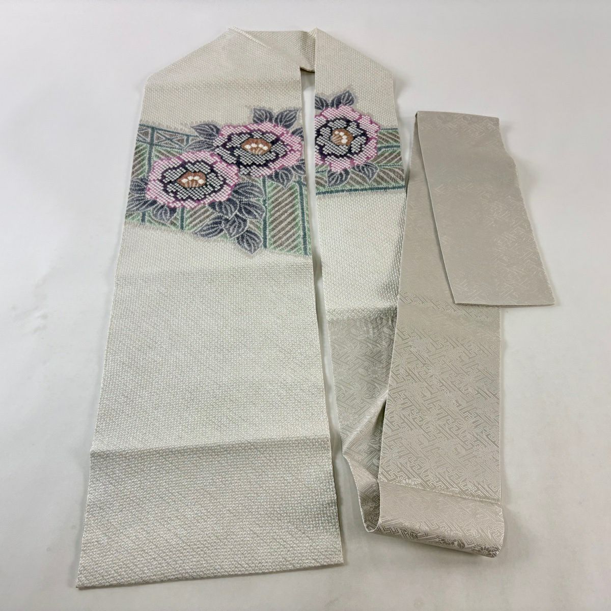 【美品】 名古屋帯 逸品 鬘帯 菊 絞り 灰白 正絹
