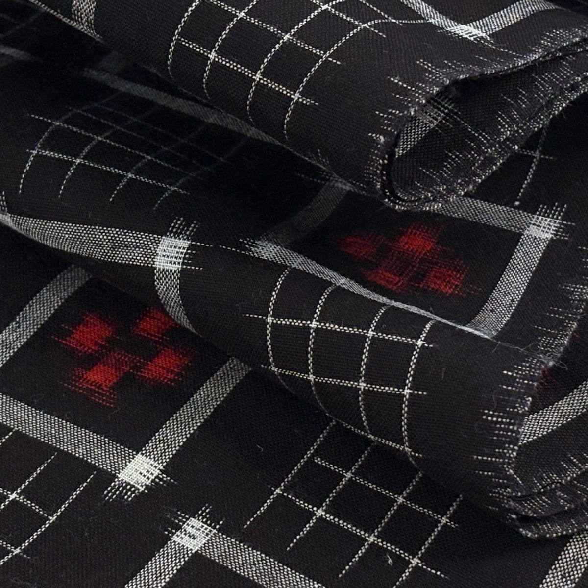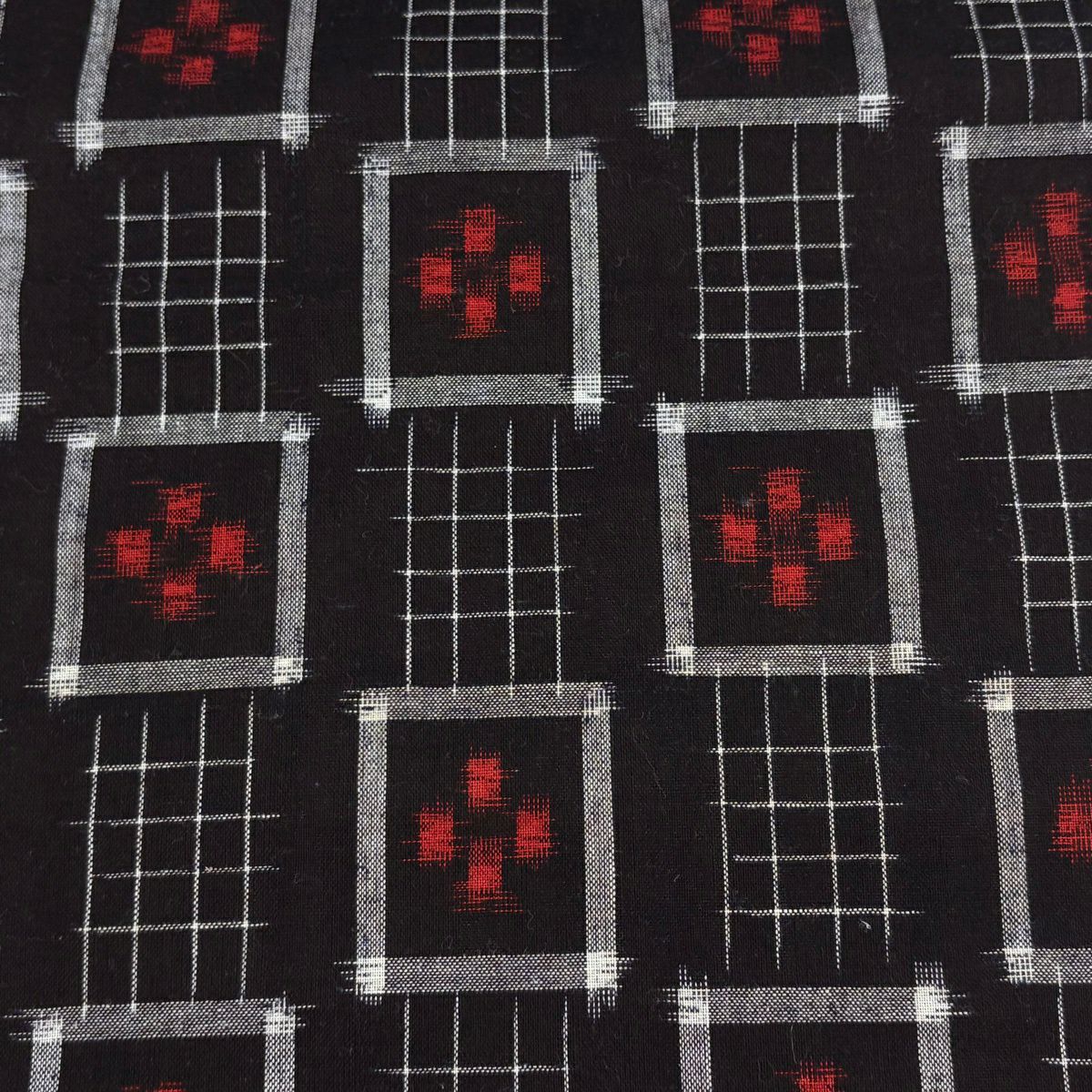 反物 逸品 久留米かすり 証紙 幾何学 焦茶色 綿