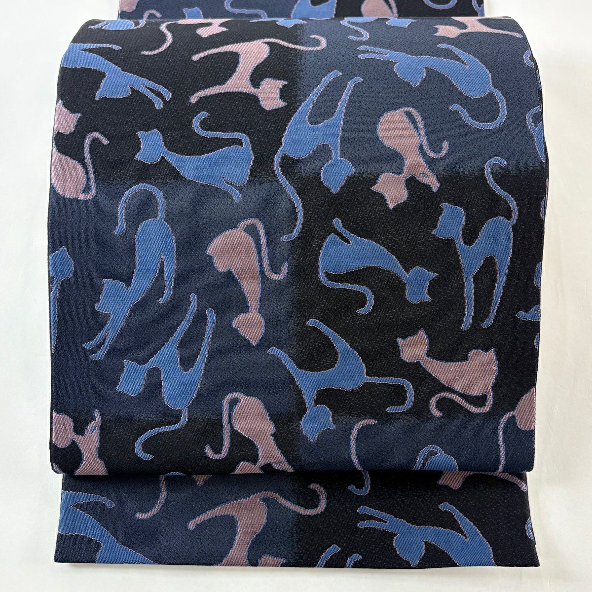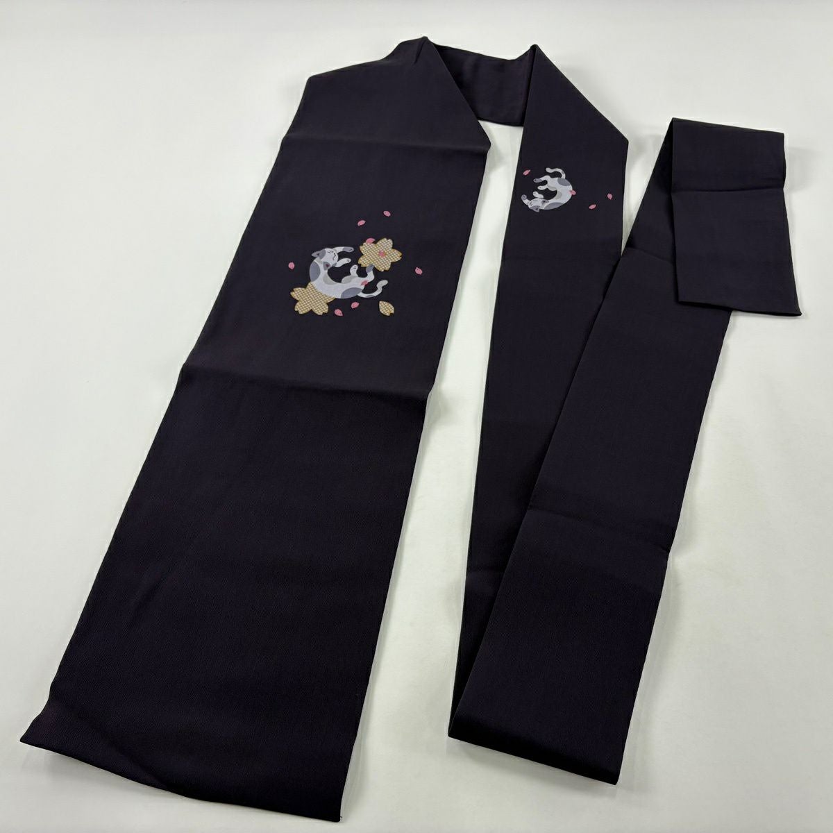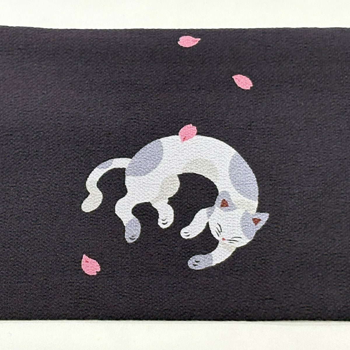 【美品】 名古屋帯 逸品 猫 桜 縮緬 濃紫 正絹