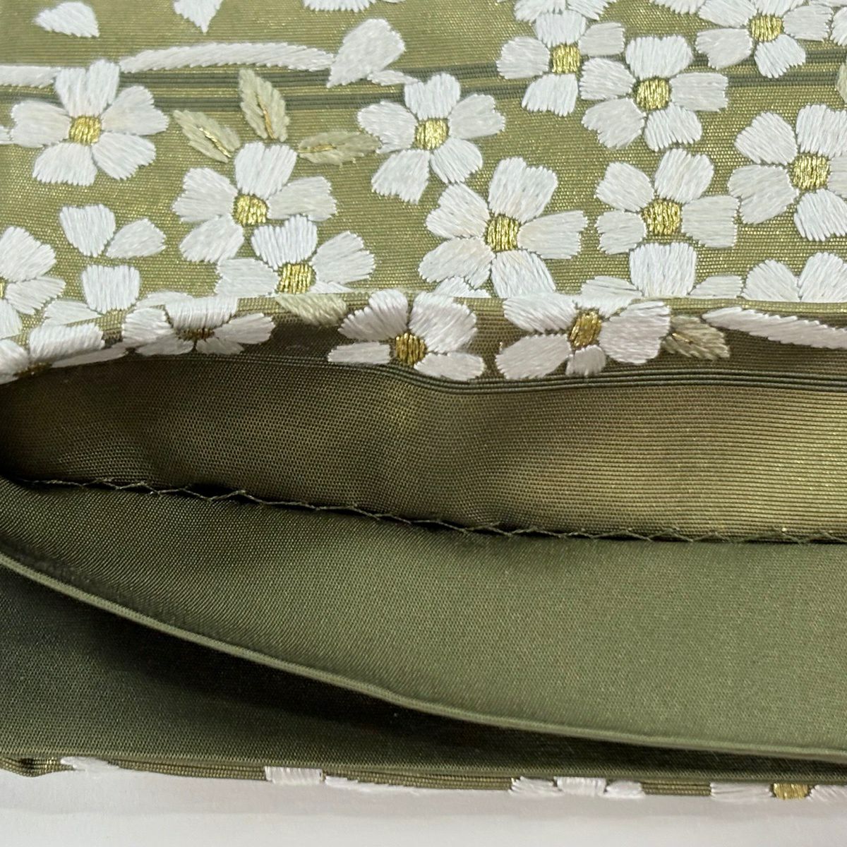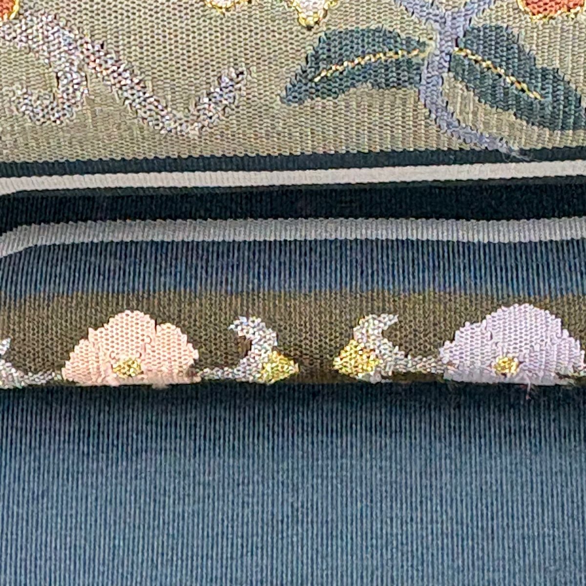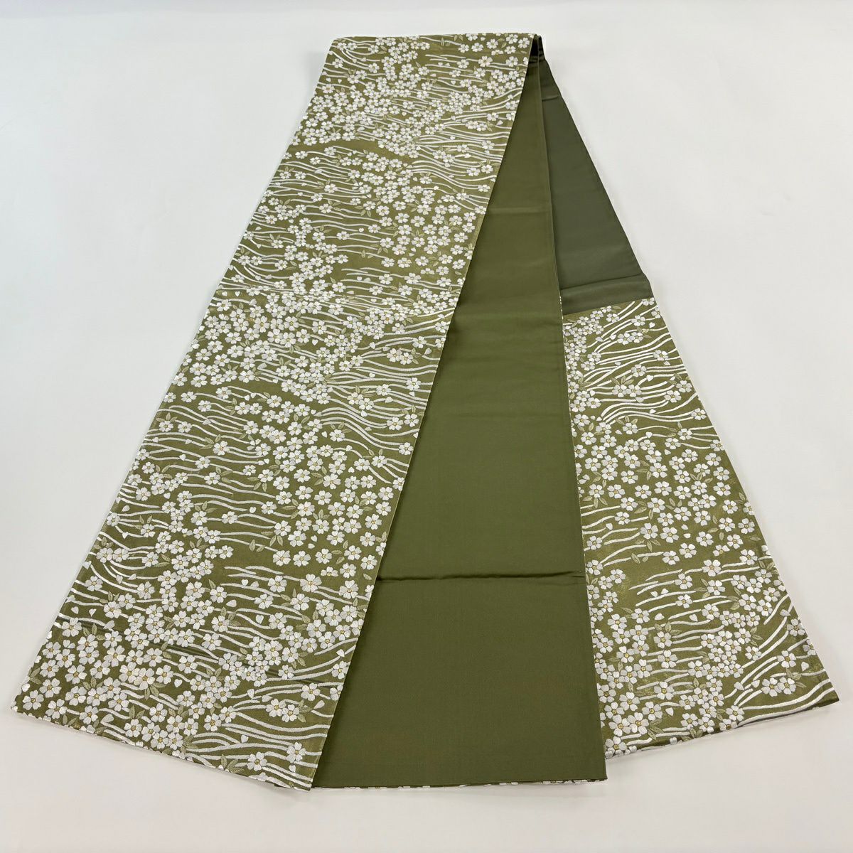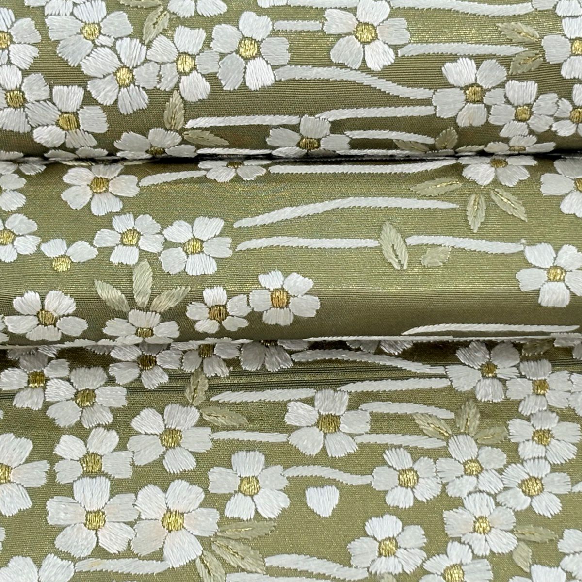 袋帯 逸品 桜 流水 金糸 刺繍 鶯色 六通 正絹