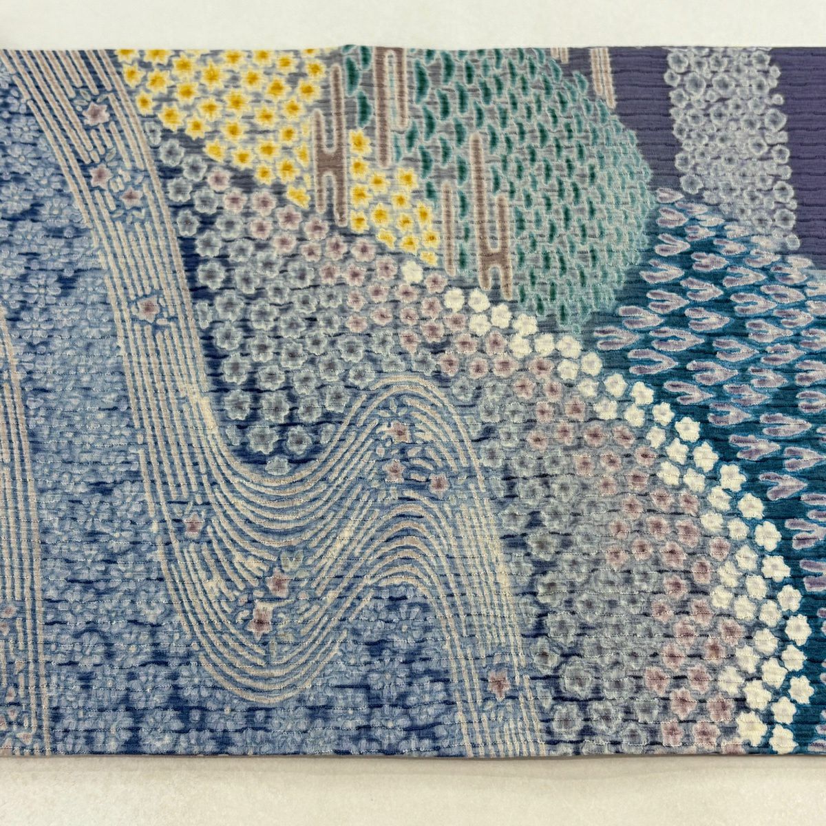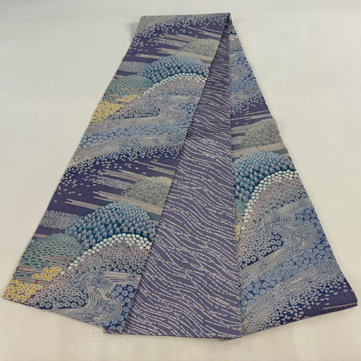 【美品】 袋帯 逸品 山並み 流水 紫 全通 正絹
