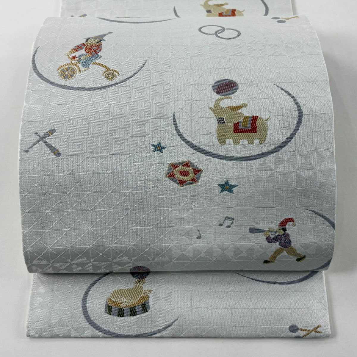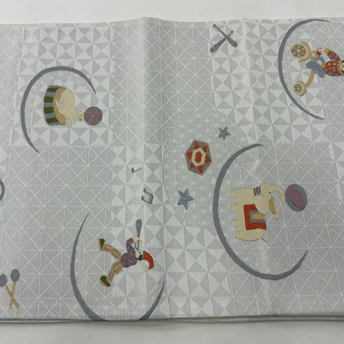 開き名古屋帯 逸品 ピエロ サーカス 灰色 正絹