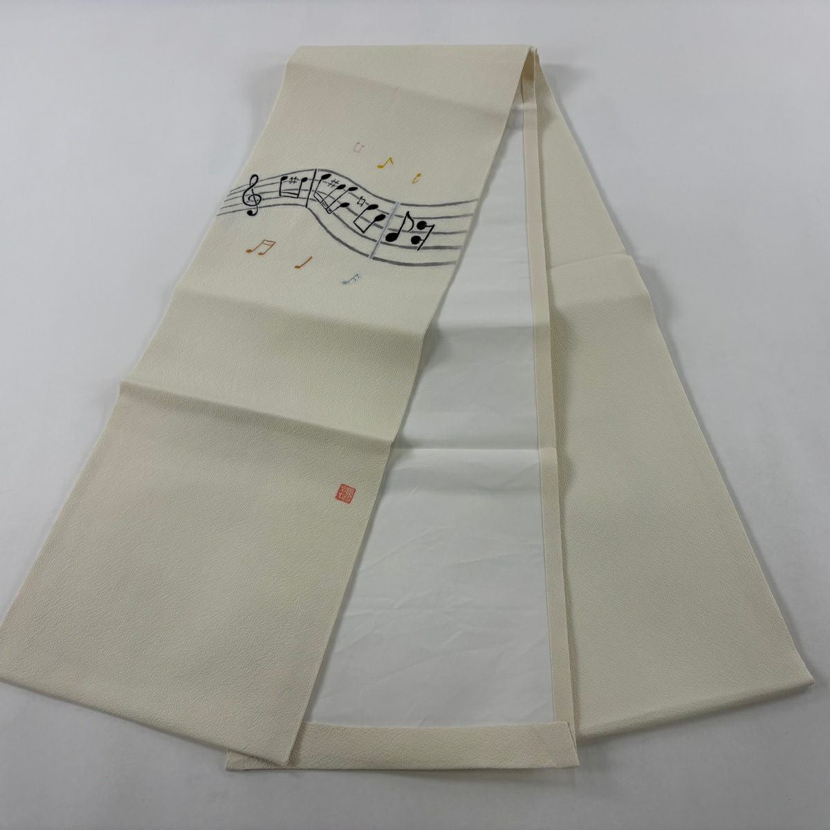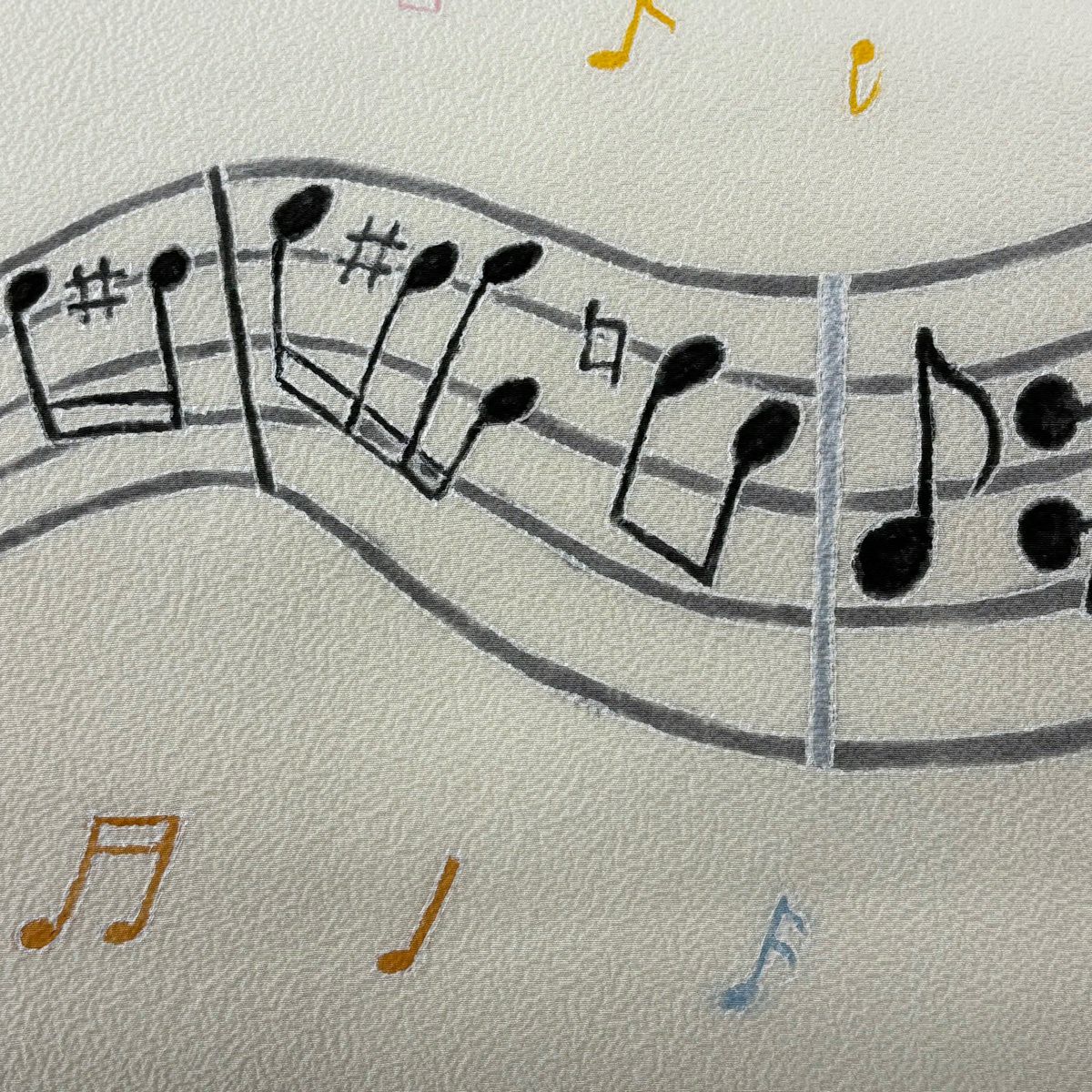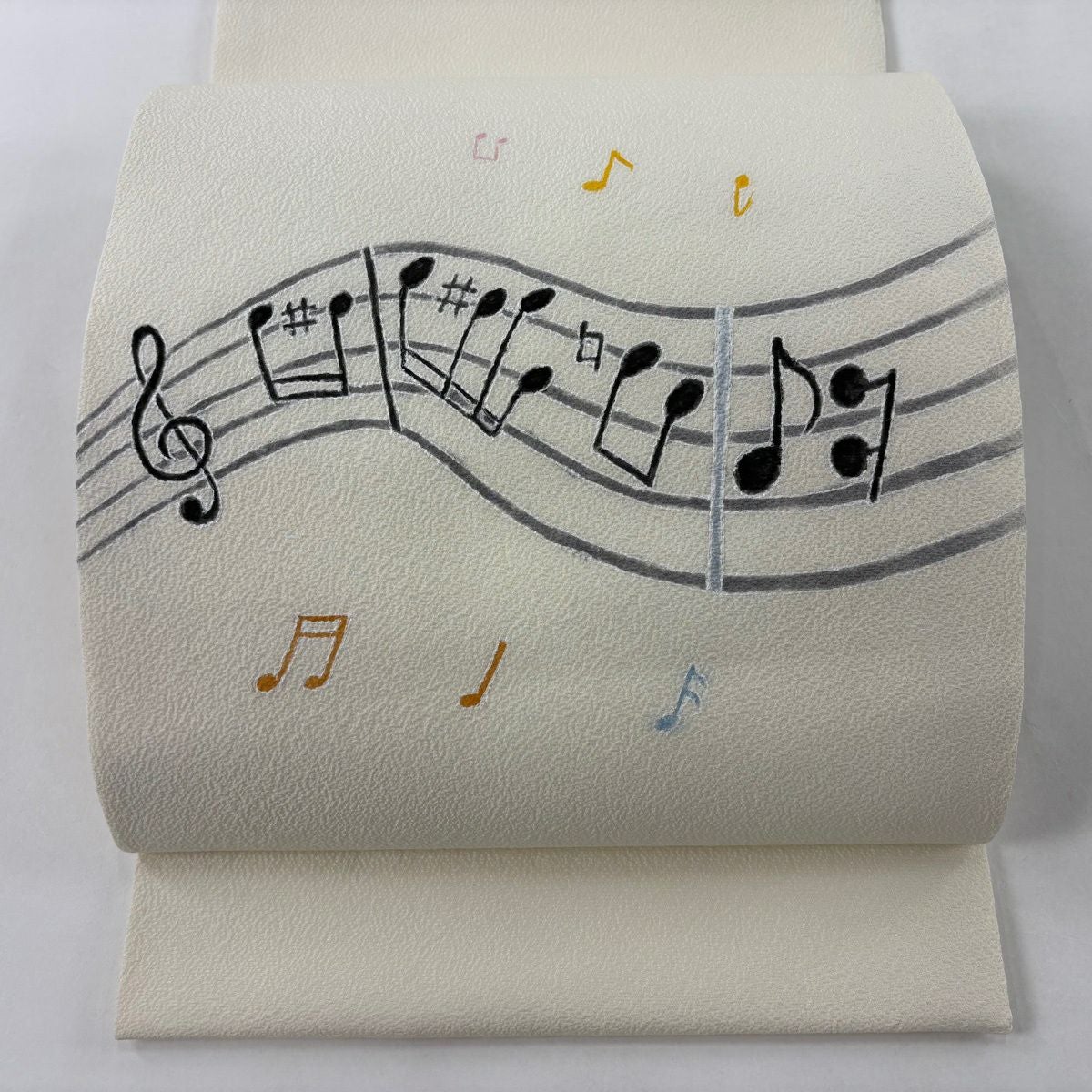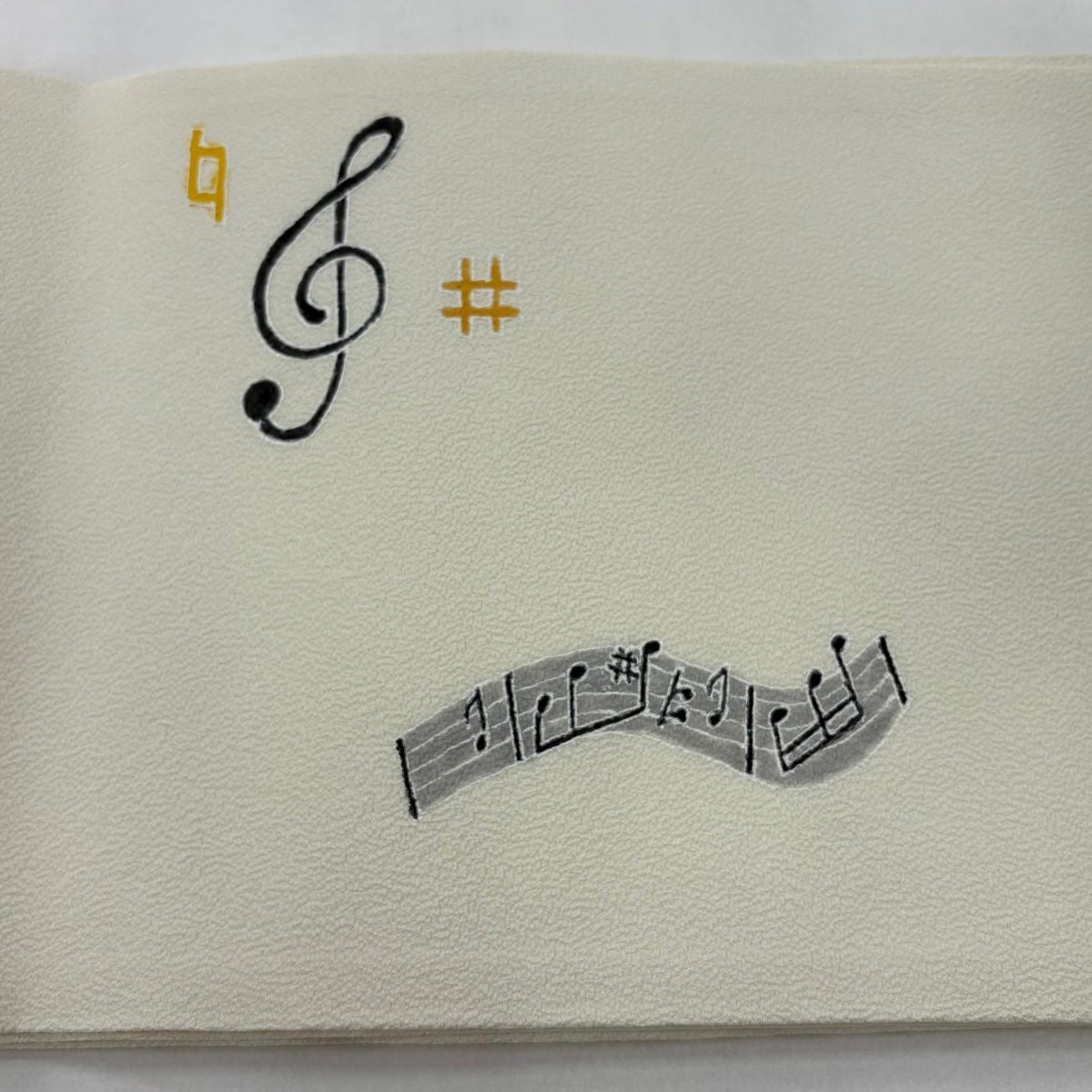 【美品】 開き名古屋帯 逸品 音符 クリーム 正絹