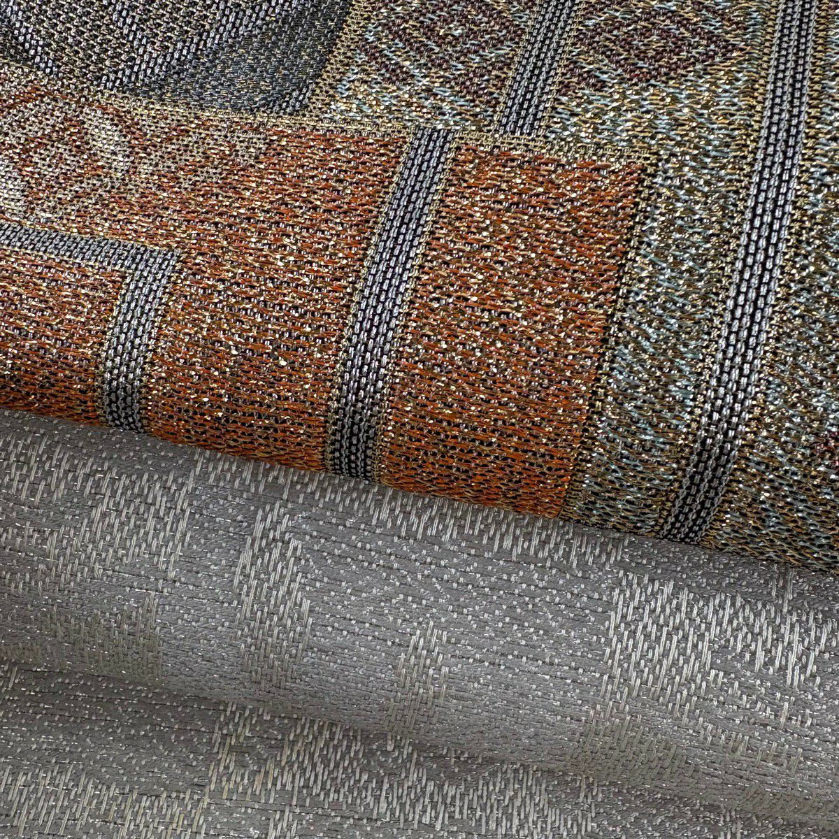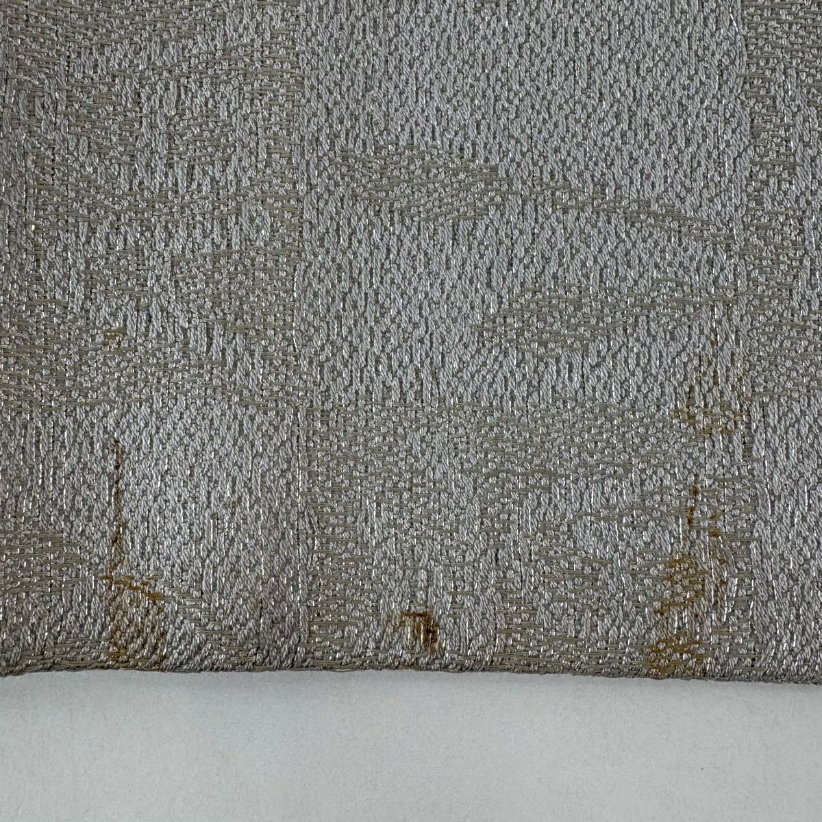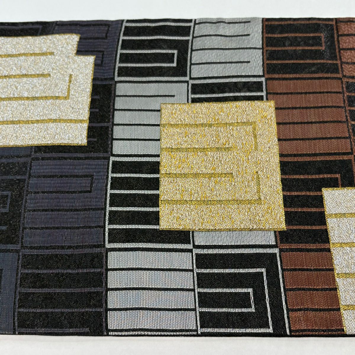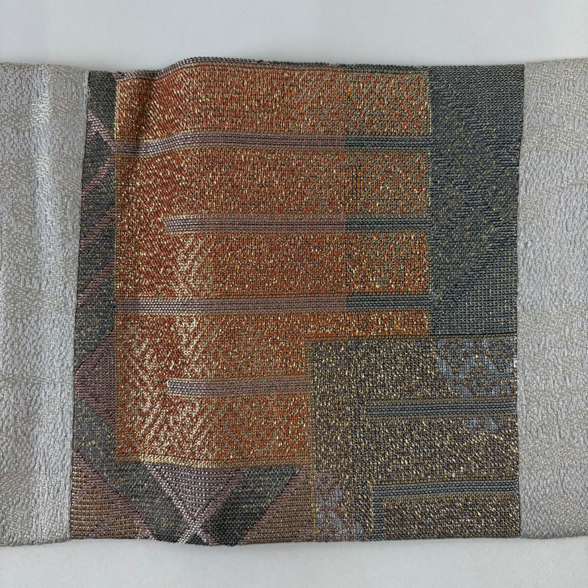 名古屋帯 逸品 源氏香 市松 銀糸 箔 灰色 正絹
