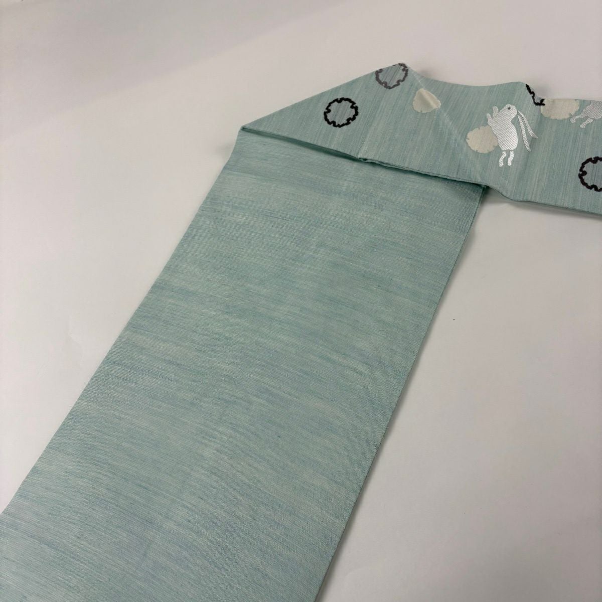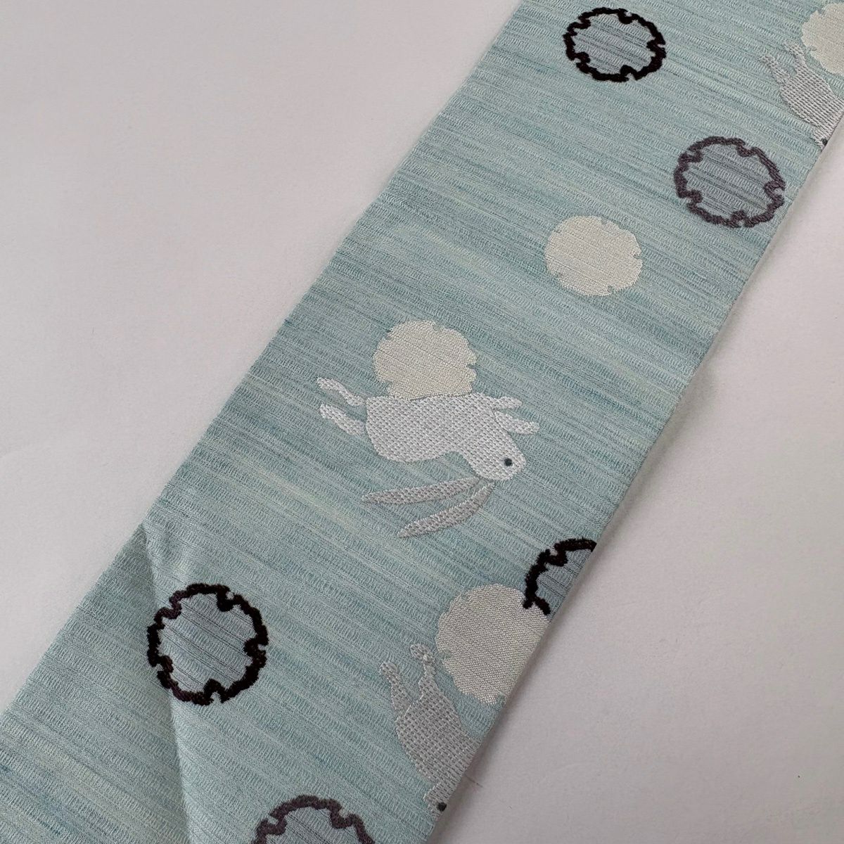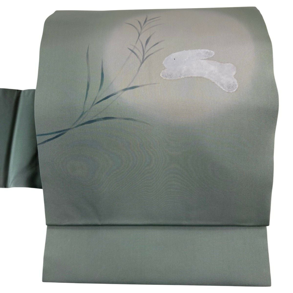 【美品】 名古屋帯 逸品 うさぎ 雪輪 水色 正絹