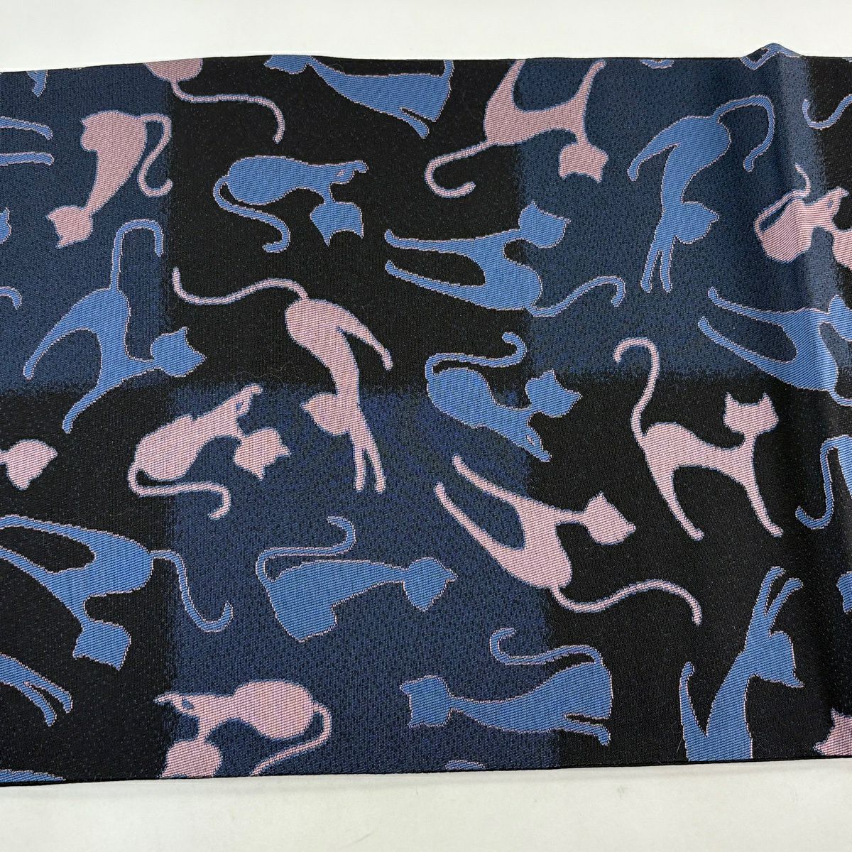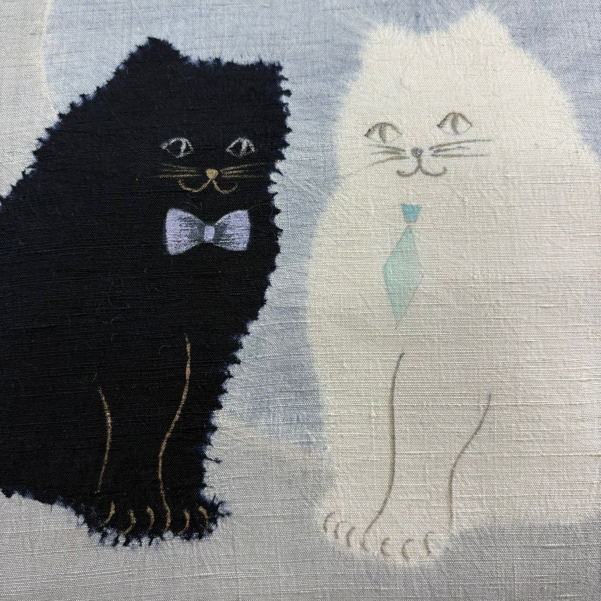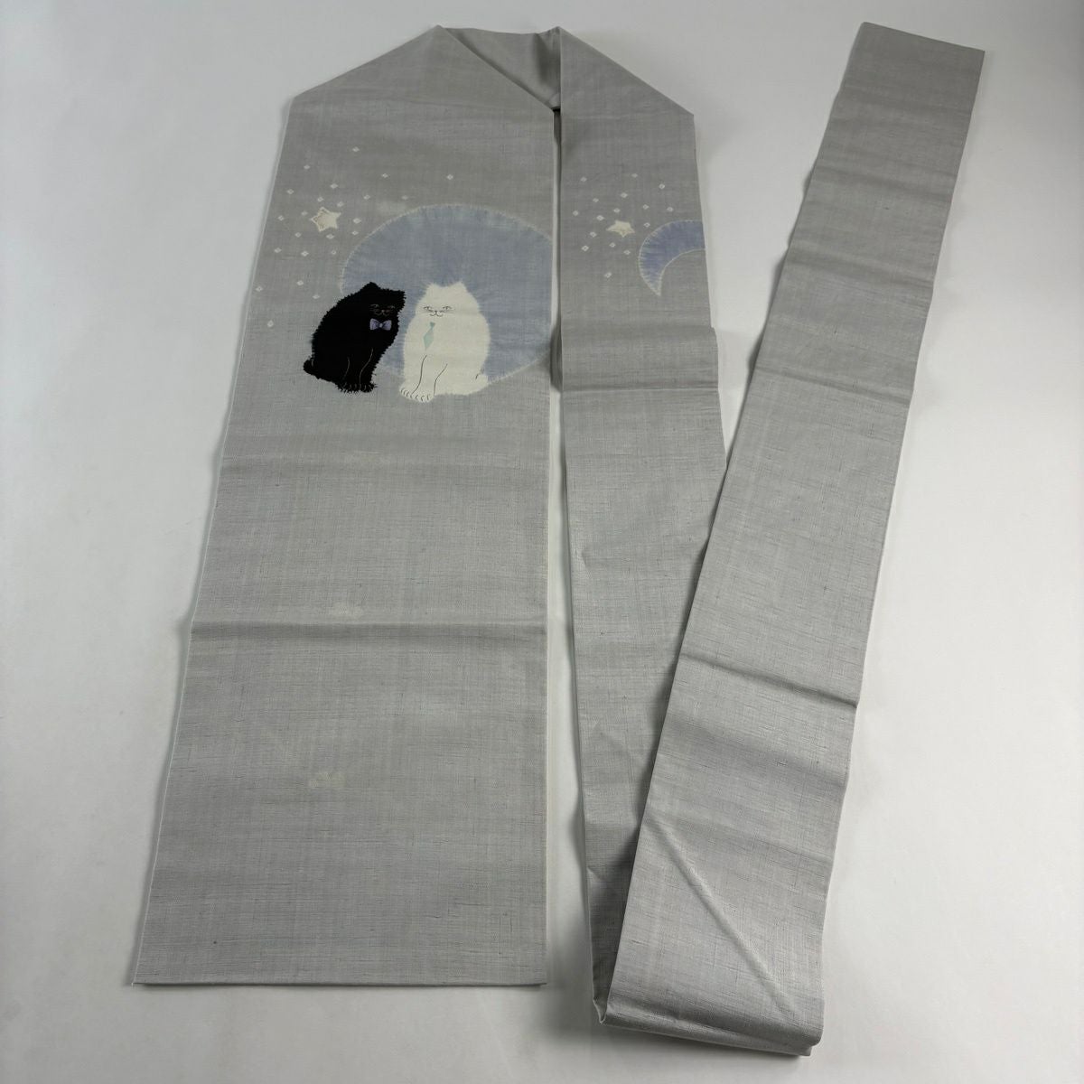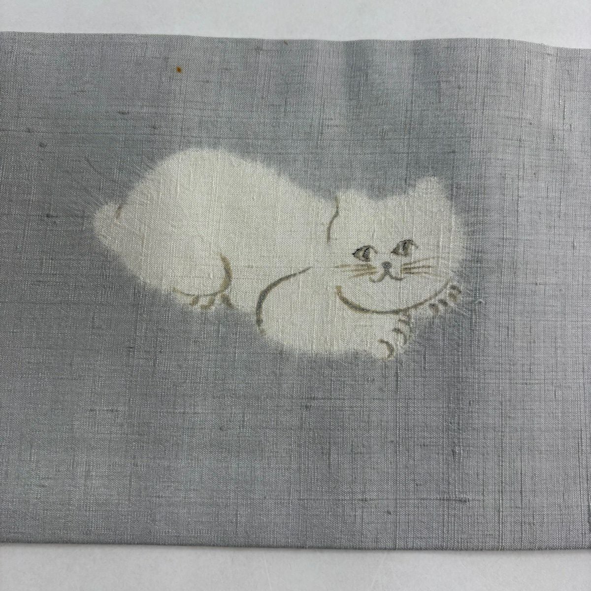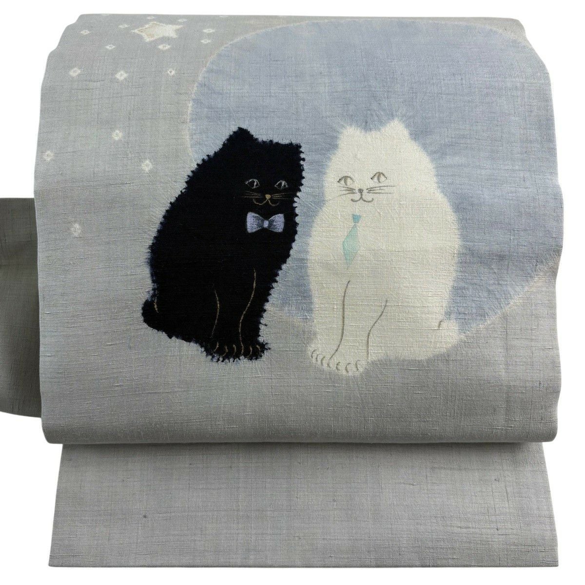 名古屋帯 逸品 猫 星 絞り 金銀彩 青灰色 正絹