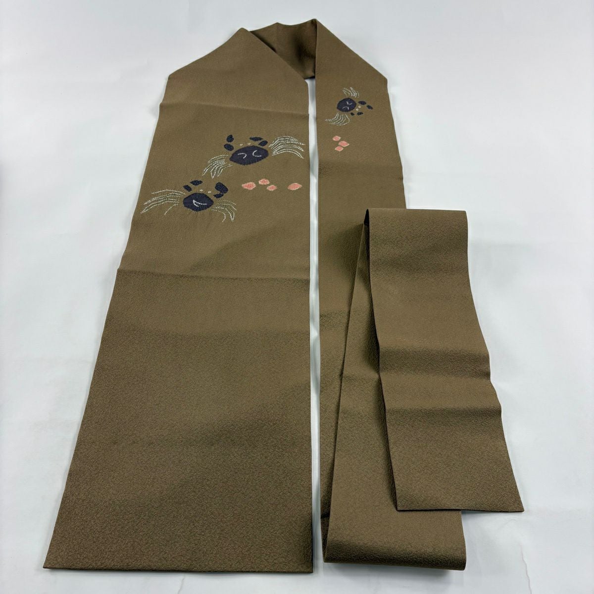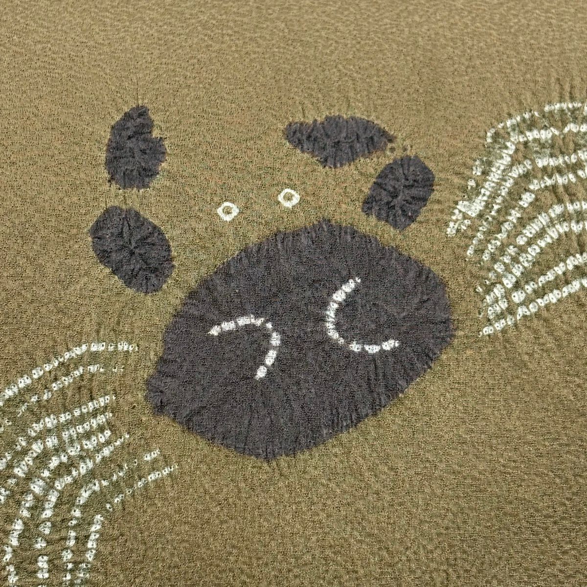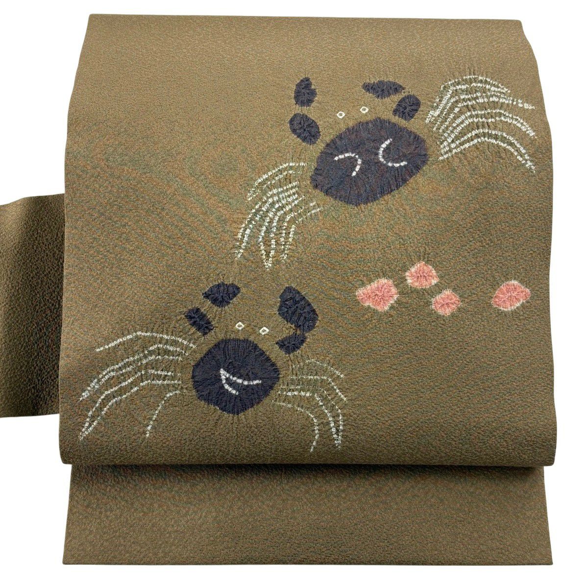 【美品】 名古屋帯 逸品 かに 絞り 茶緑色 正絹