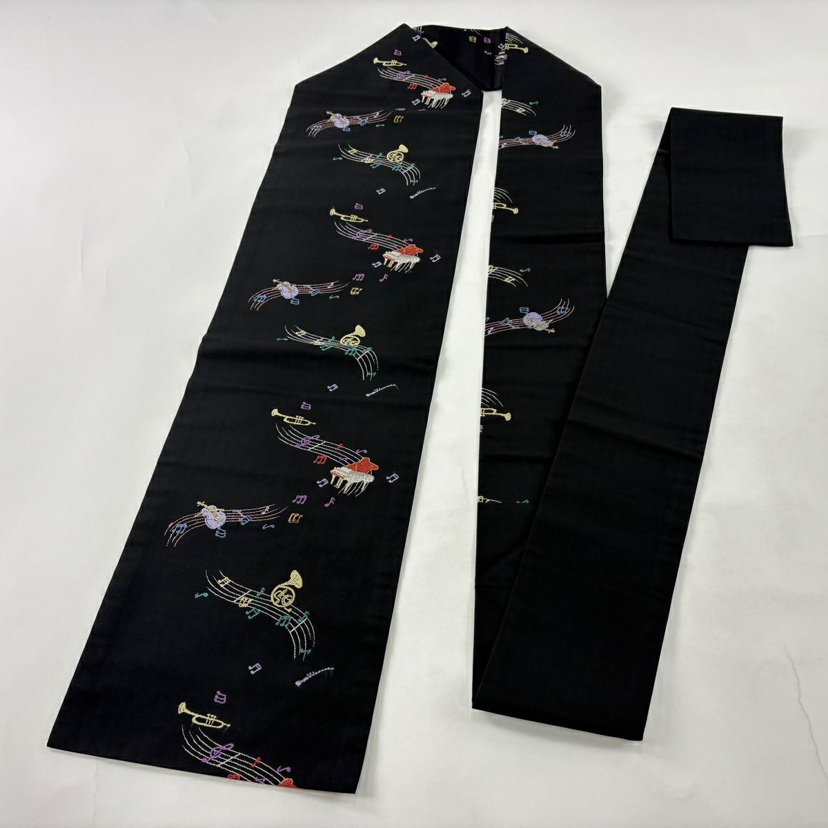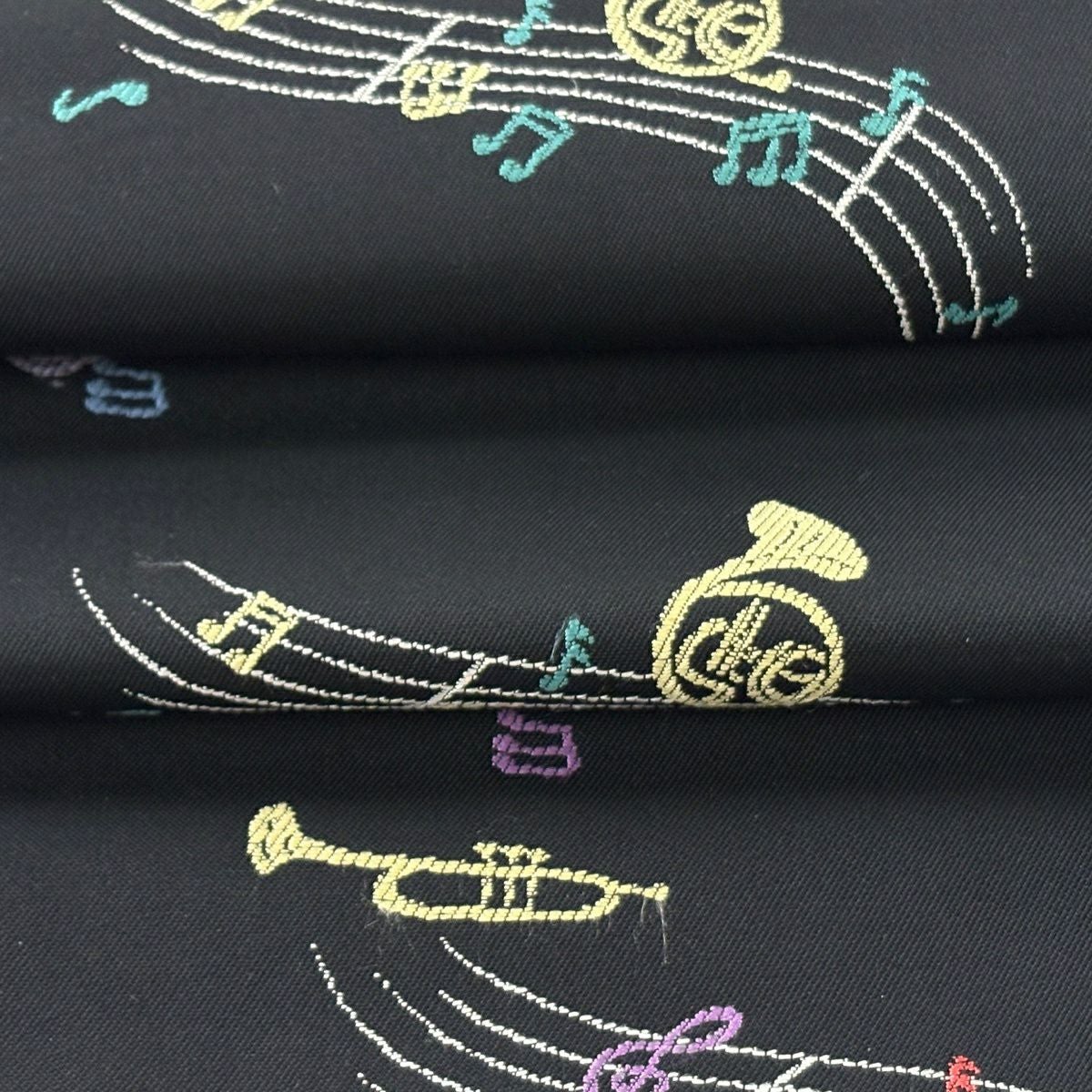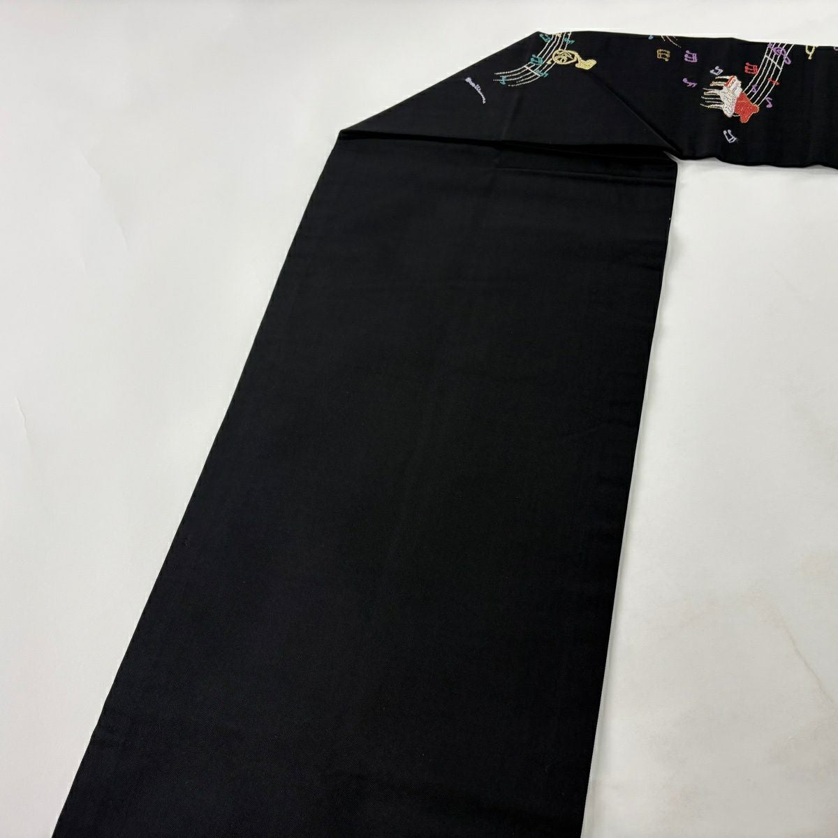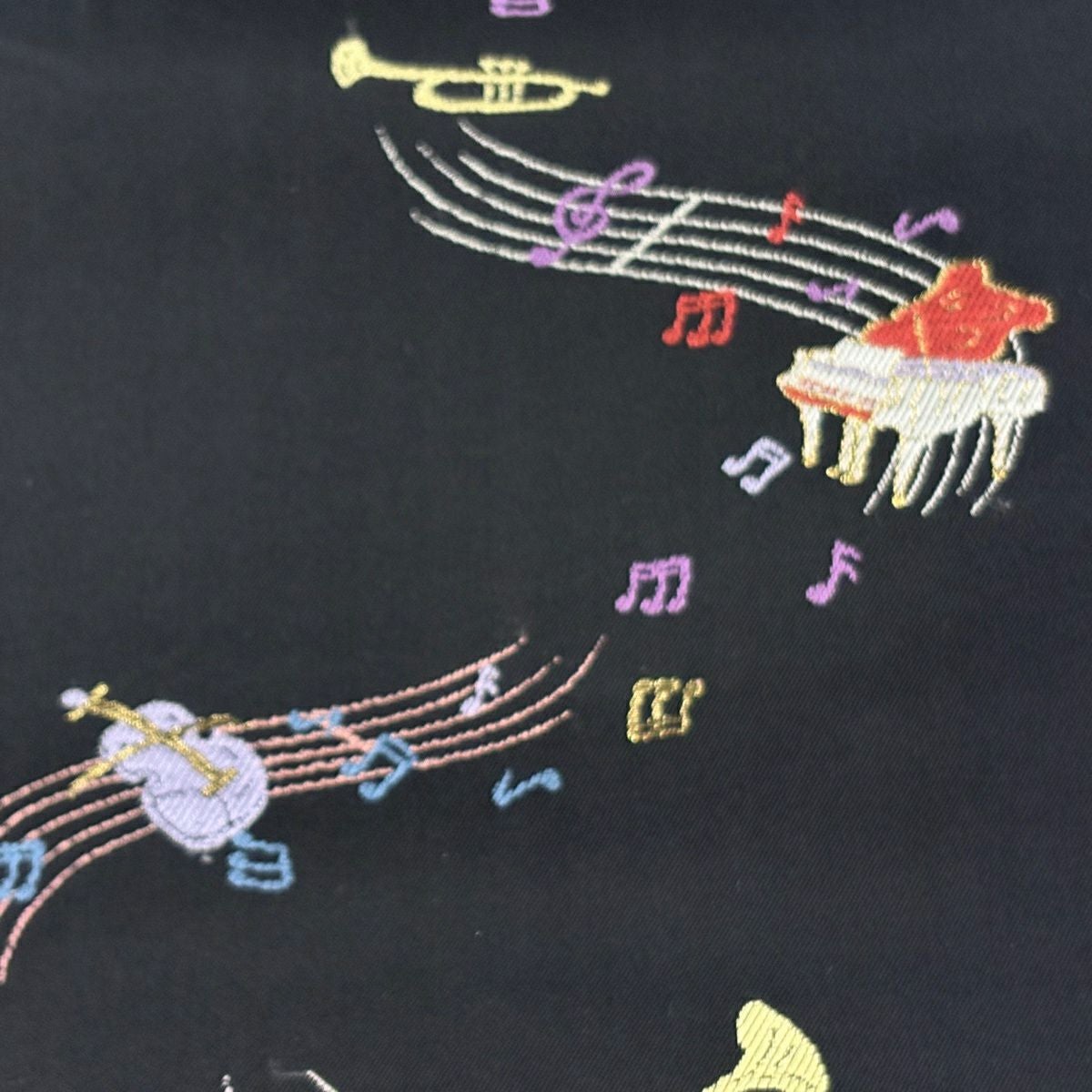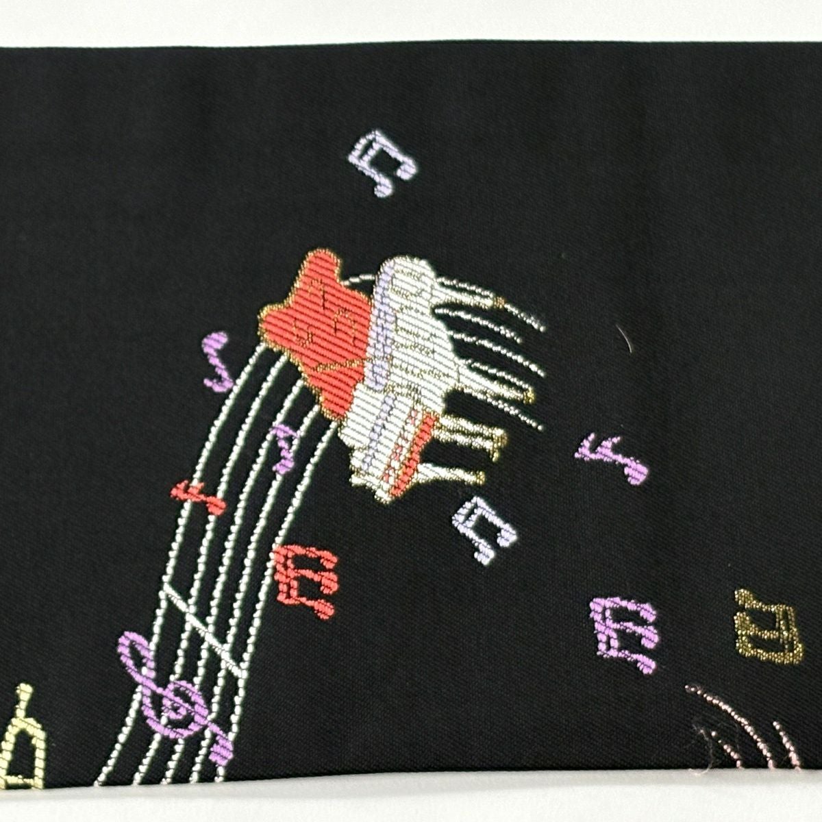 【美品】 名古屋帯 逸品 楽器 音符 箔 黒 正絹