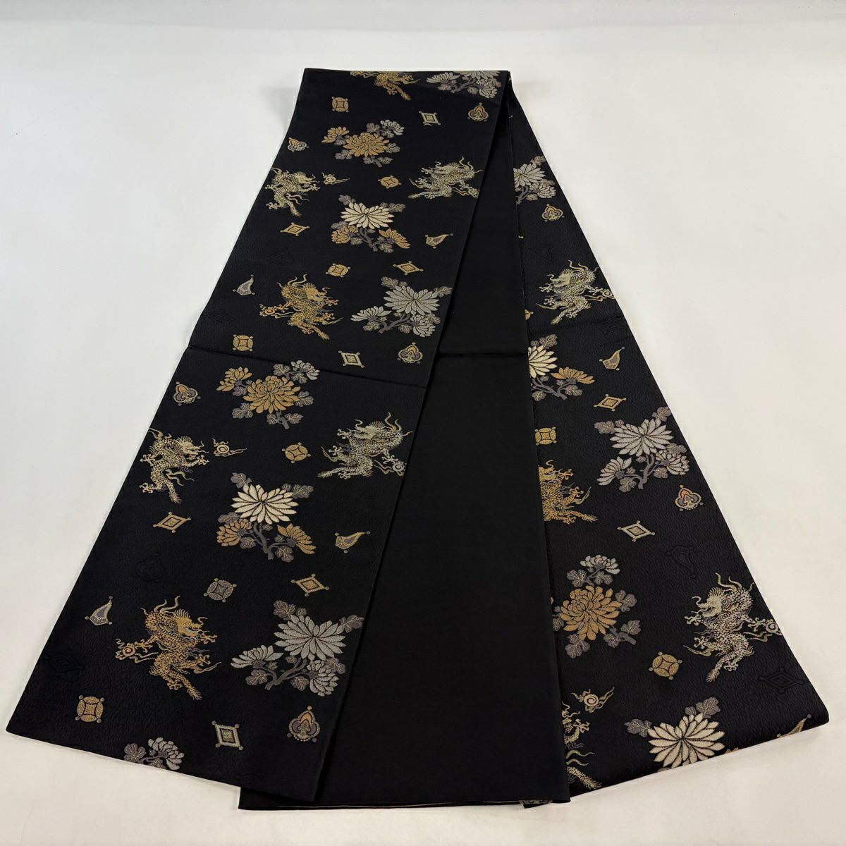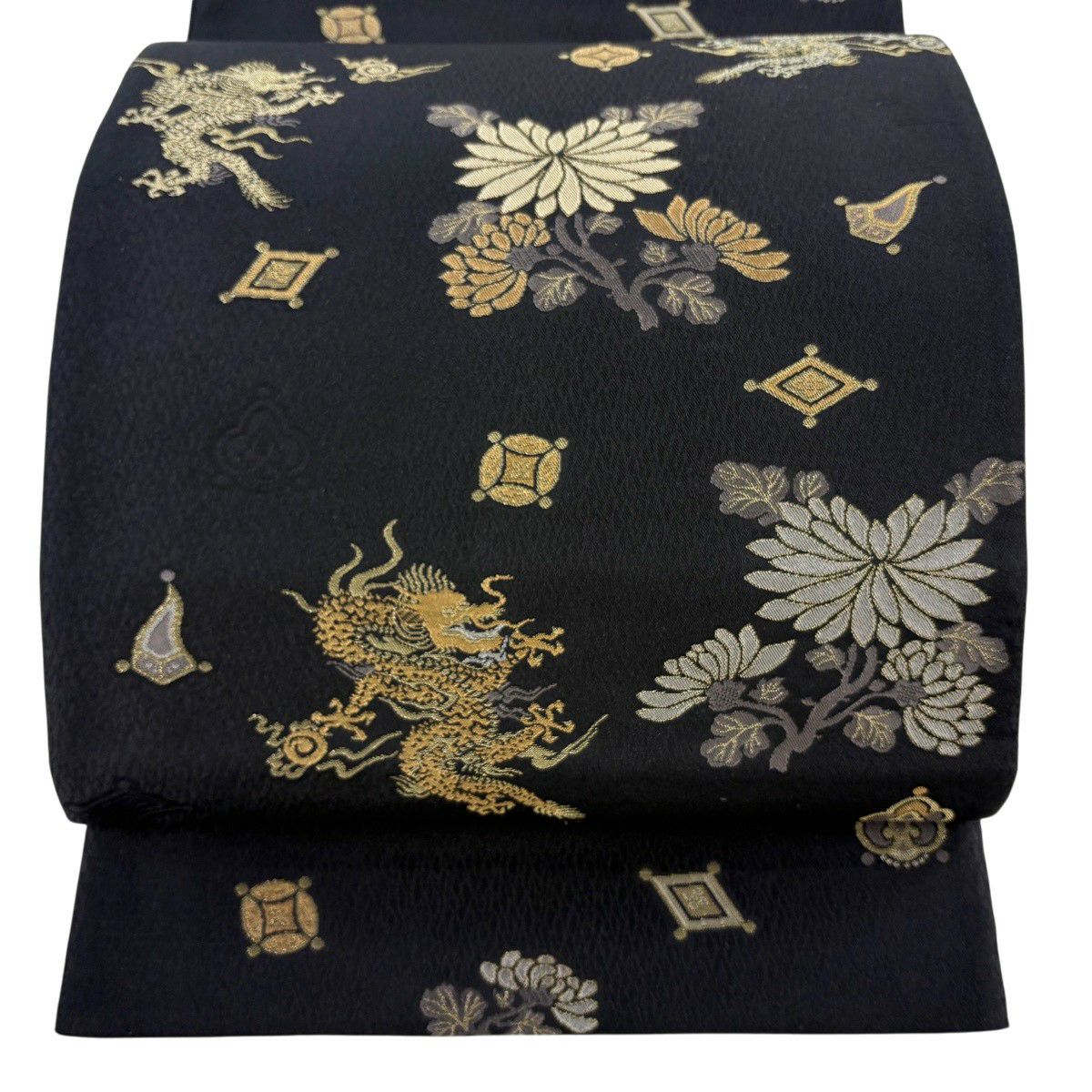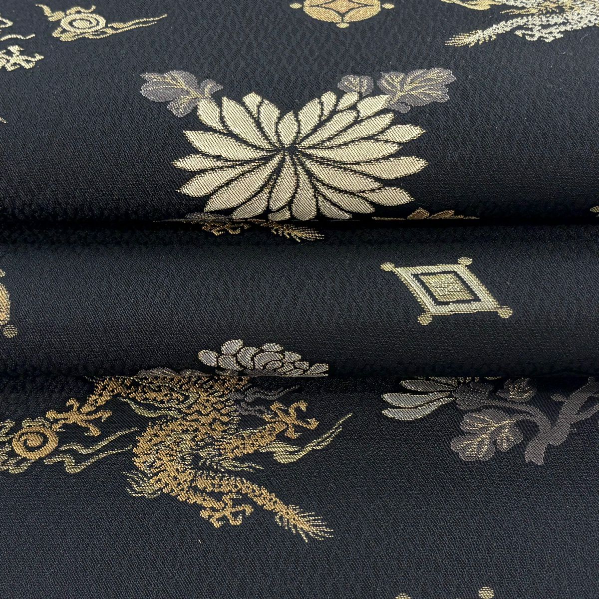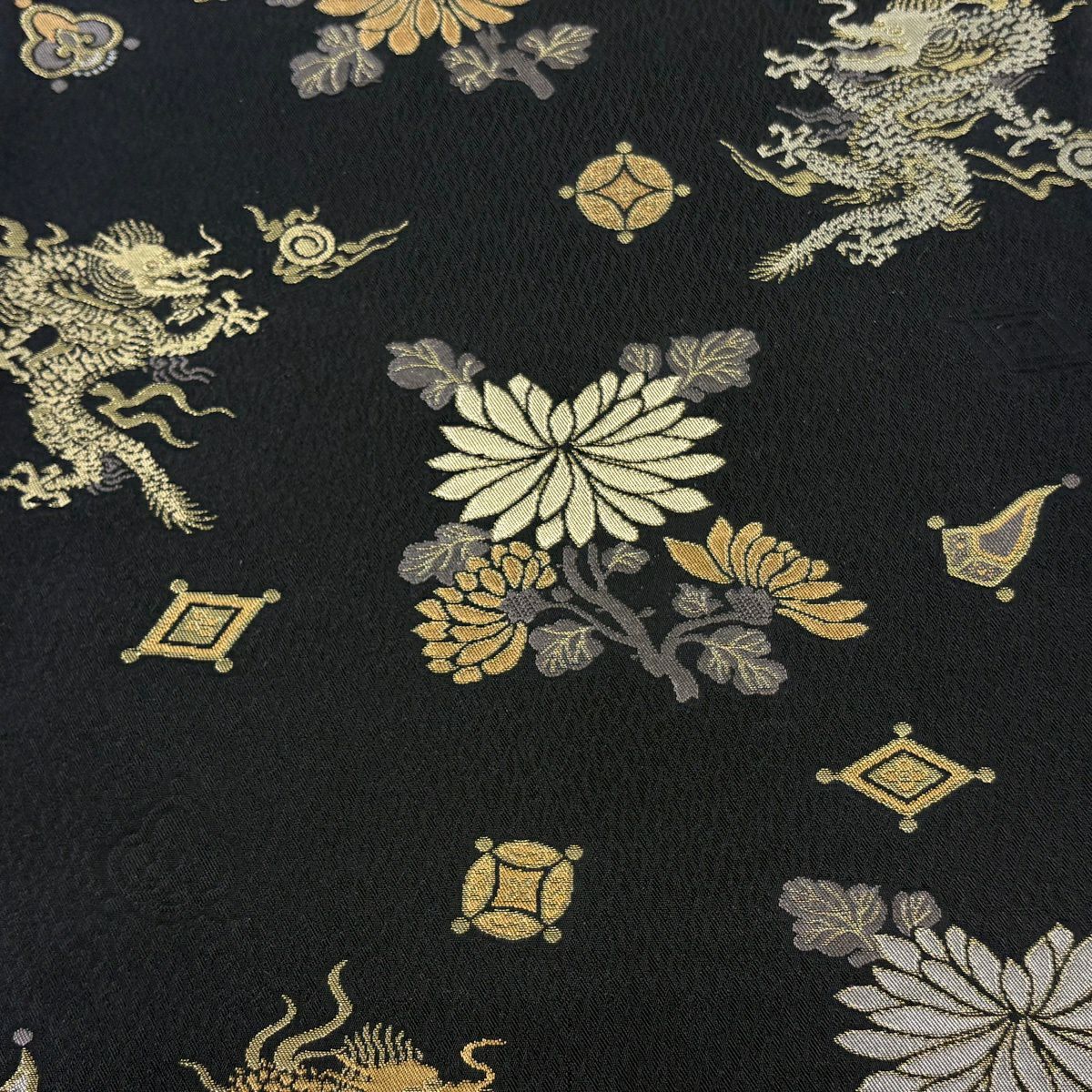 袋帯 逸品 唐獅子 箔 金糸 墨色 お太鼓柄 正絹